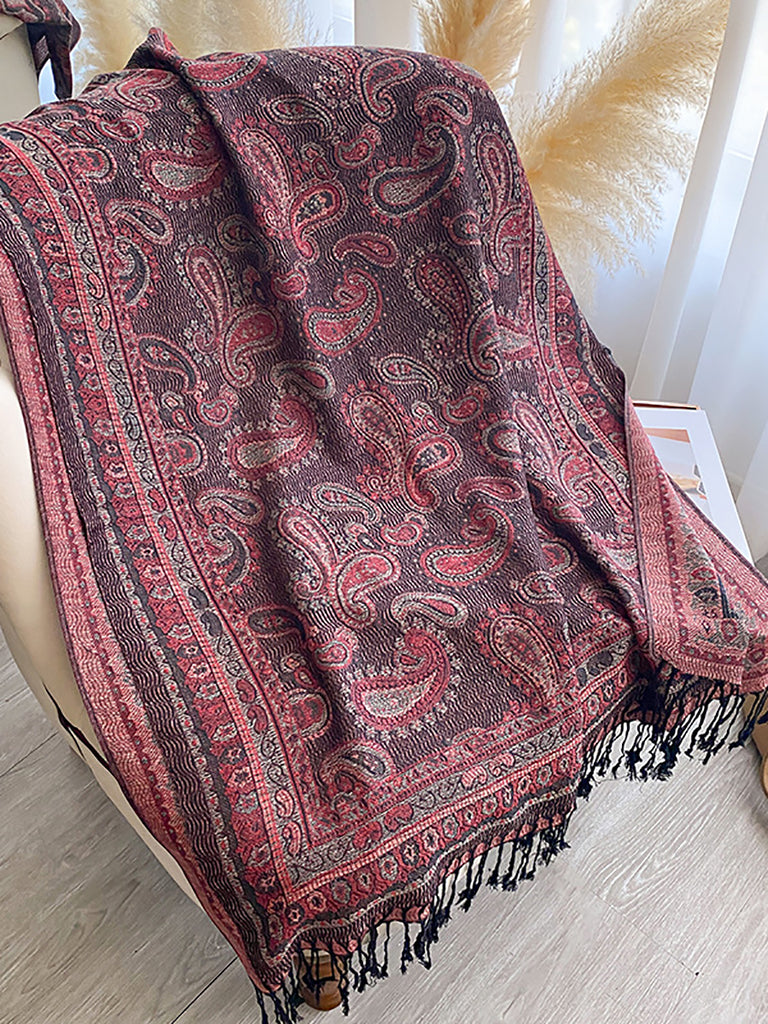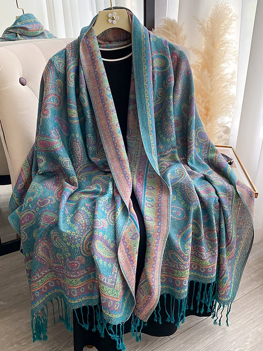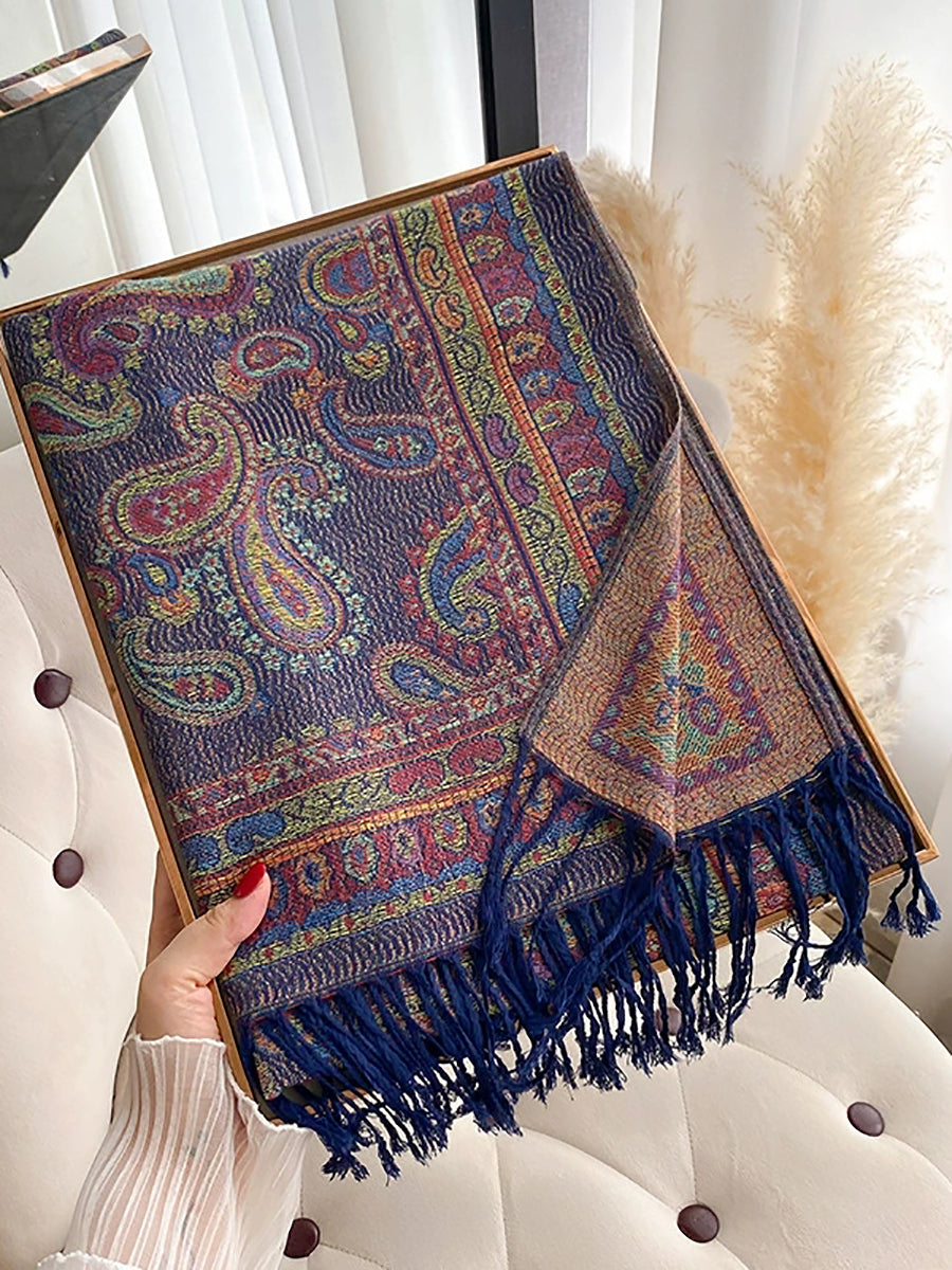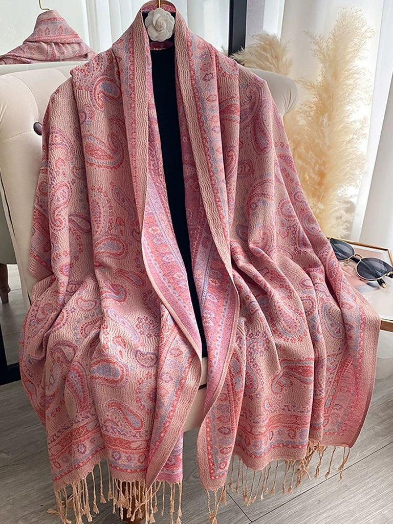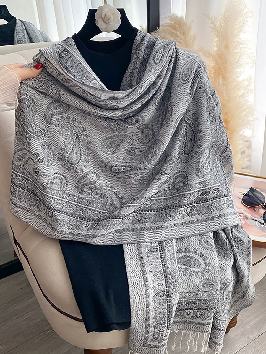 Women Winter Flower Jacquard Tassel Shawl Scarf