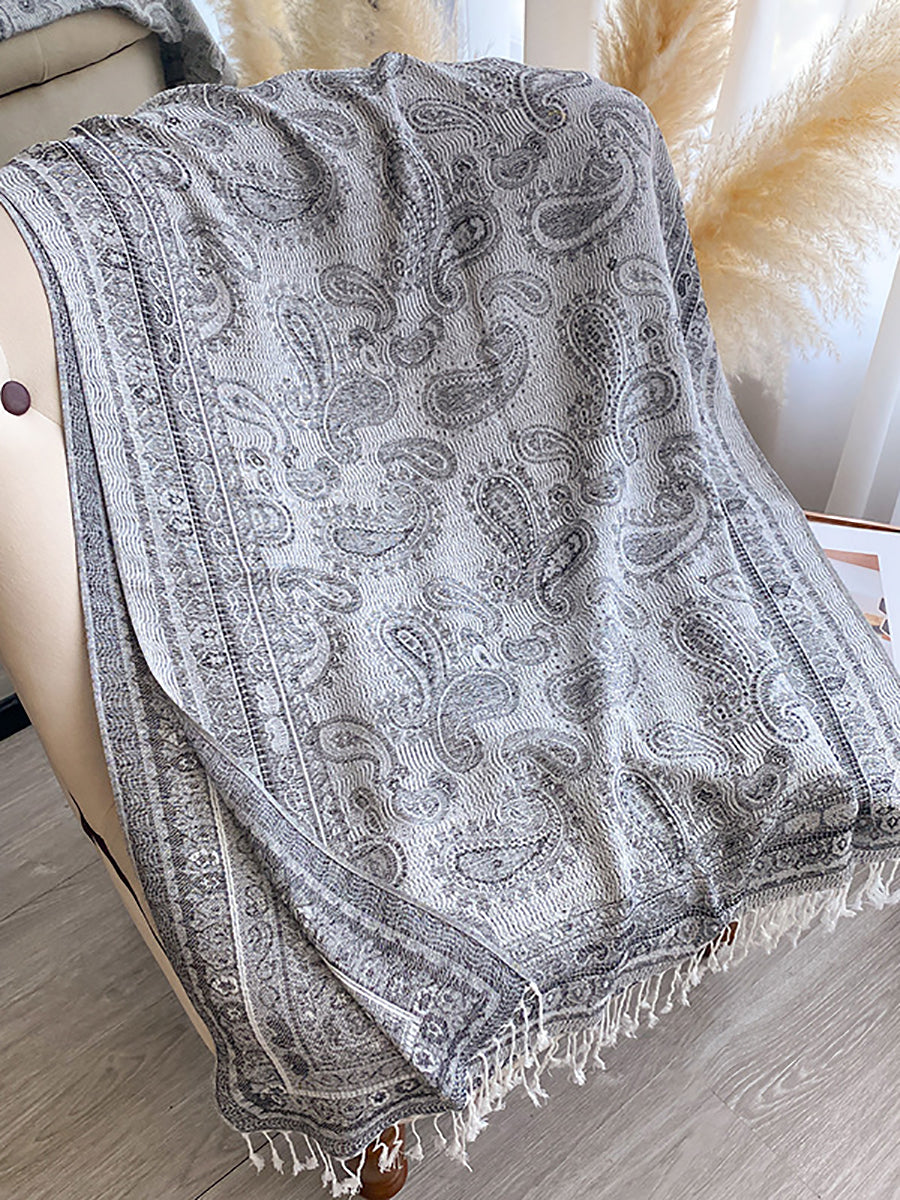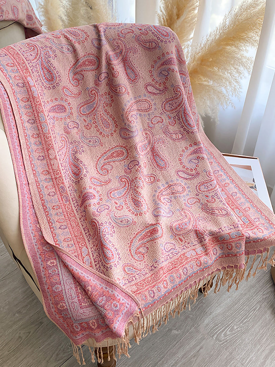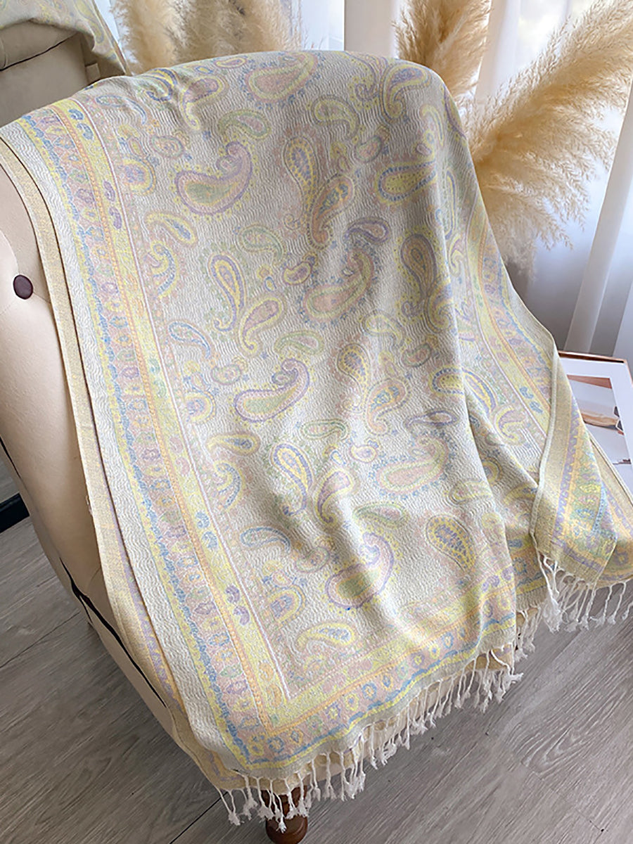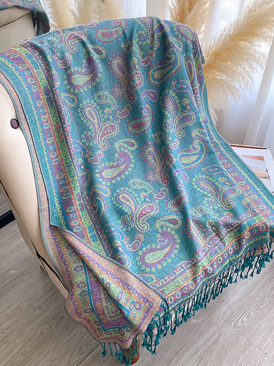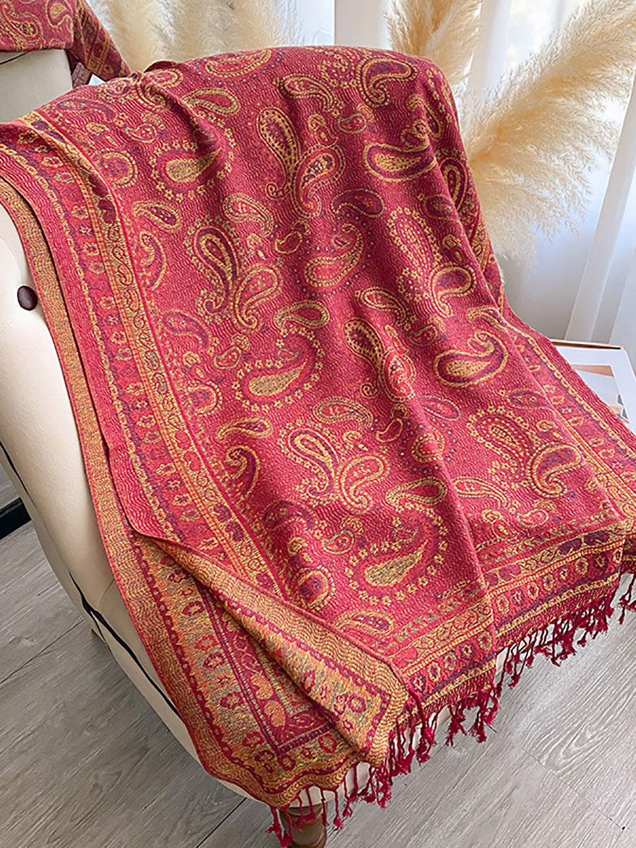 Women Winter Flower Jacquard Tassel Shawl Scarf
