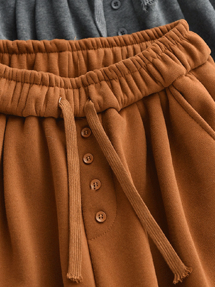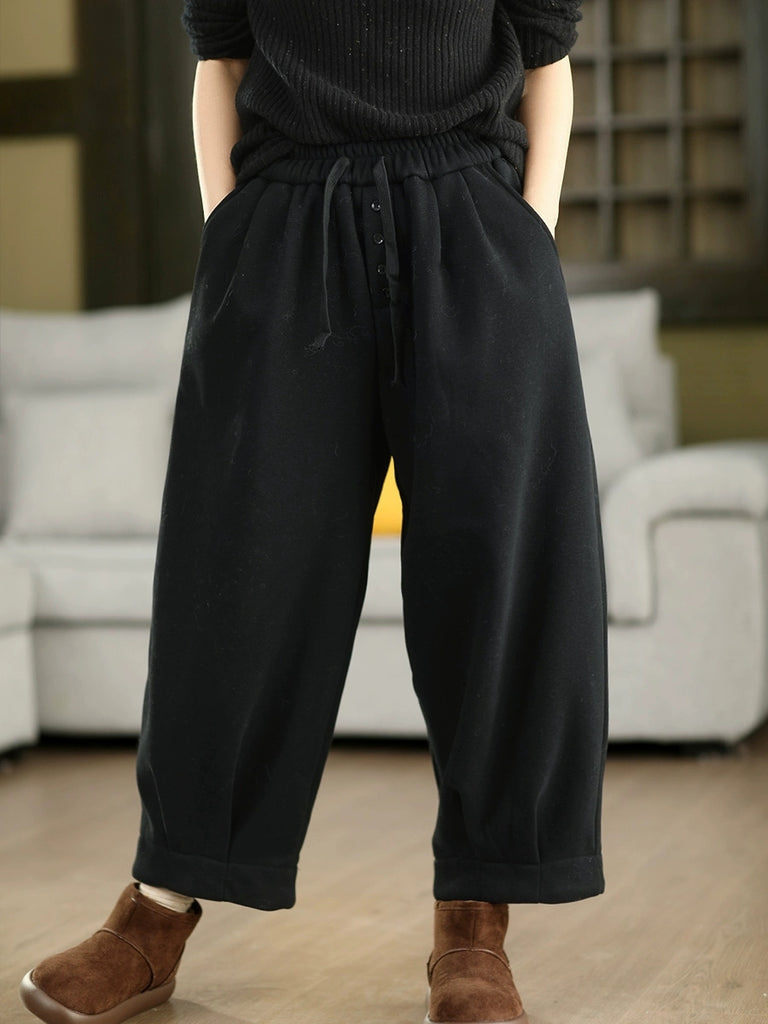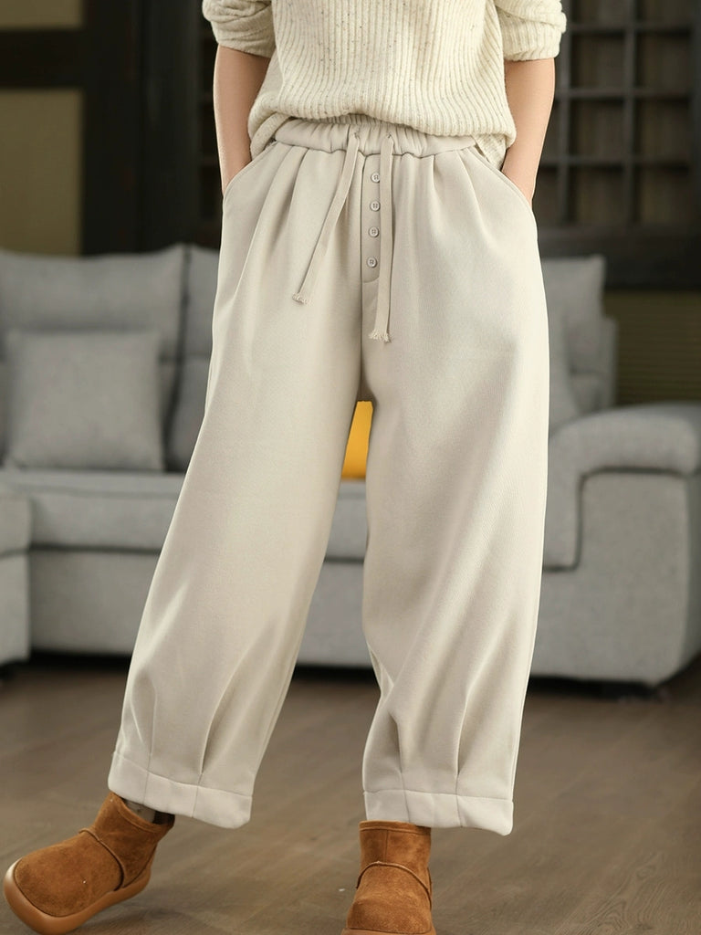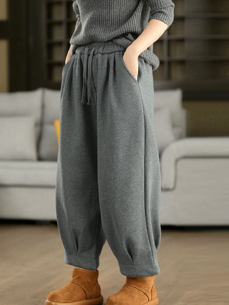Women Winter Retro Pure Color Fleece-lined Harem Pants