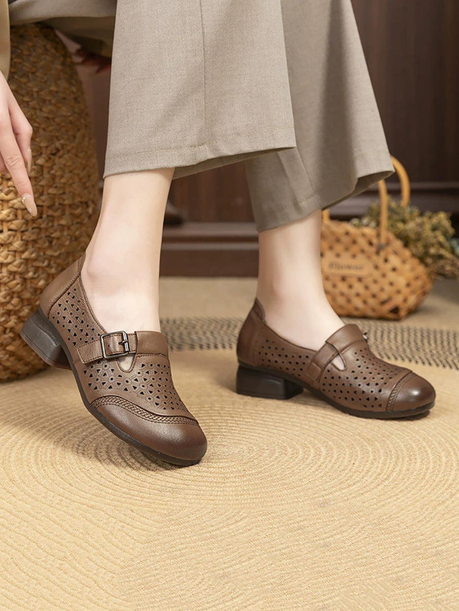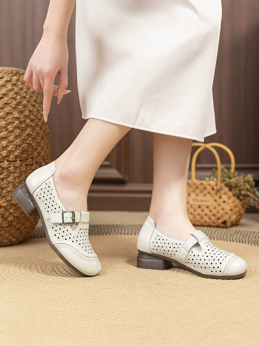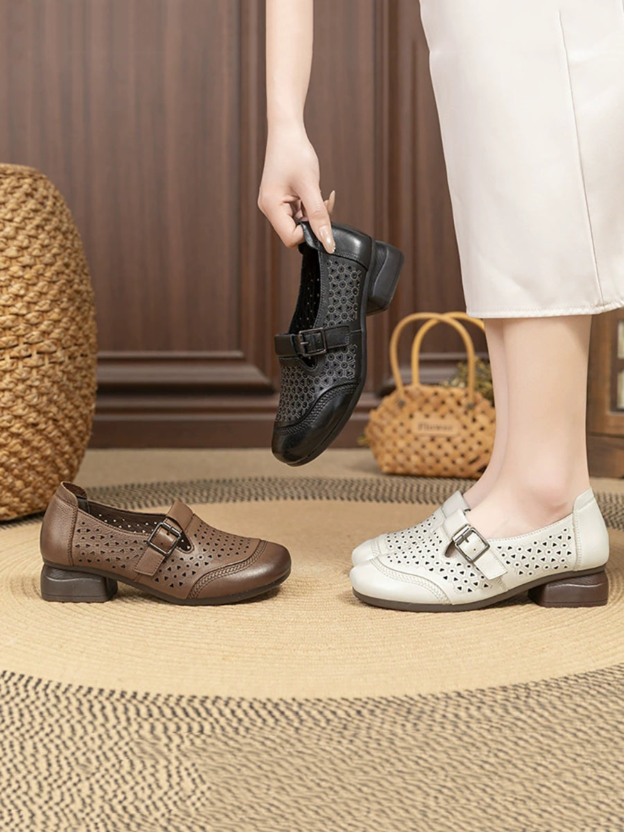 Women Summer Genuine Leather Holw Low Heel Shoes