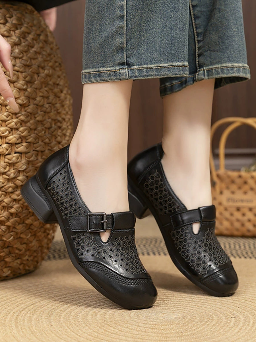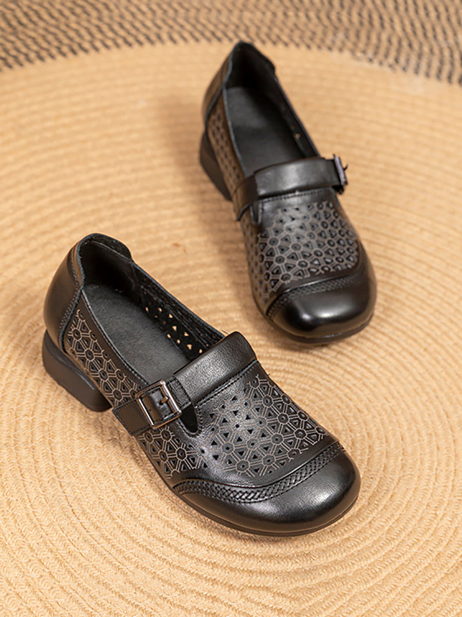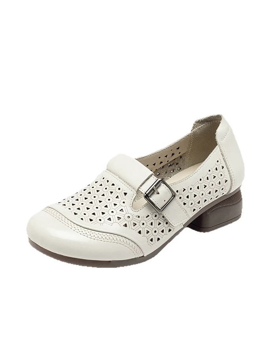 Women Summer Genuine Leather Holw Low Heel Shoes