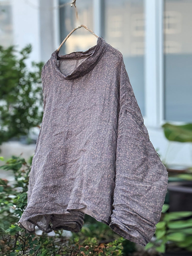 This blouse features a stylish turtleneck collar, full sleeves with raglan style and a retro-inspired autumn flower pattern. Perfect for wearing in the spring and fall seasons. Made of high-quality Ramie material.