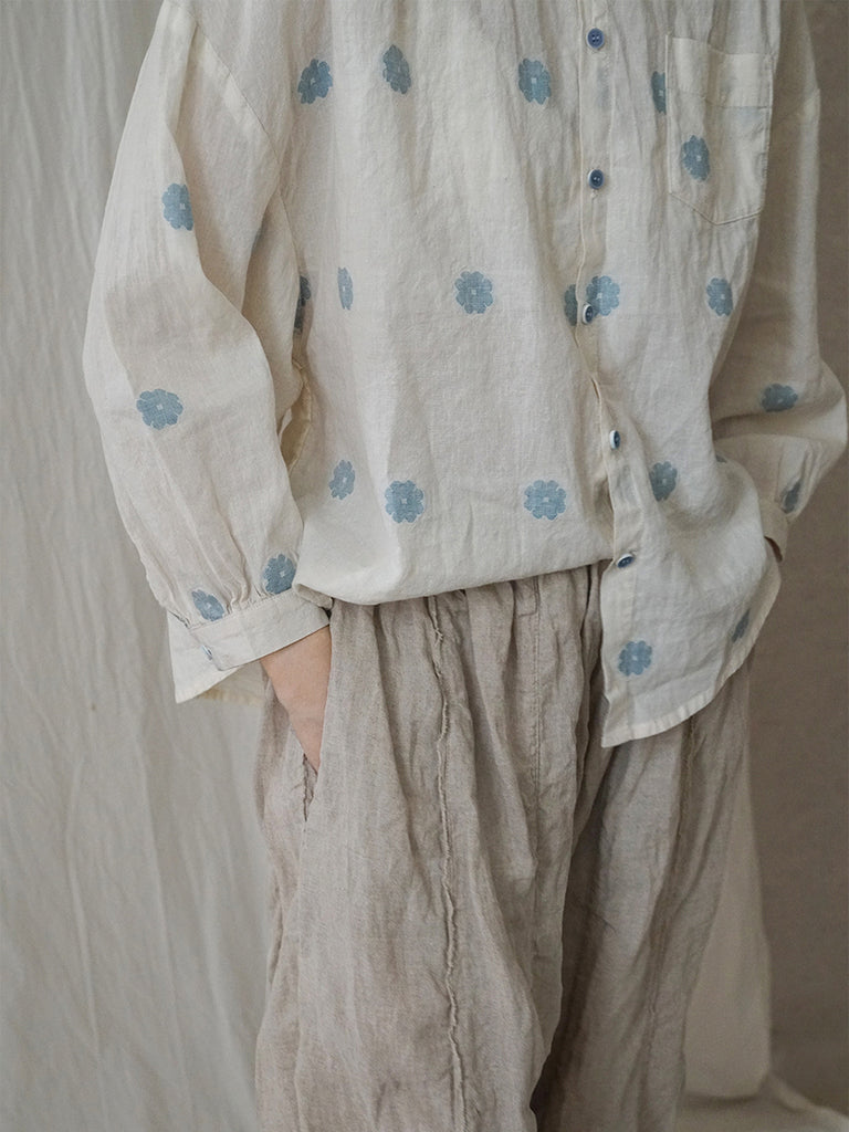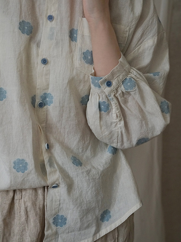 Women Artsy Spring Flower Cotton Lacework Neck Shirt