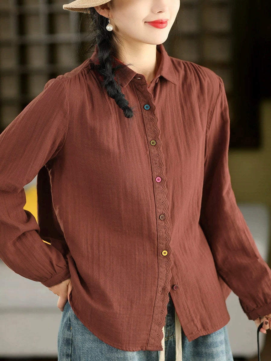Women Spring Artsy Spliced 100%Cotton Shirt