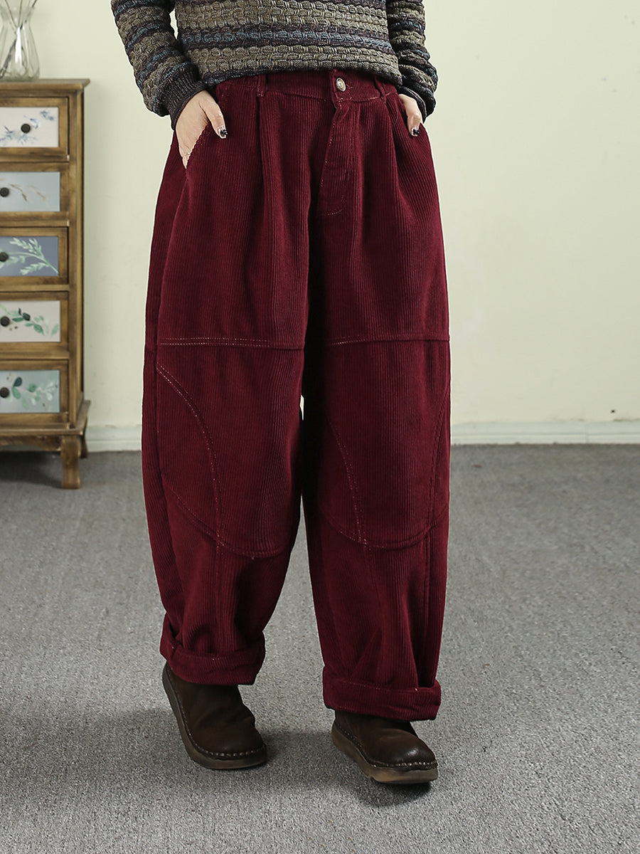 Women Winter Retro Pure Color Fleece-lined Harem Pants