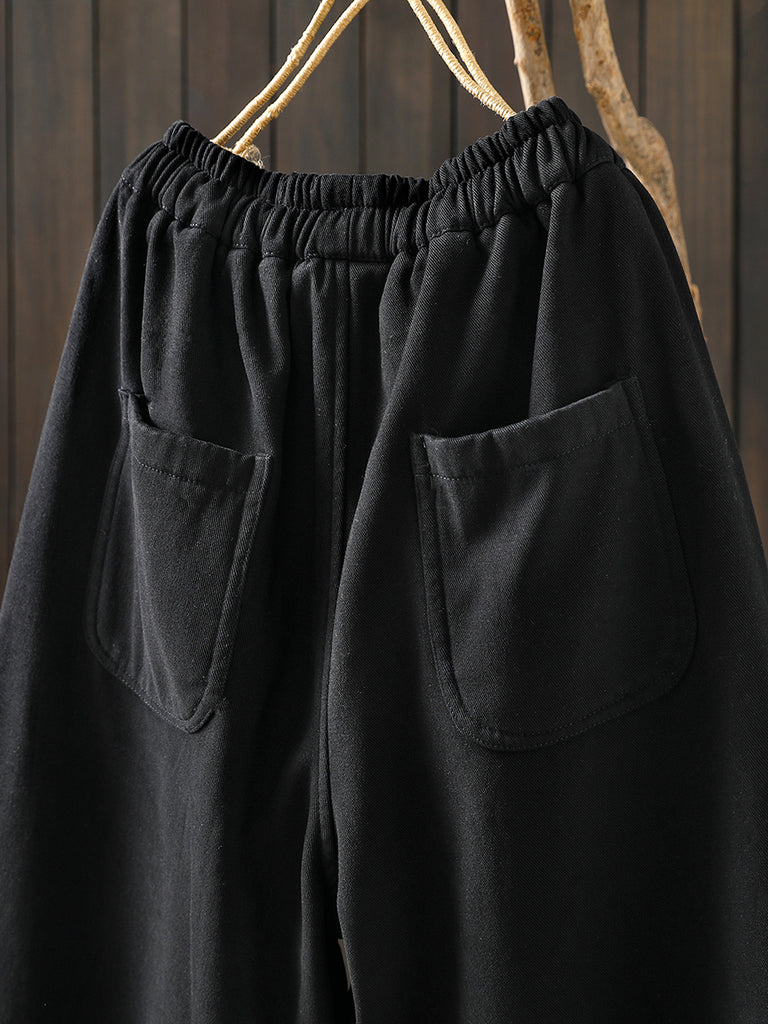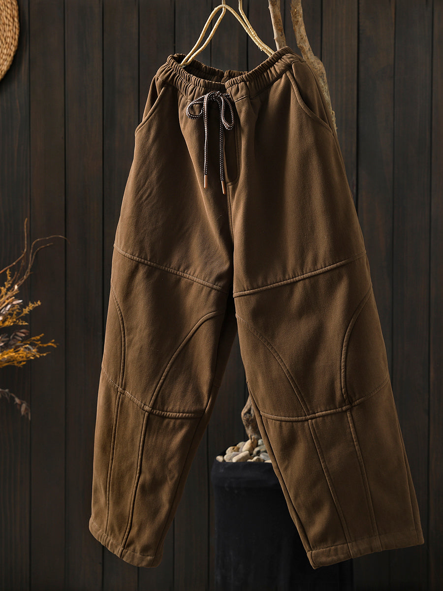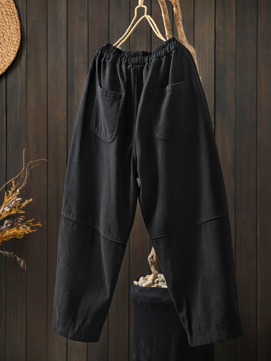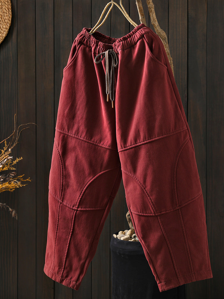 Women Winter Retro Pure Color Fleece-lined Harem Pants