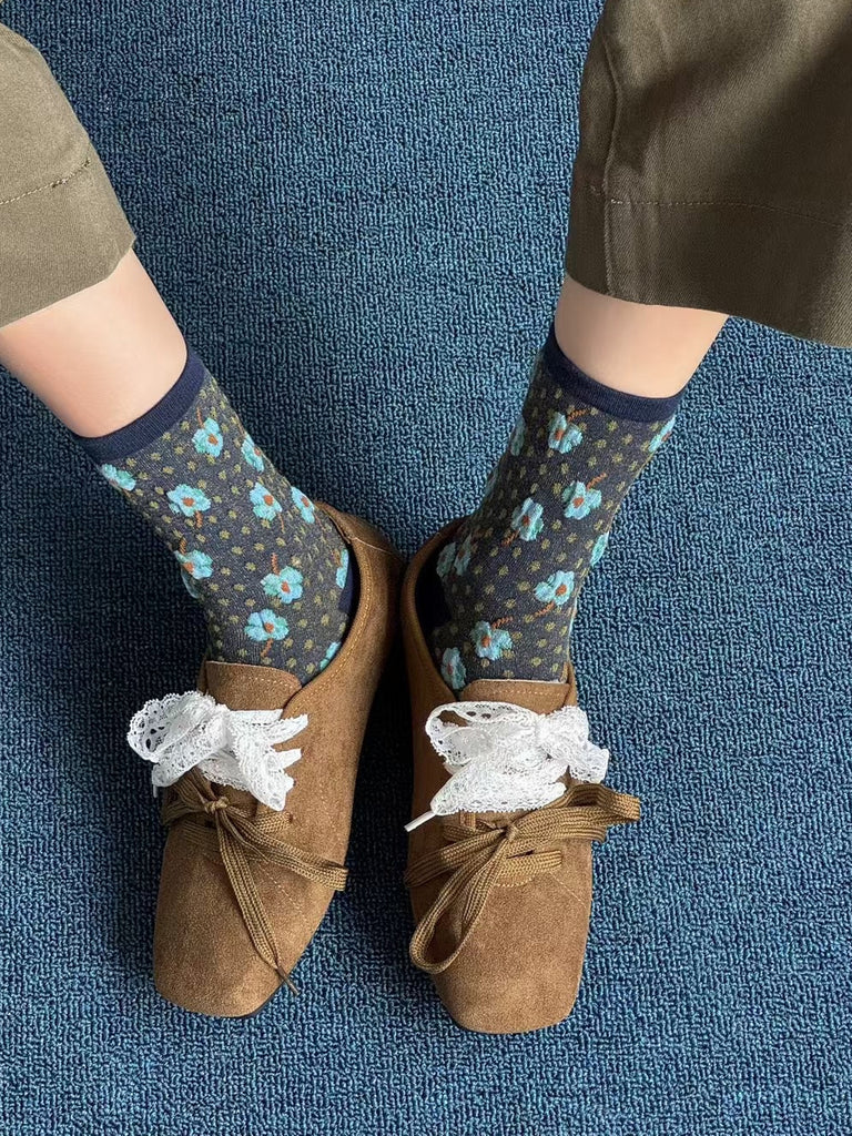 5 Pairs Women Autumn Artsy Floral Cotton Socks