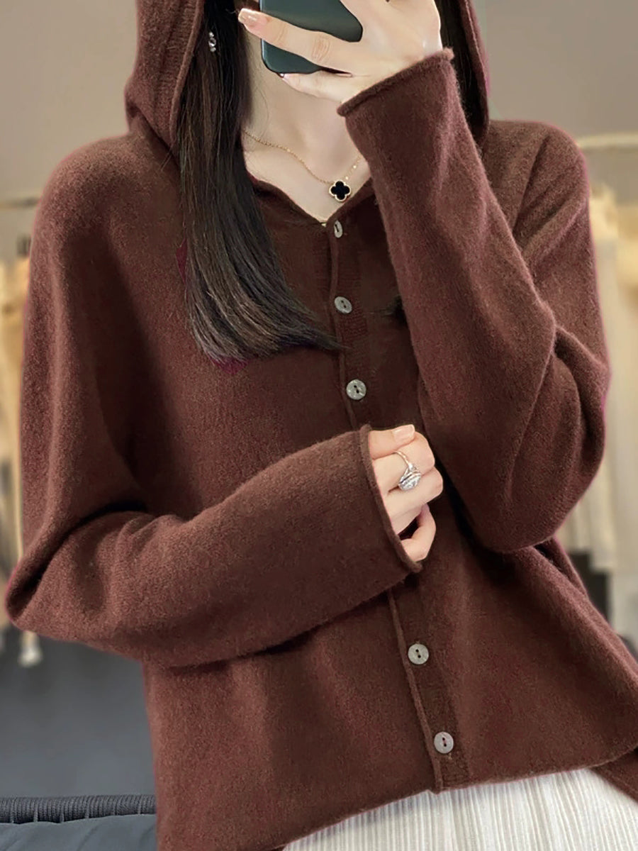 Women Autumn Casual Knitted Wool Hooded Sweater Coat