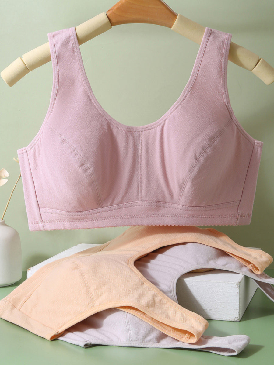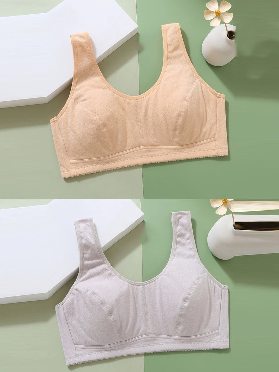 2 Pieces Women Artsy Pure Color One-piece Wireless Bra
