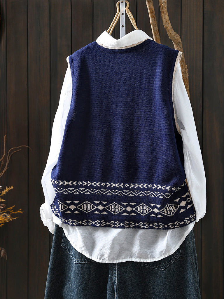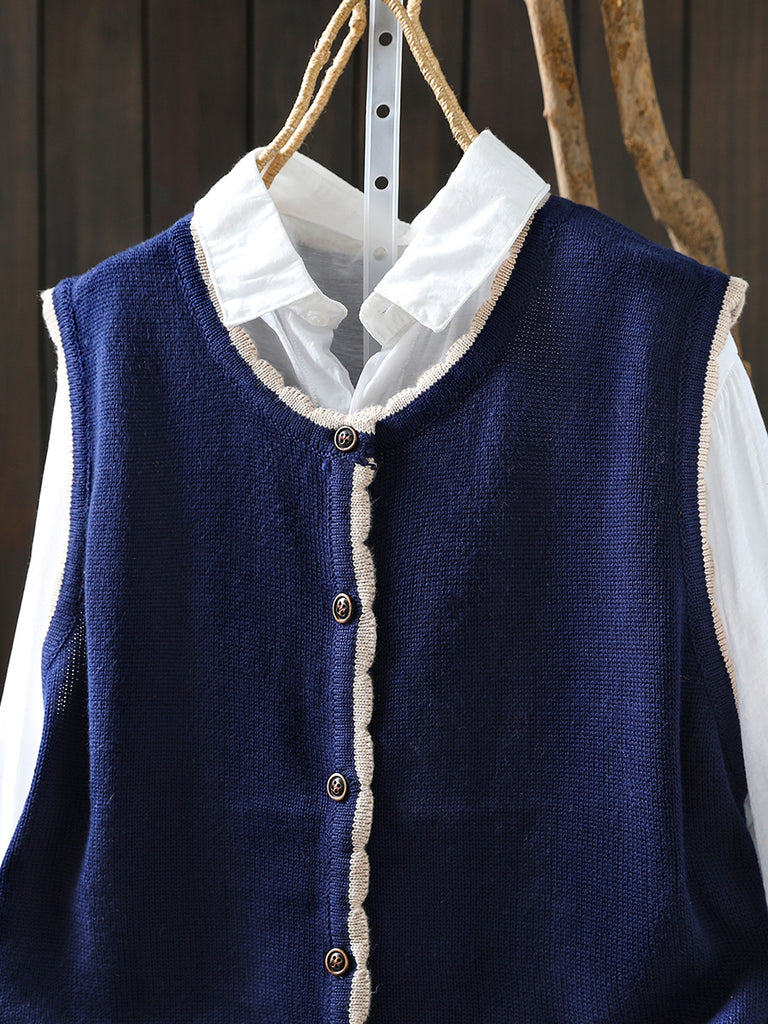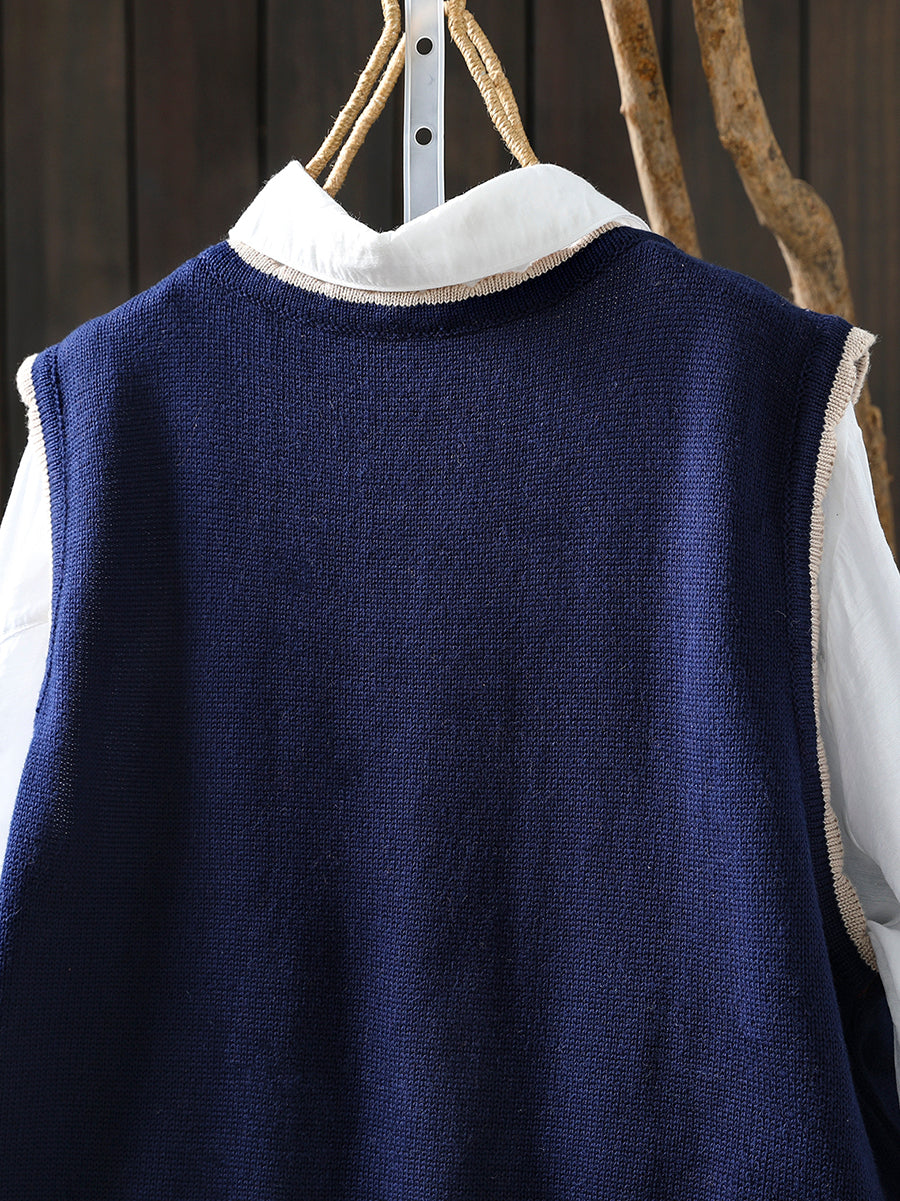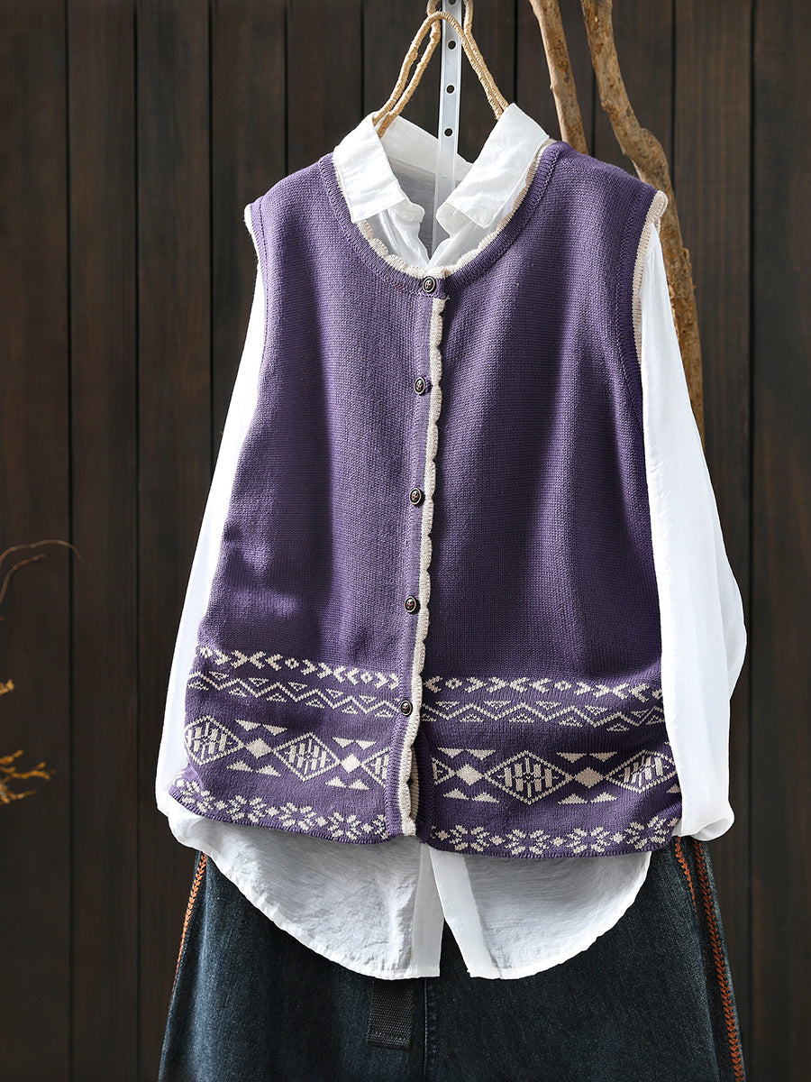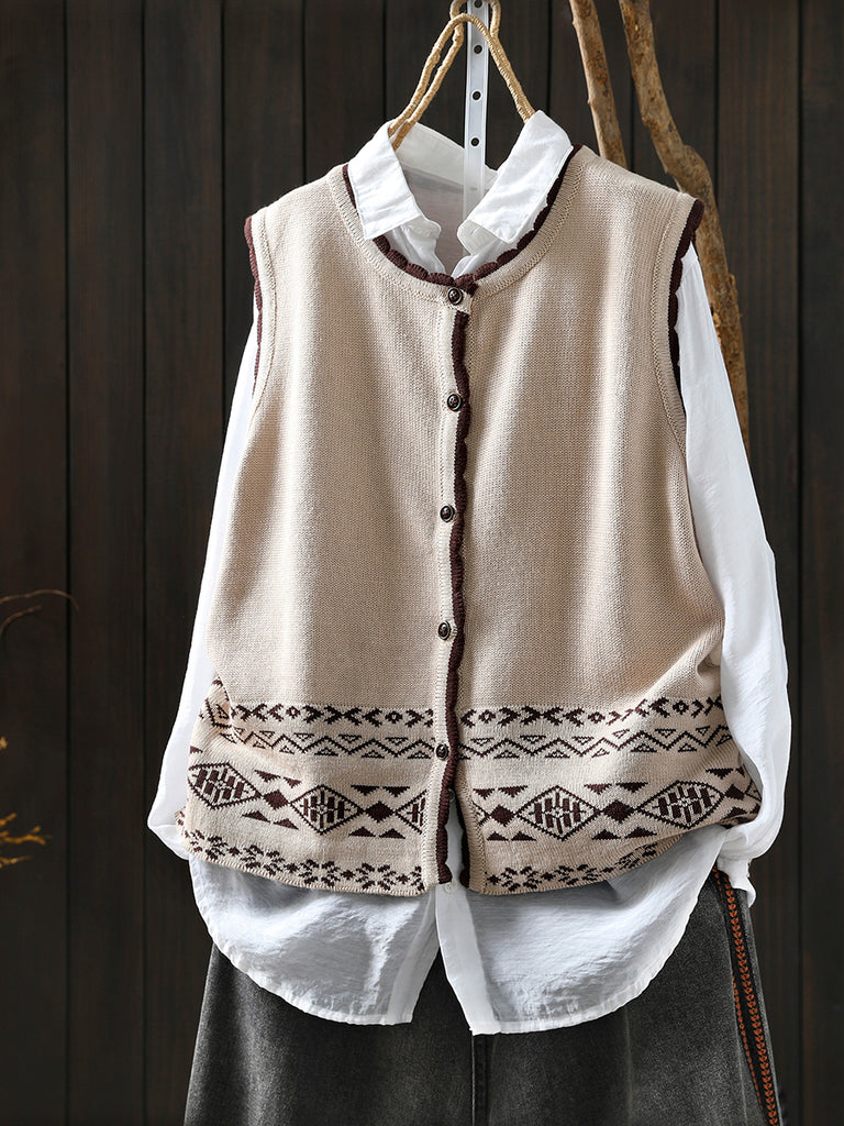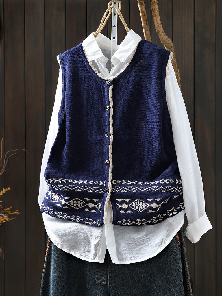 Women Autumn Artsy O-Neck Knitted Vest