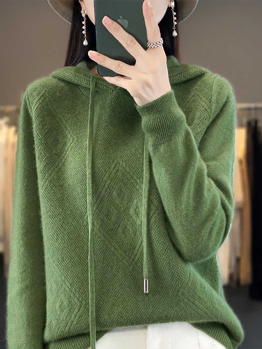 Women Winter Rhomboids Hooded Knitted Wool Sweater