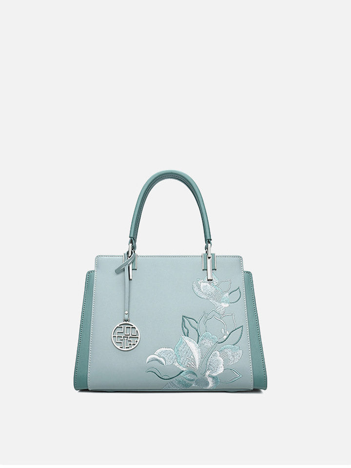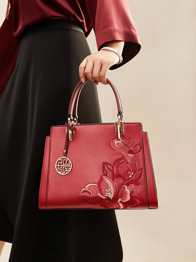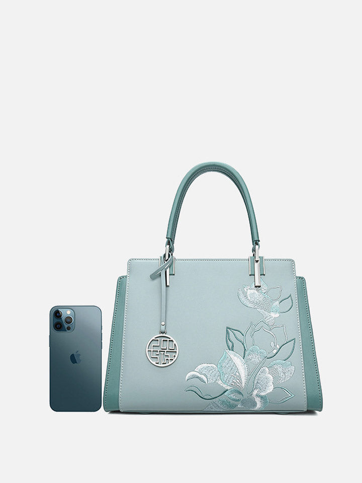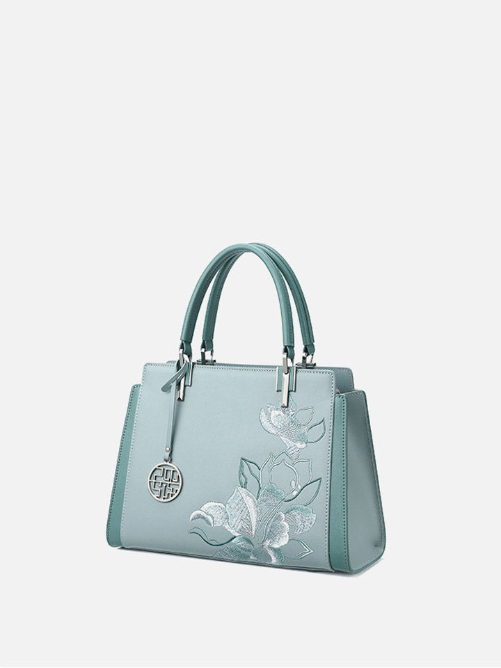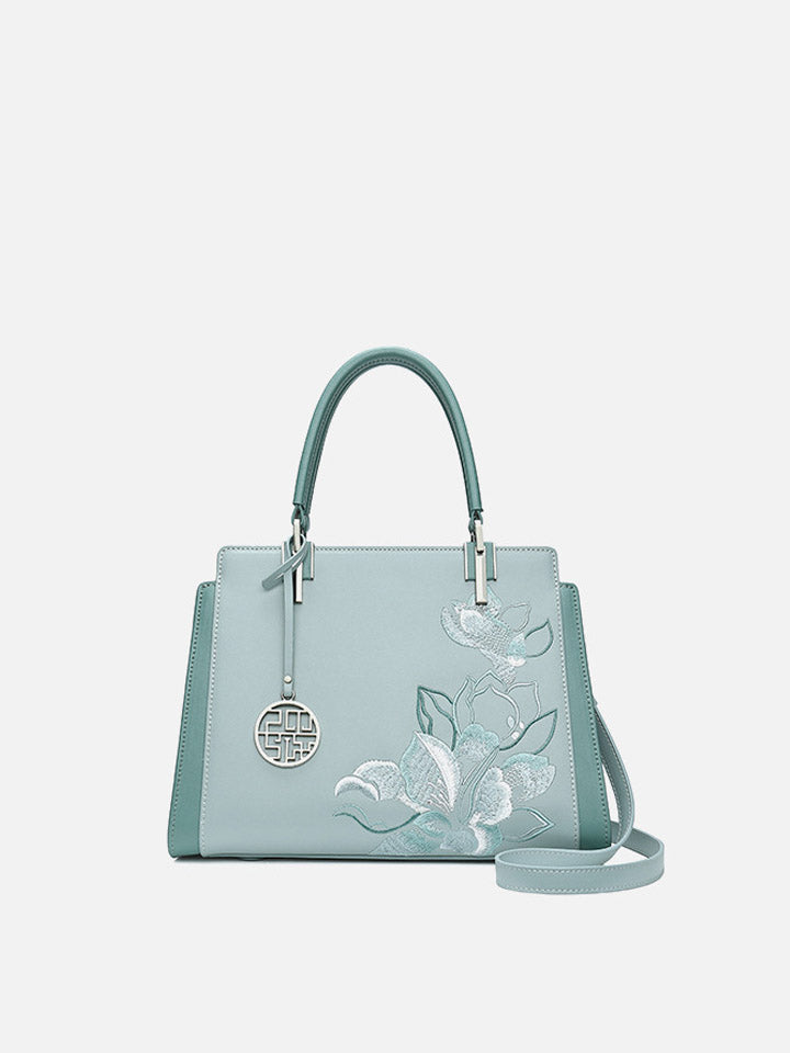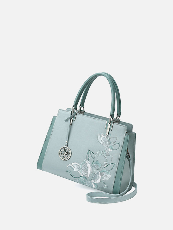 Women Ethnic Flower Embroidery Leather Crossbody Handbag