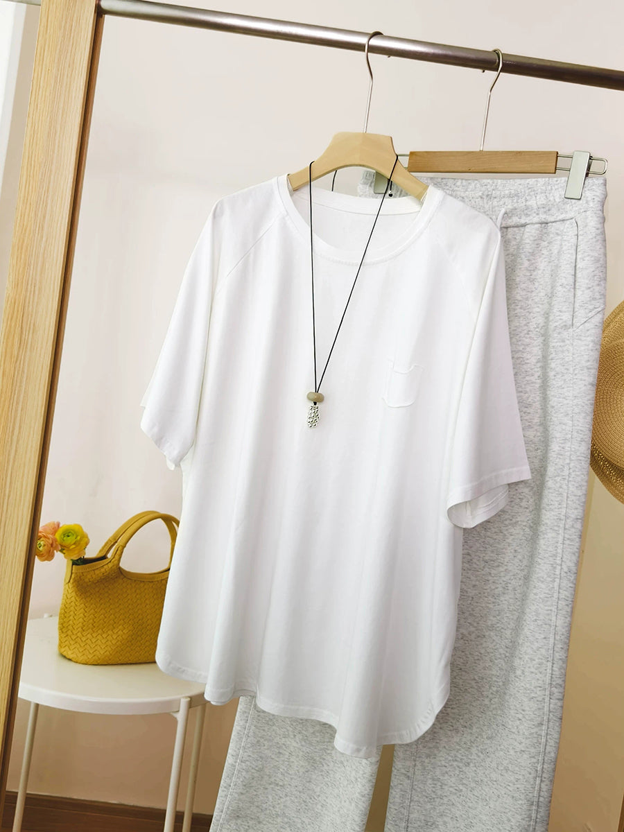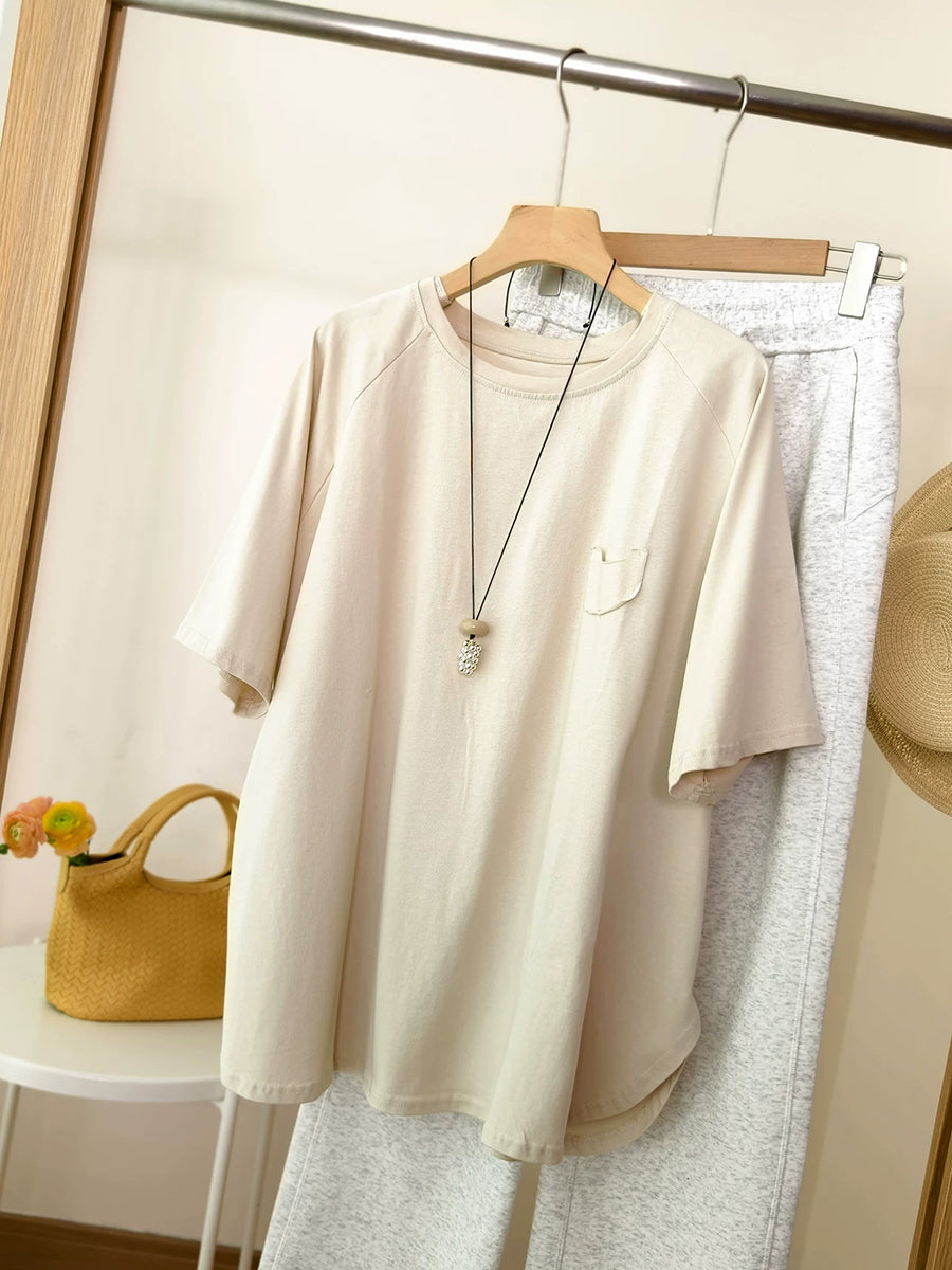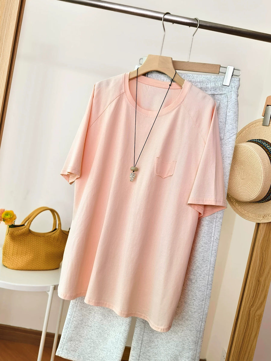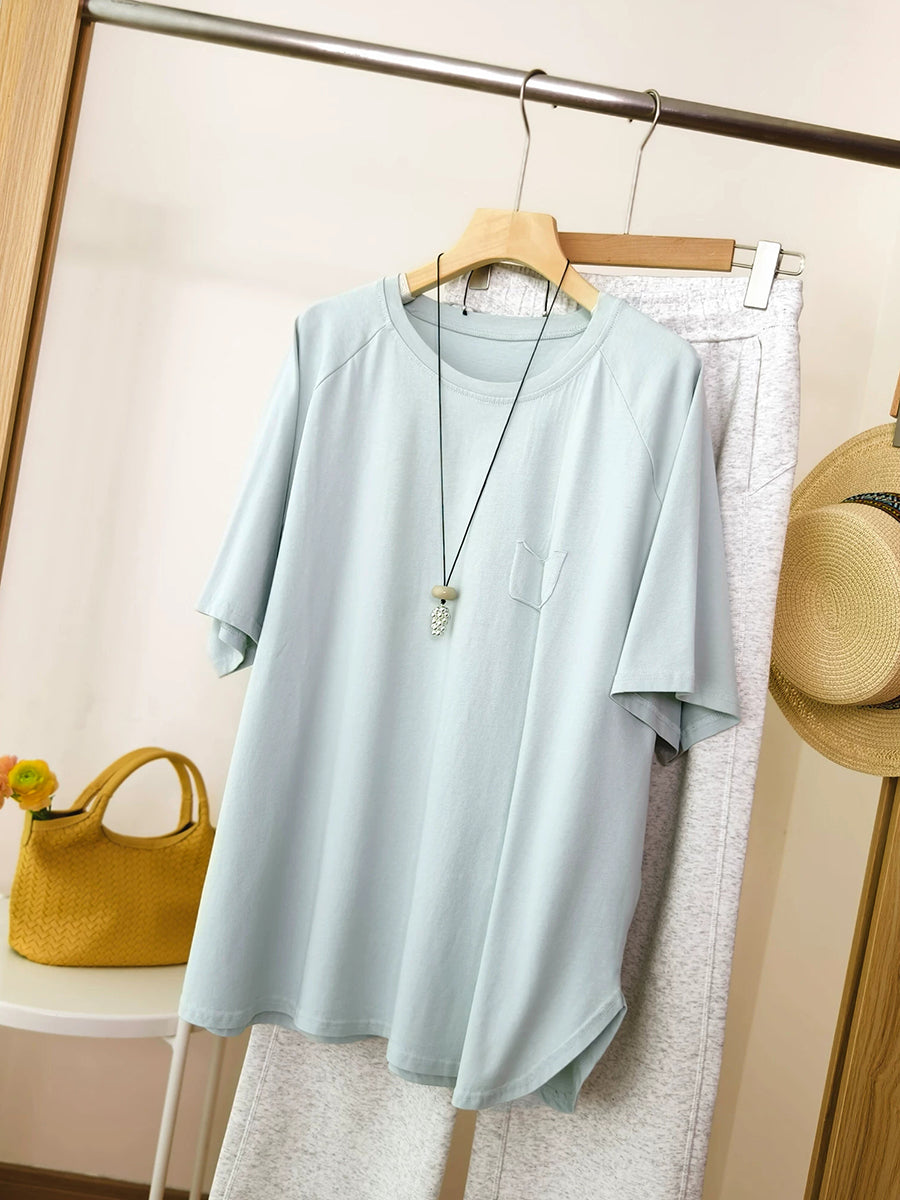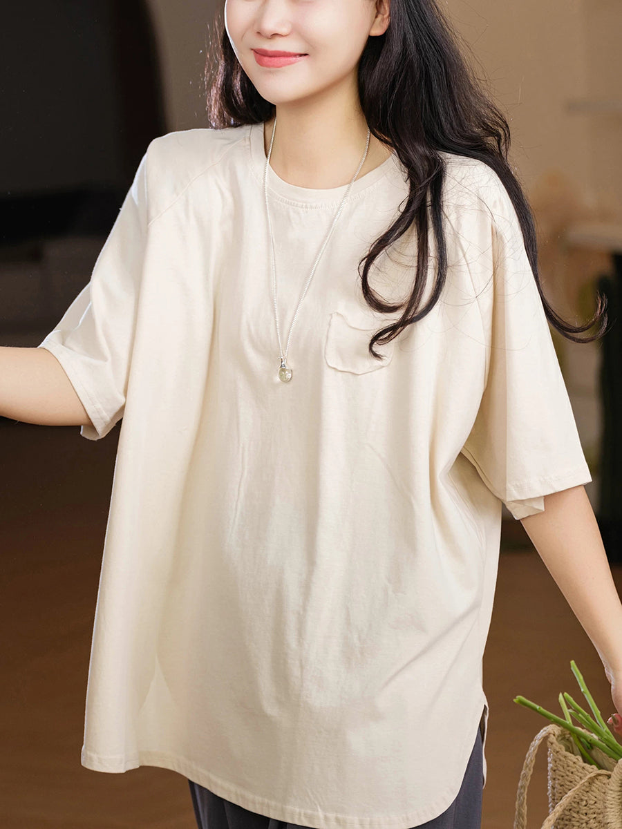 Women Summer Casual Pure Color 100%Cotton O-Neck T-Shirt