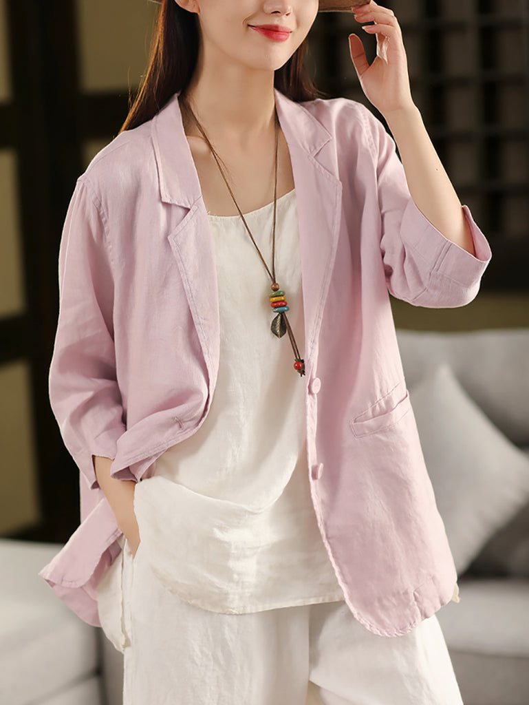 Plus Size Women Summer Artsy Pure Color 100%Linen Shirt Coat