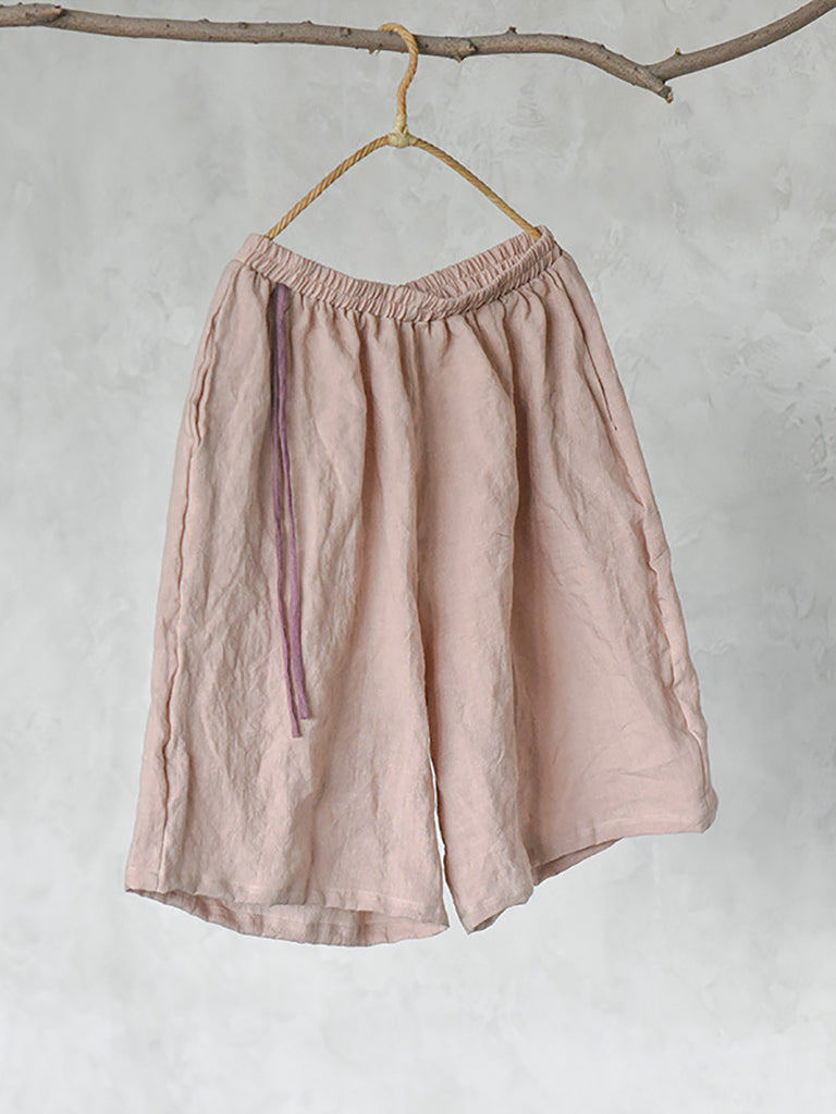 These Women's Summer Casual Solid Strap Linen Fifth Pants showcase a retro style with an elastic waist and wide-leg design. The solid pattern and fifth length make them perfect for the warm seasons of spring and summer.