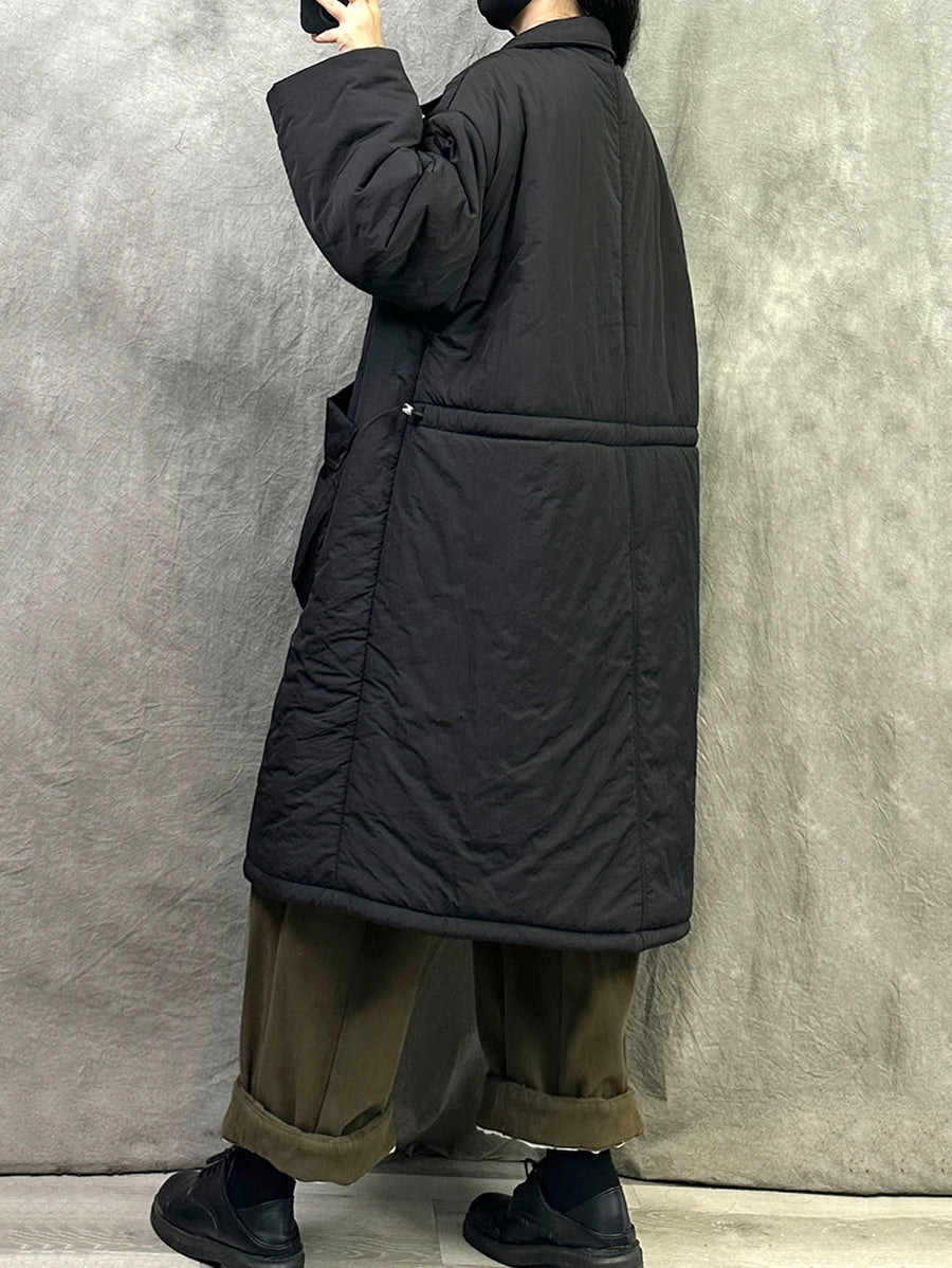 Women Winter Pure Color Padded Turn-down Collar Coat