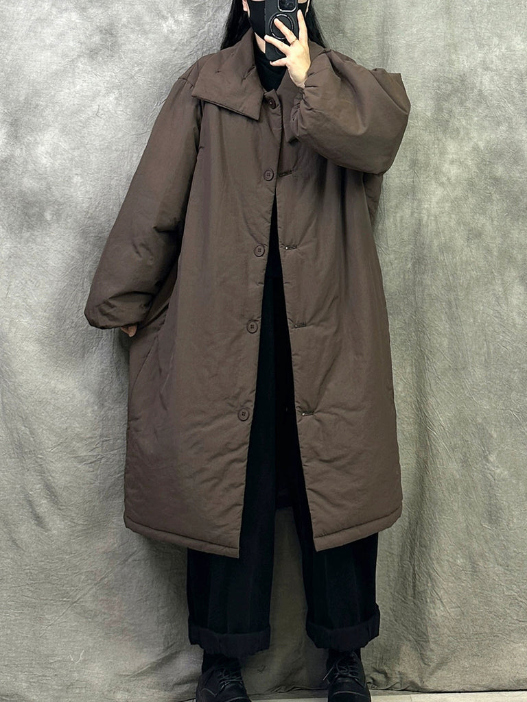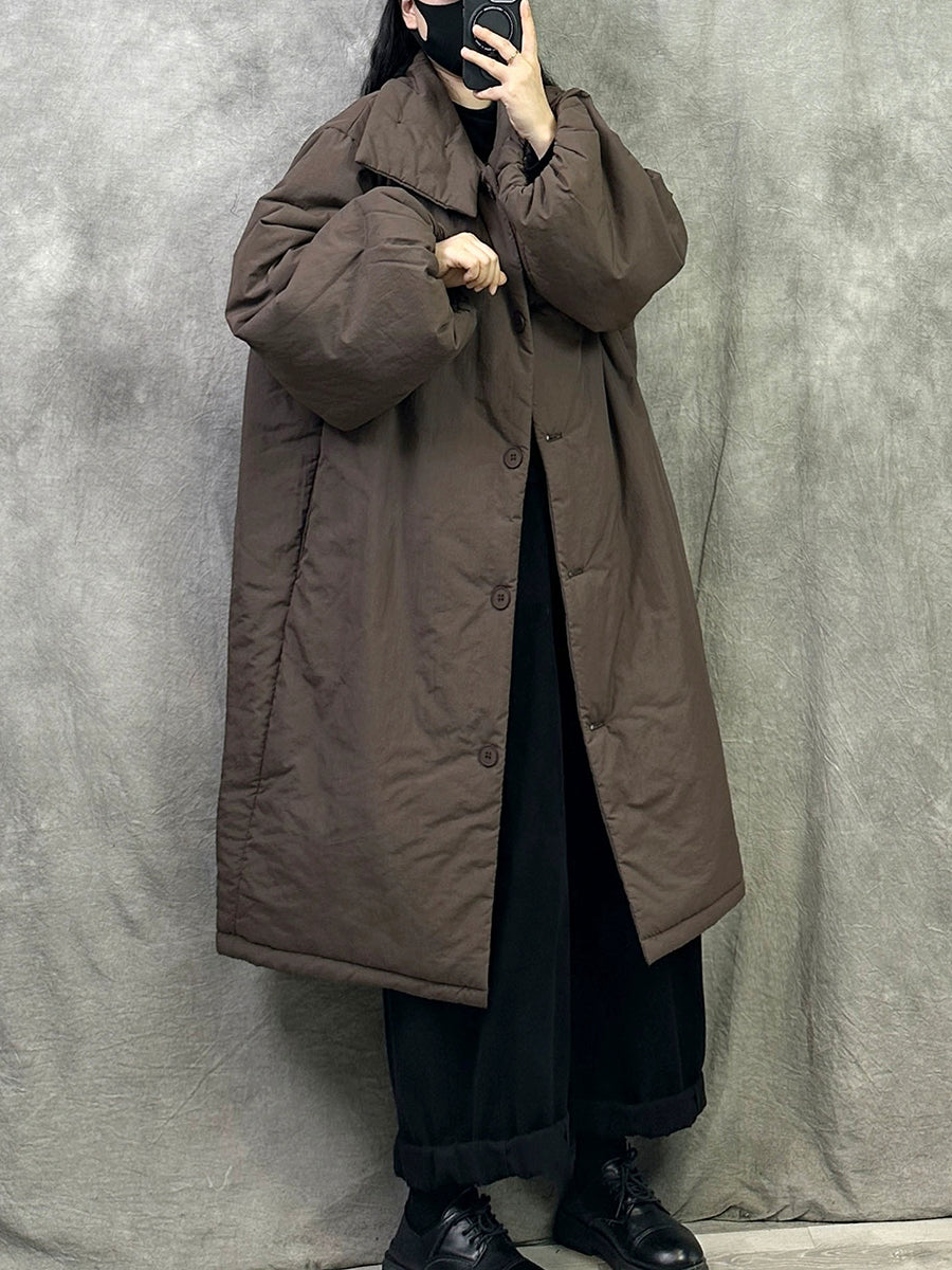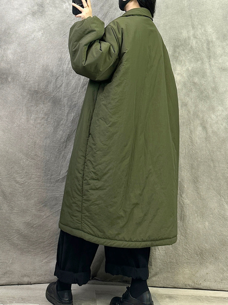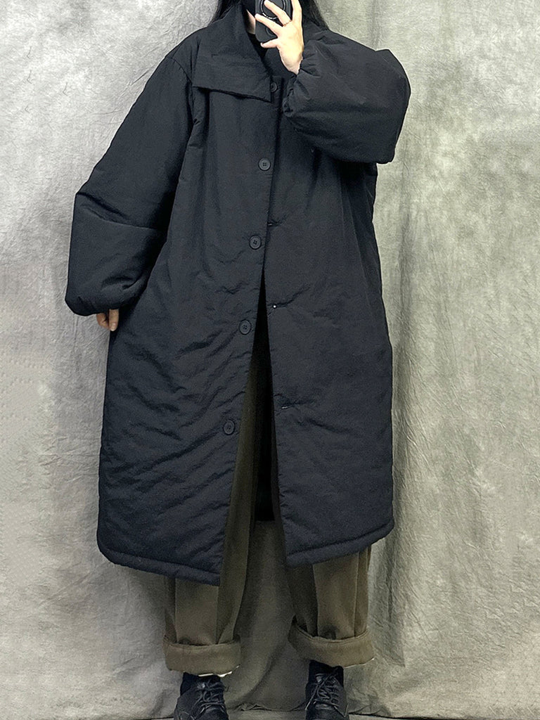 Women Winter Pure Color Turn-down Collar Padded Overcoat