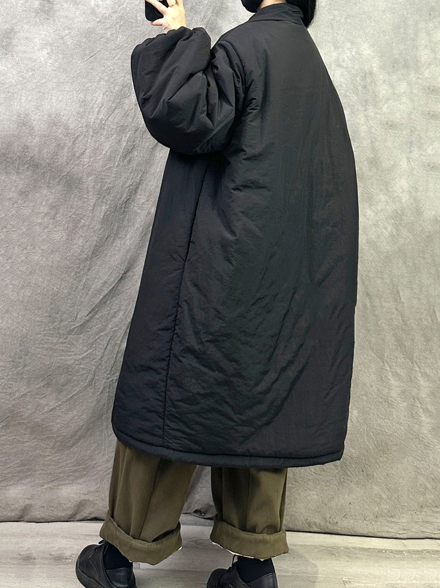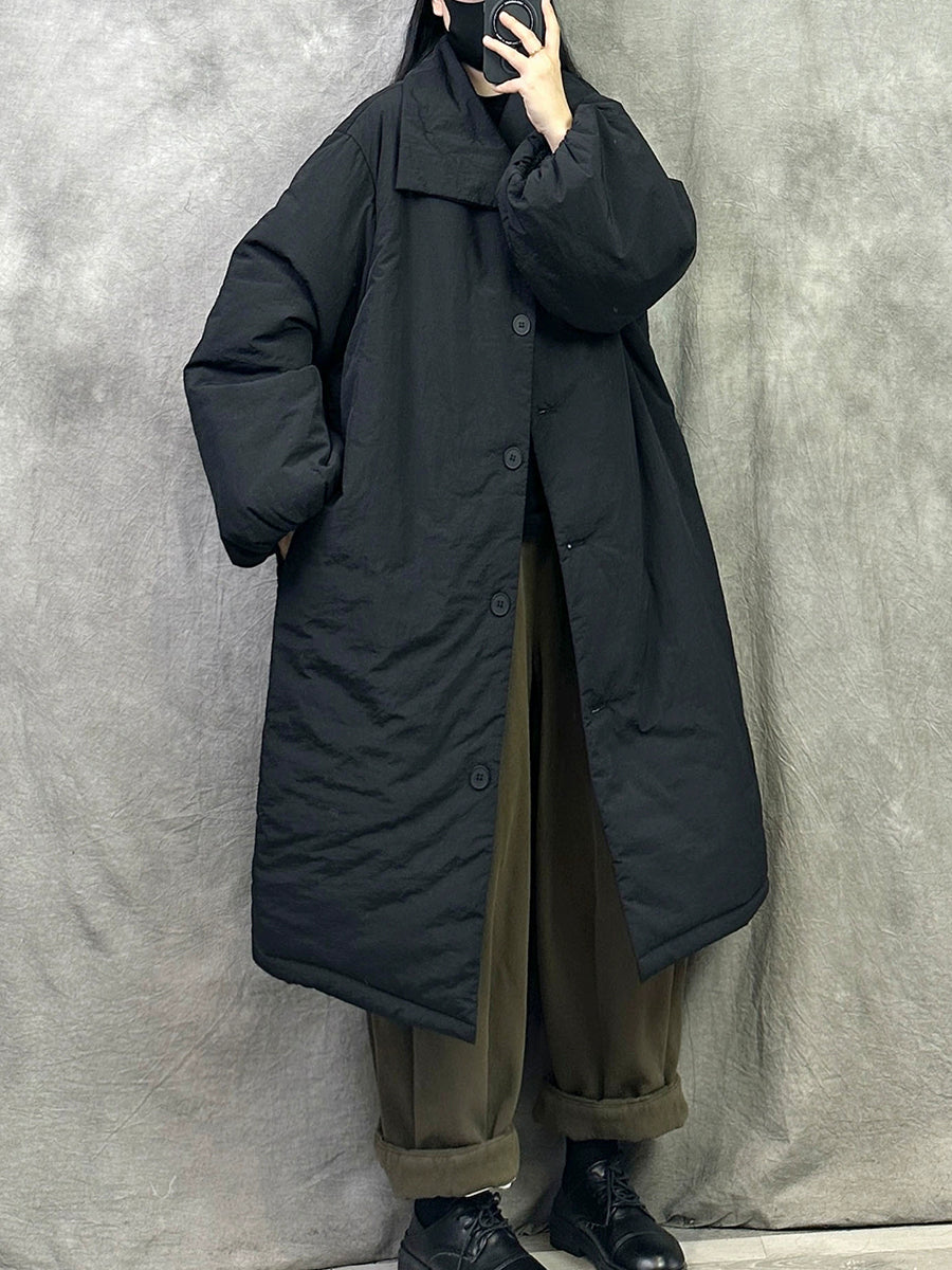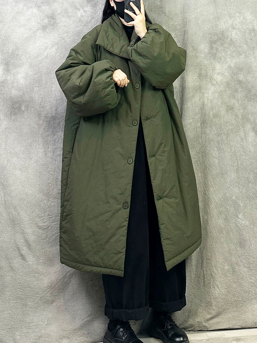 Women Winter Pure Color Turn-down Collar Padded Overcoat