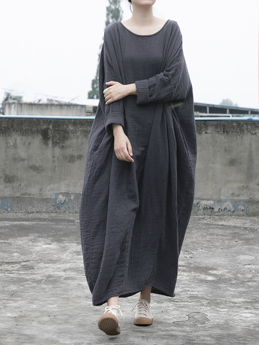 Expertly crafted from a blend of linen and cotton, this dress boasts a timeless solid pattern and features an O-neck collar and full raglan sleeves. The loose and vintage style adds a relaxed yet elegant touch to your wardrobe. Ideal for both spring and autumn, this dress is a must-have for any fashion-forward individual.