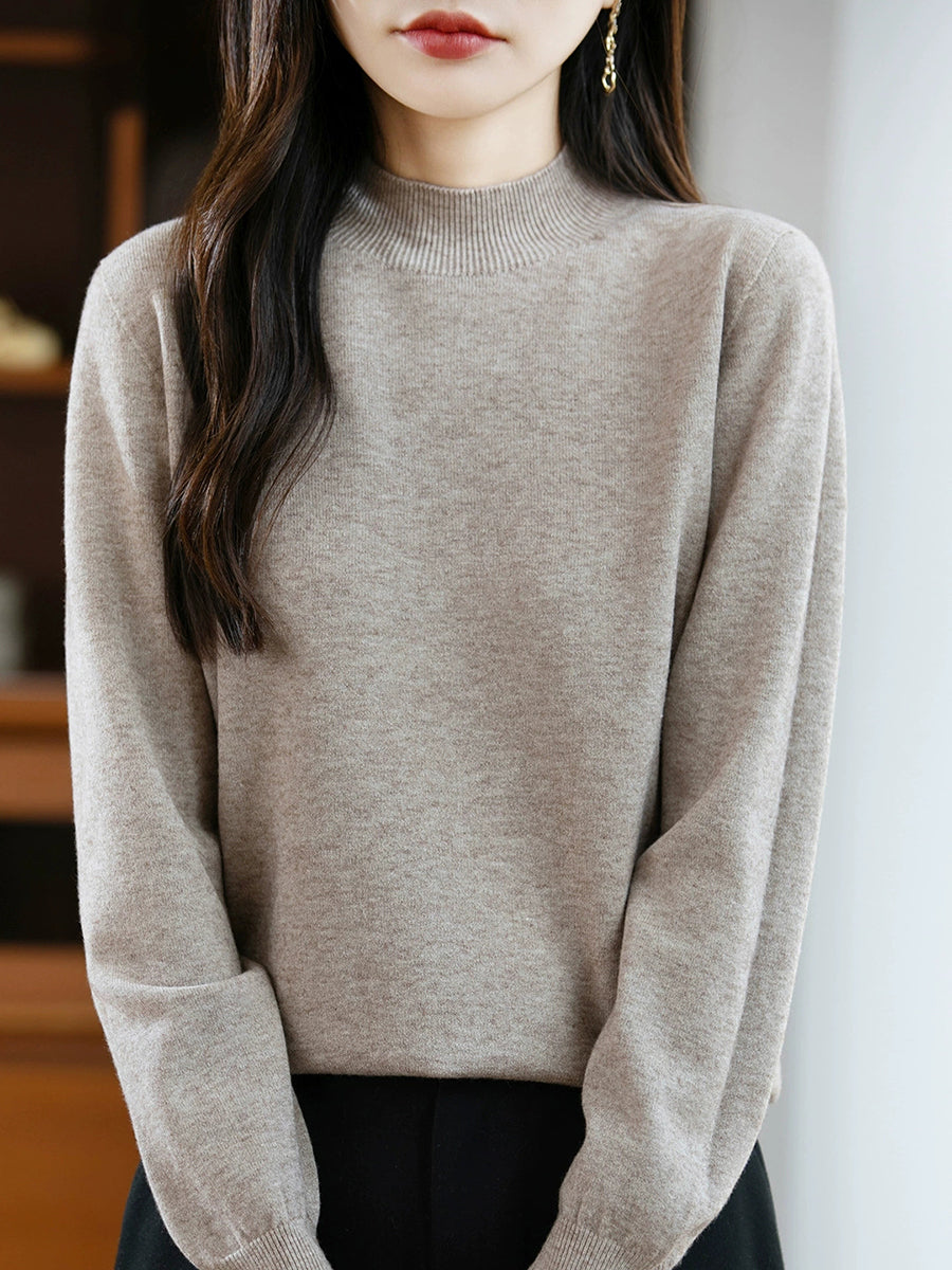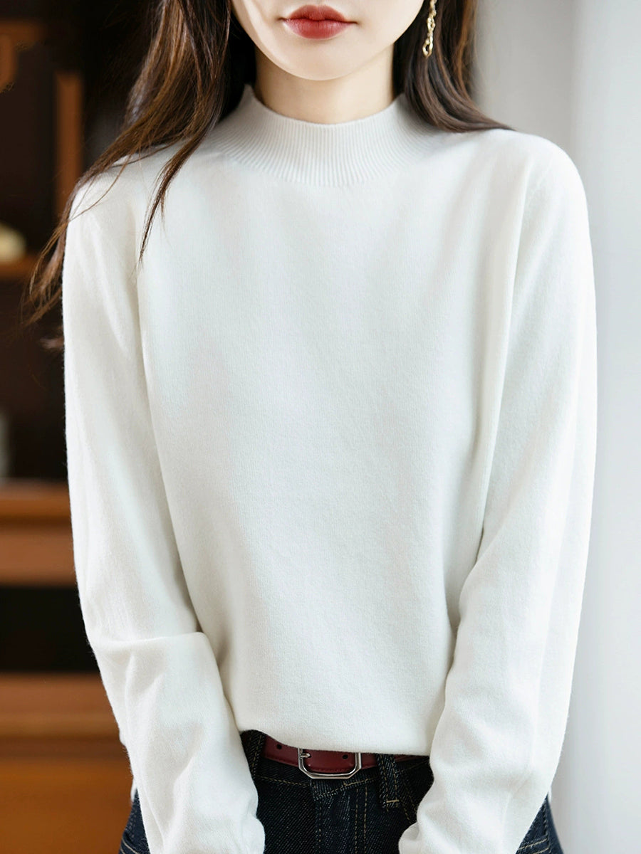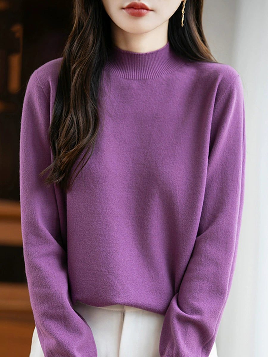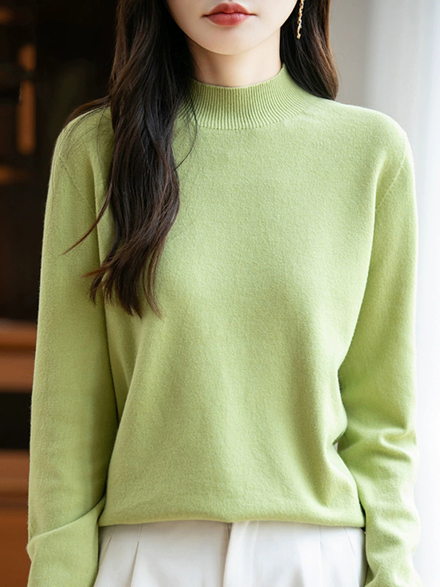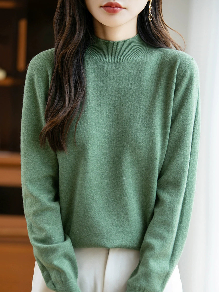 Women Spring Casual Pure Color Half-turtleneck Sweater
