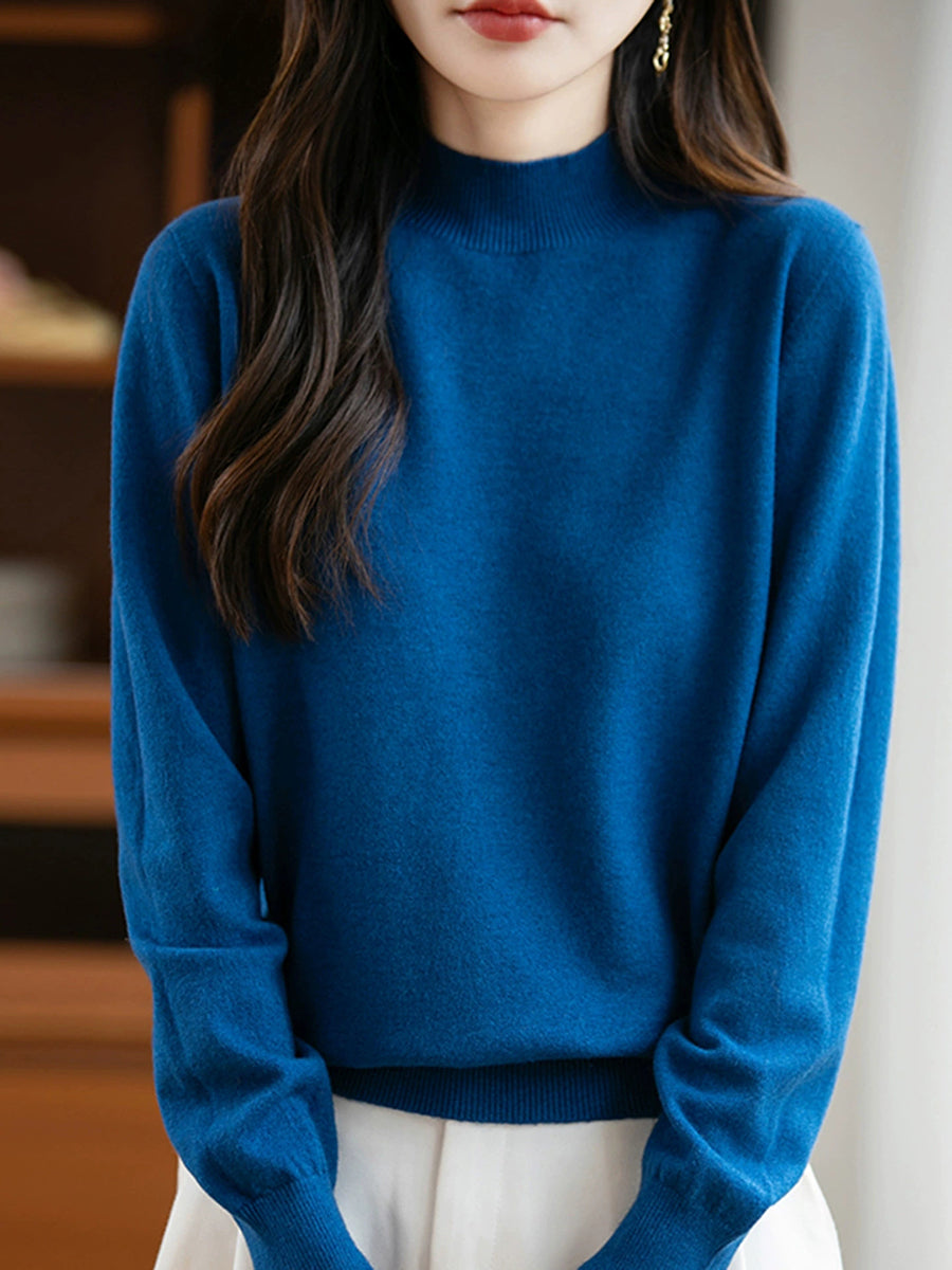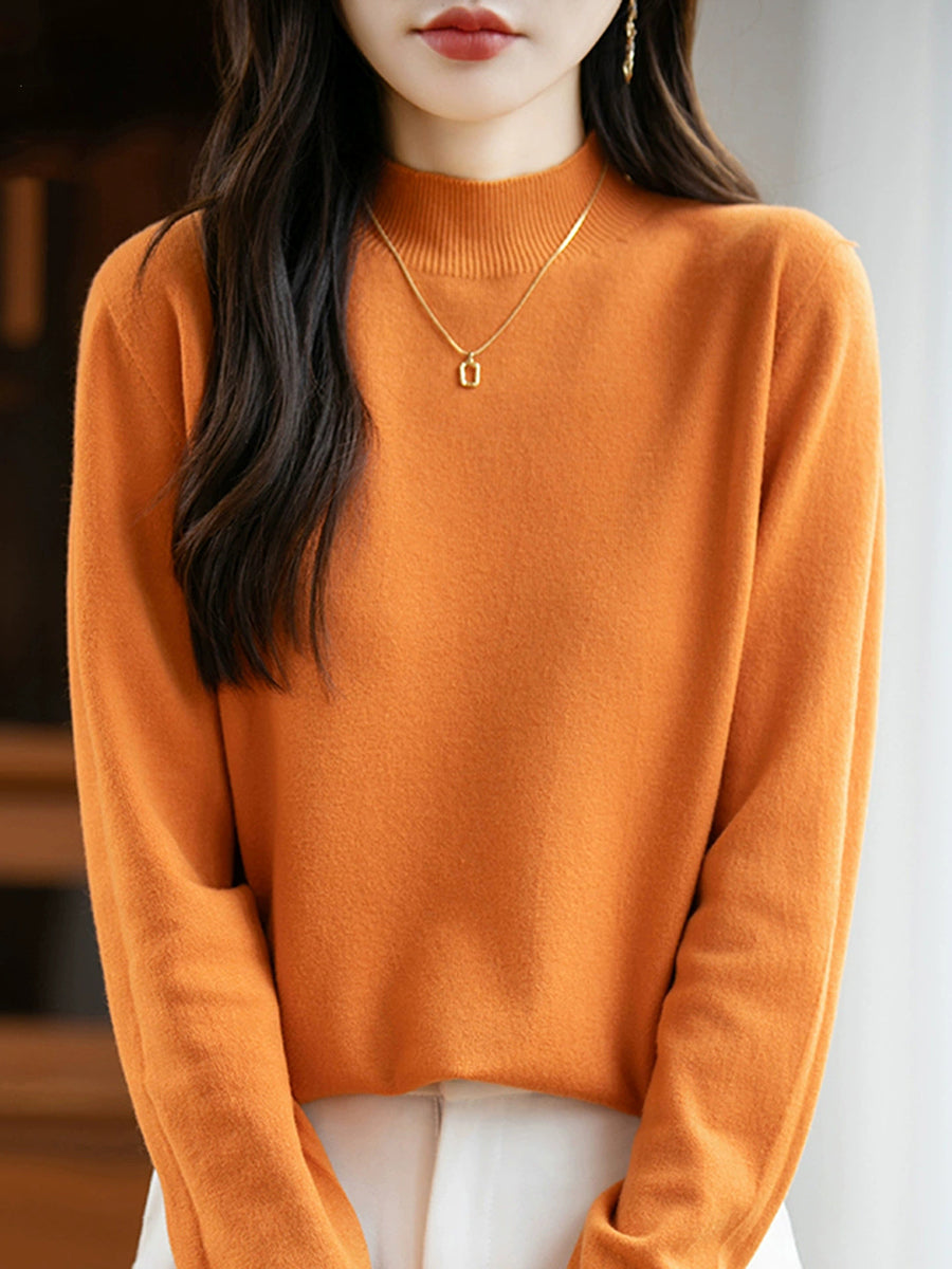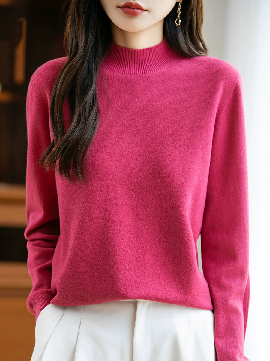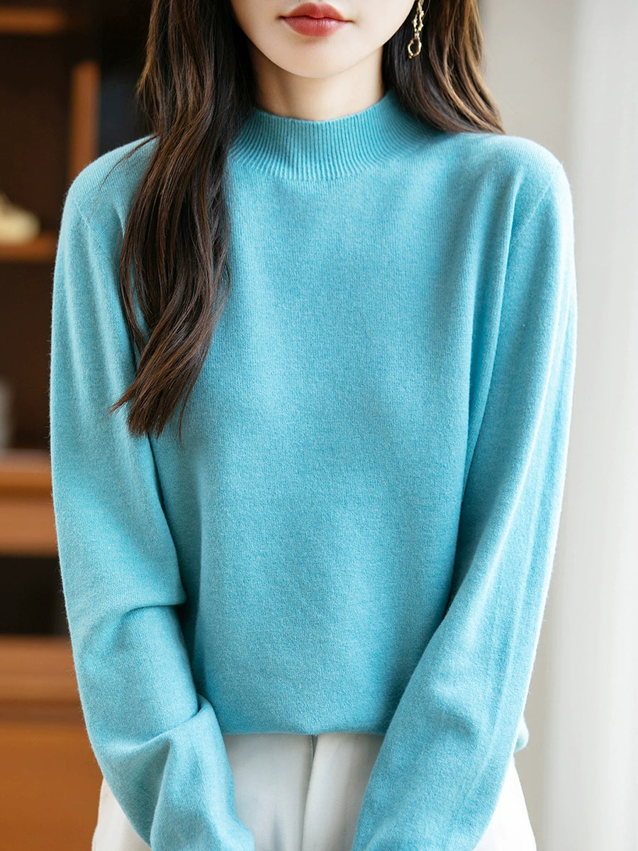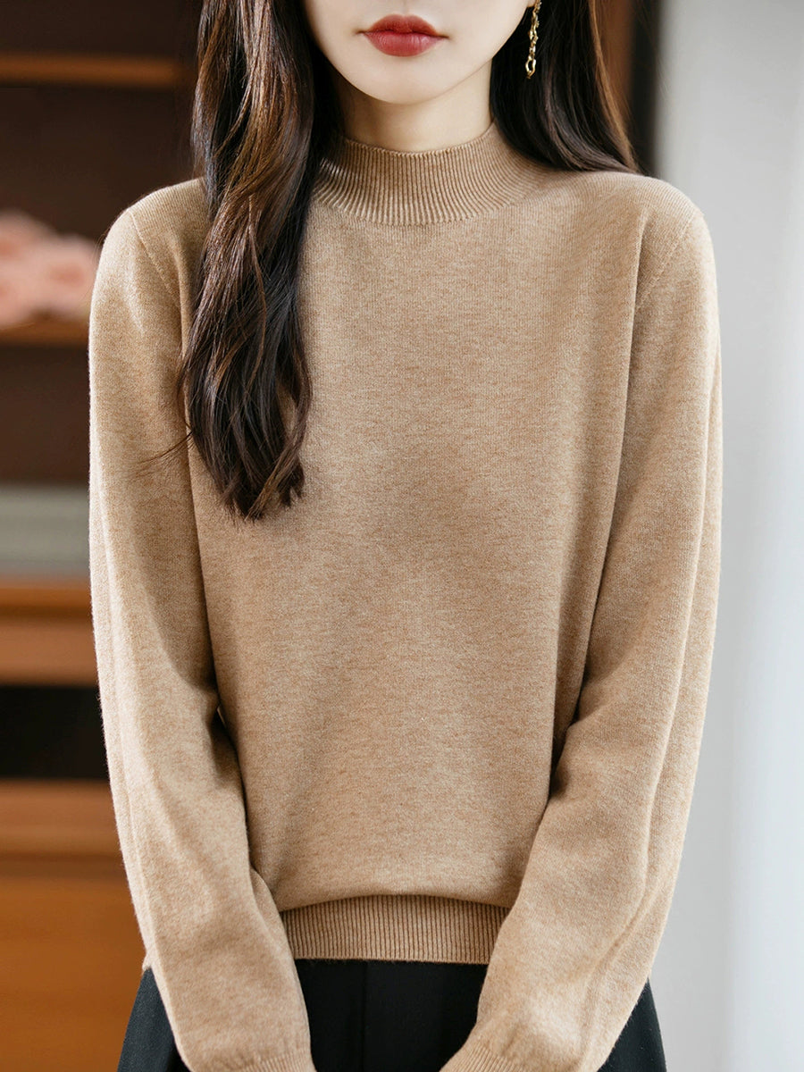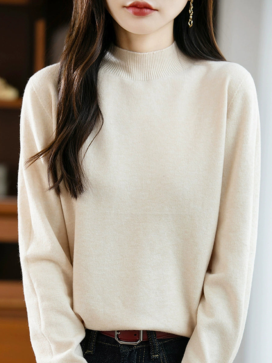 Women Spring Casual Pure Color Half-turtleneck Sweater