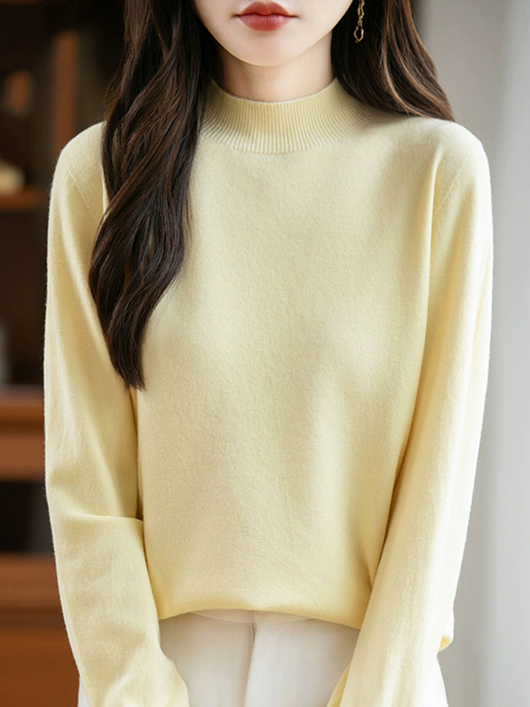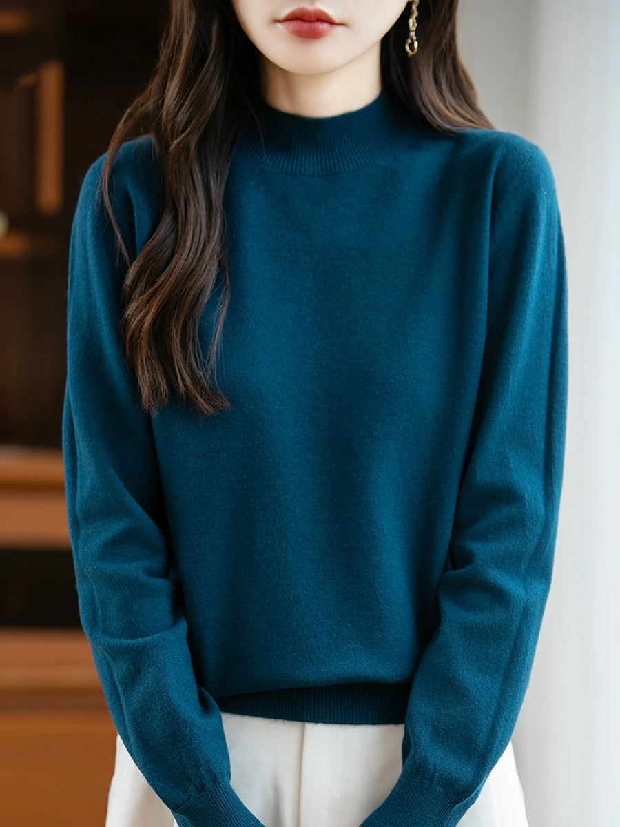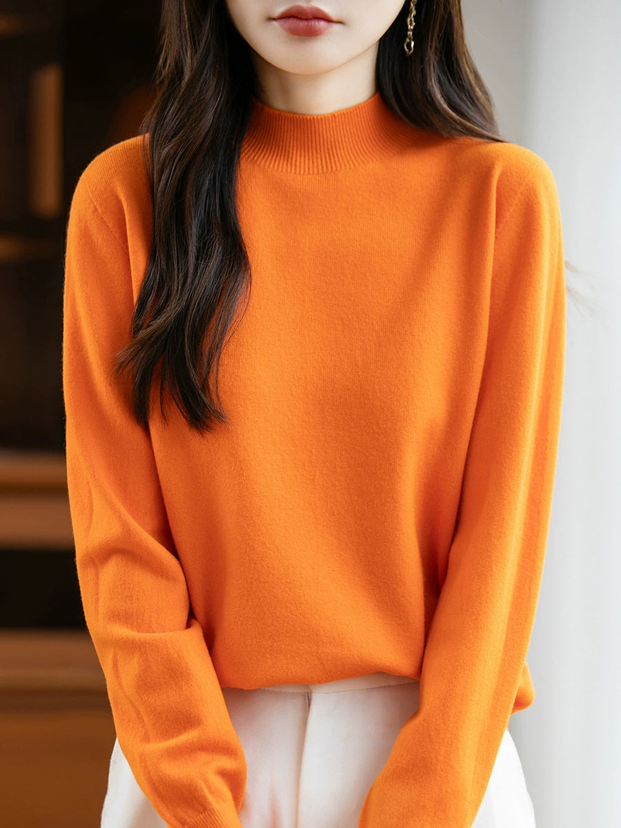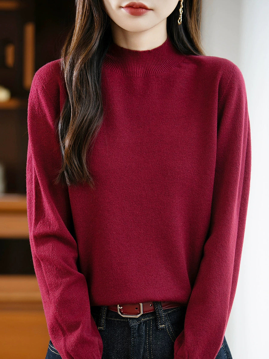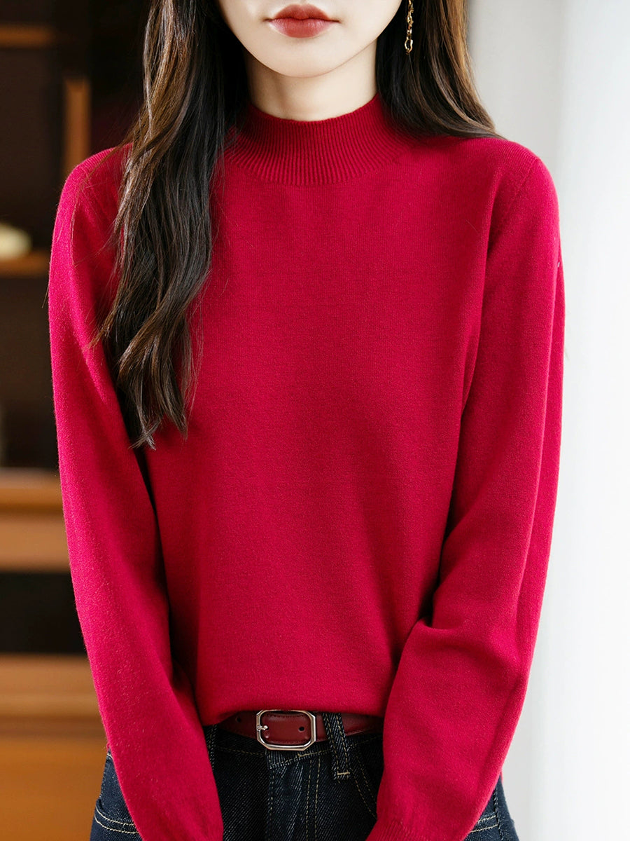 Women Spring Casual Pure Color Half-turtleneck Sweater
