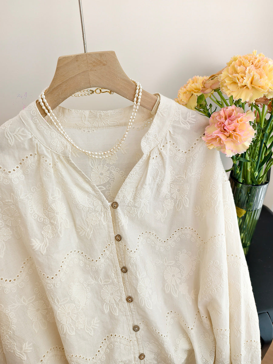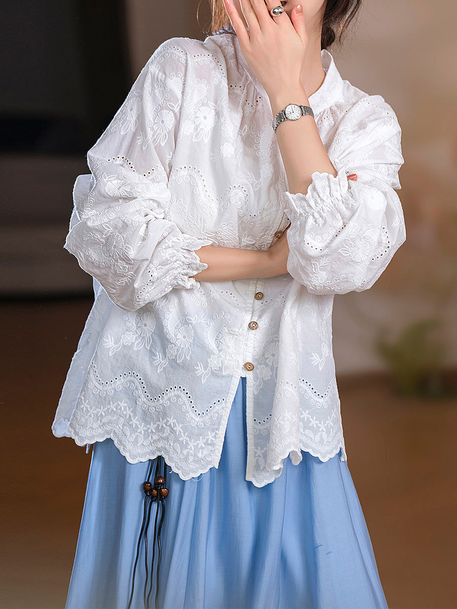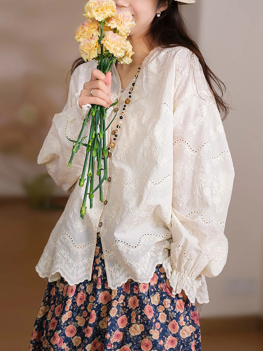 Women Spring Artsy Embroidery 100%Cotton Shirt