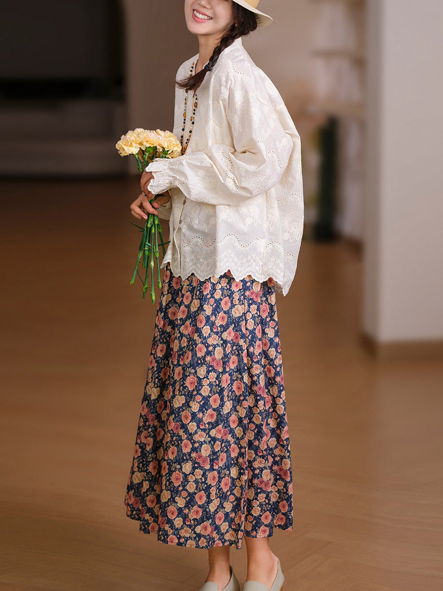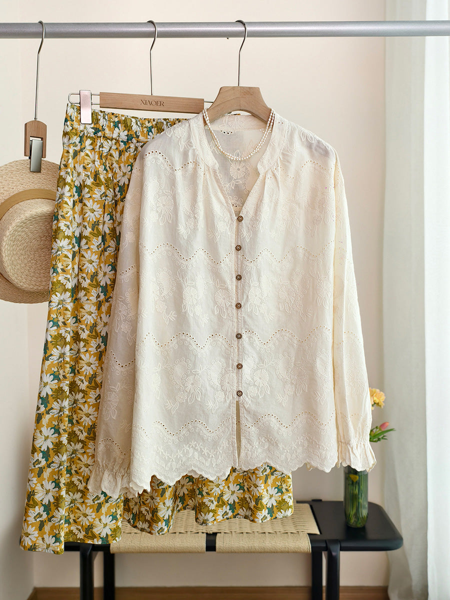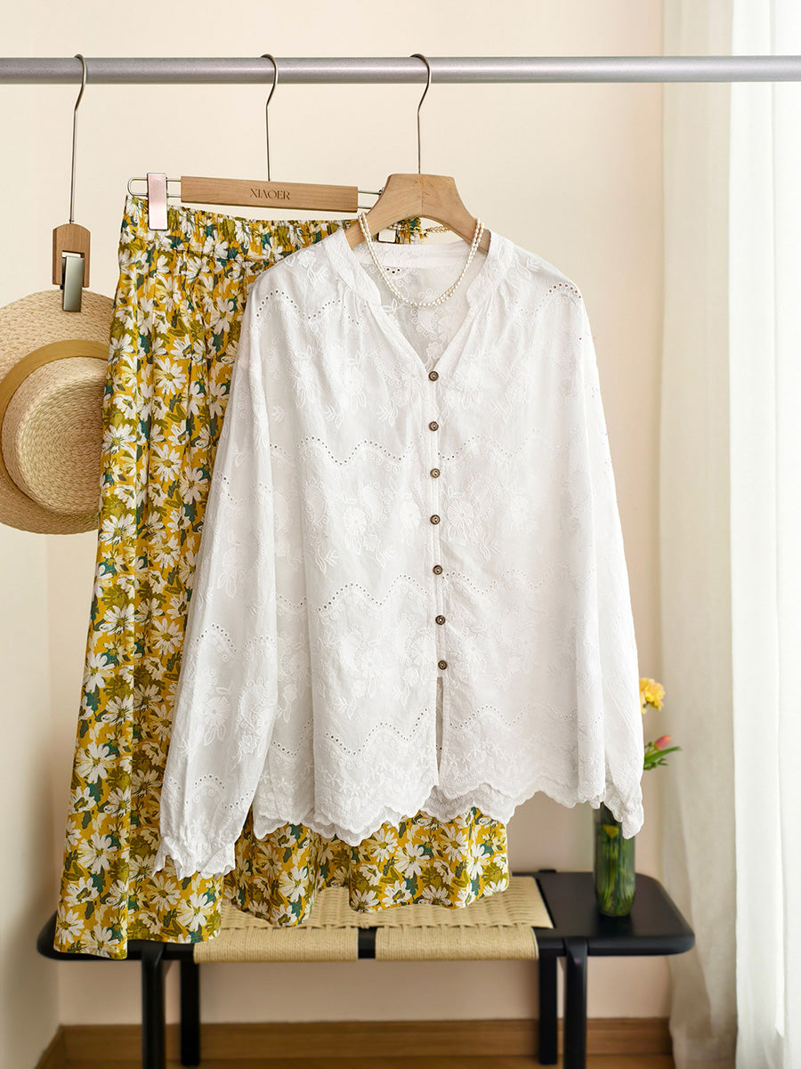 Women Spring Artsy Embroidery 100%Cotton Shirt