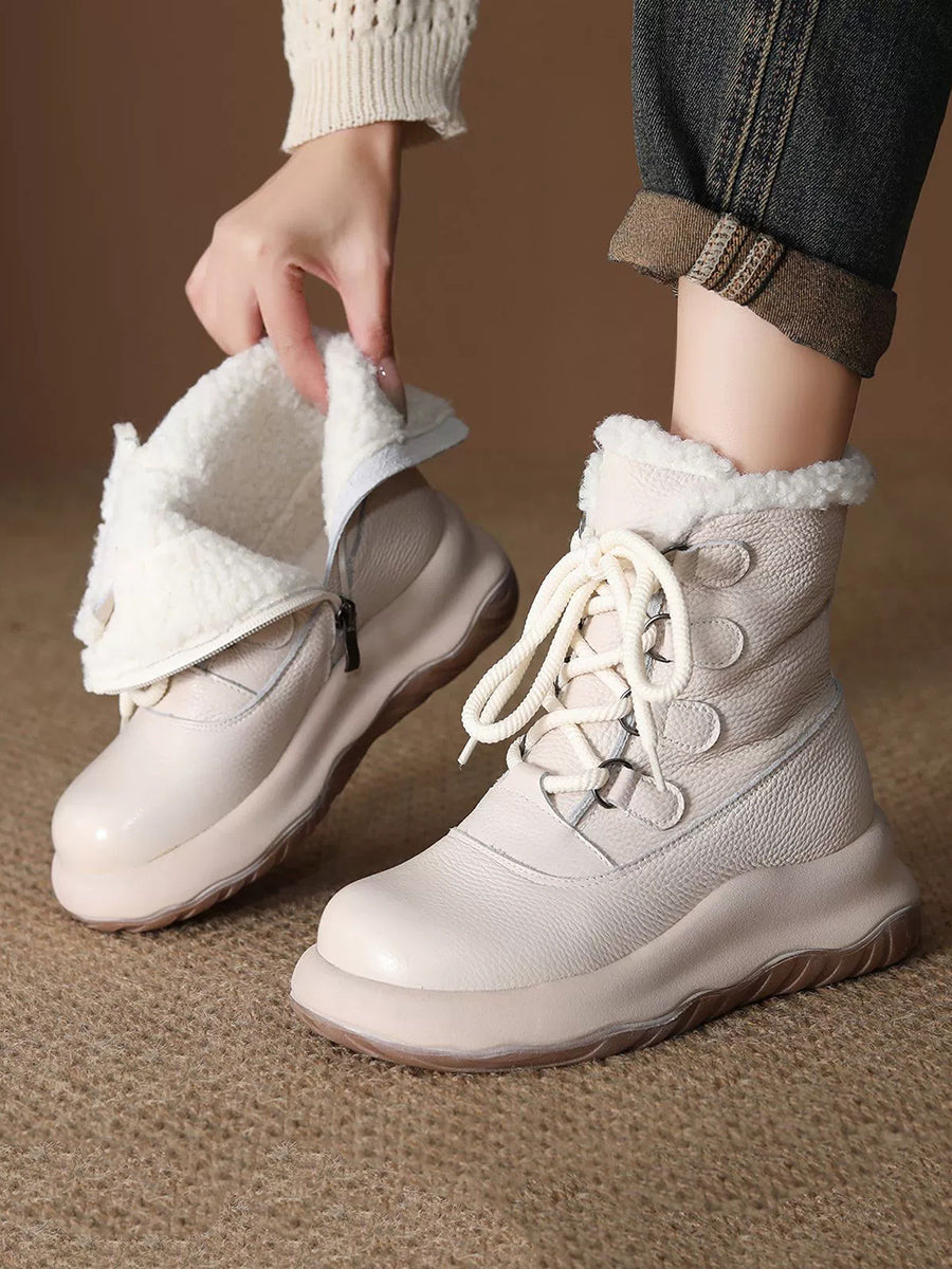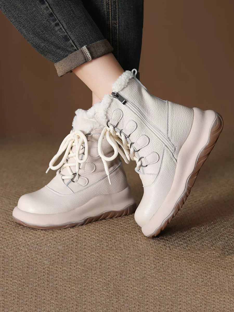 Women Winter Genuine Leather Fleece-lined Martin Boots