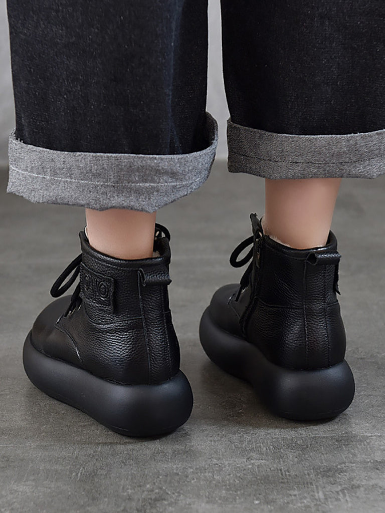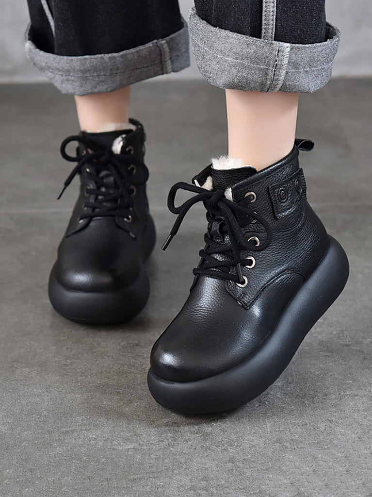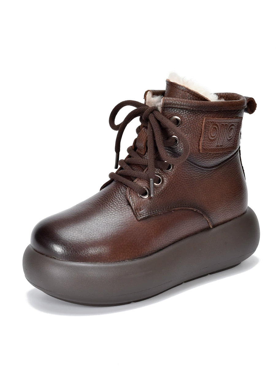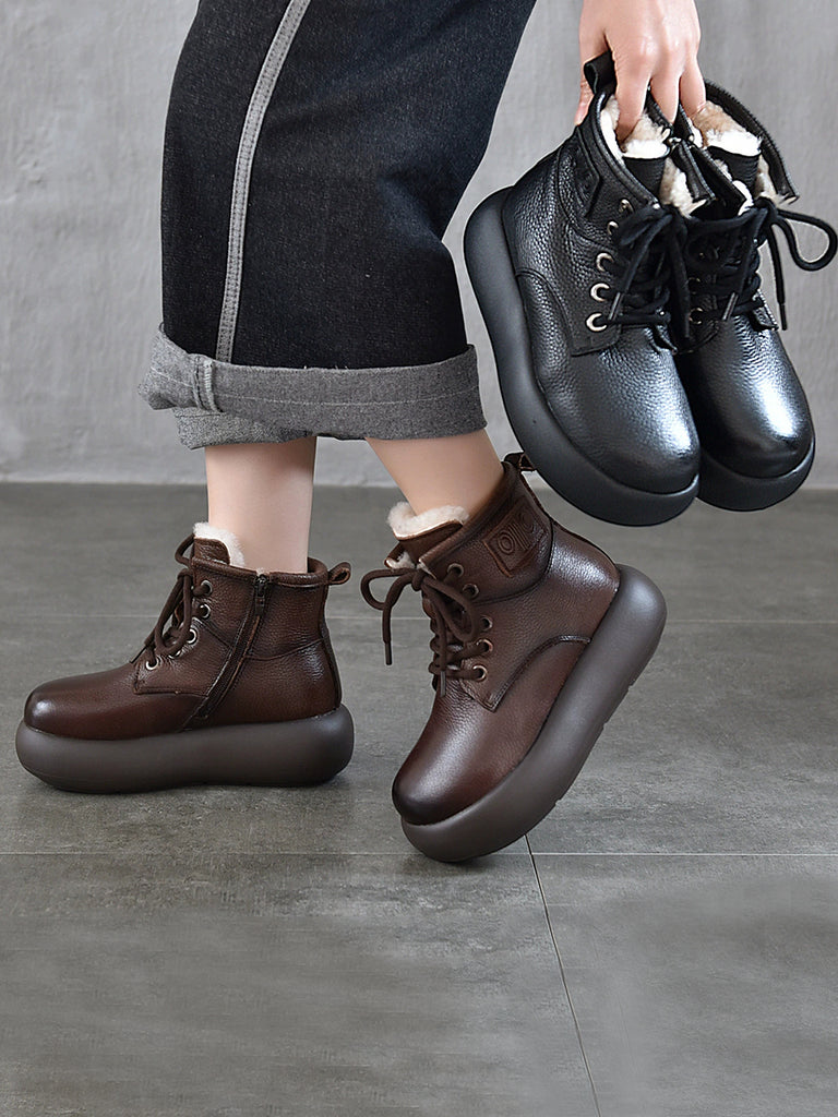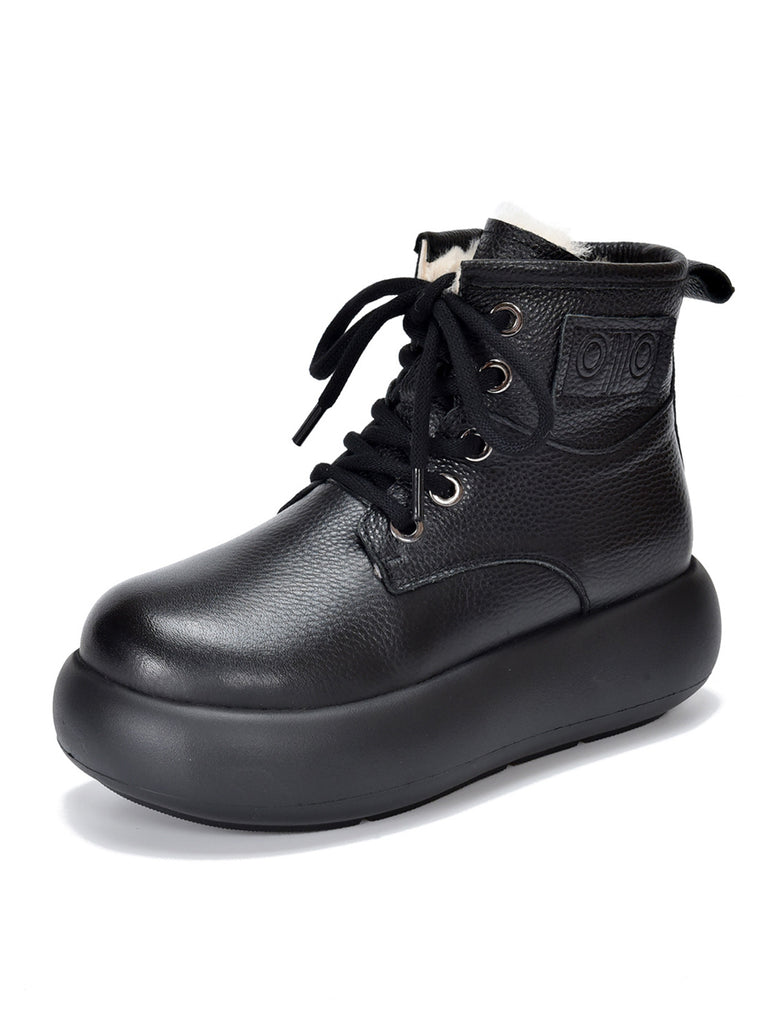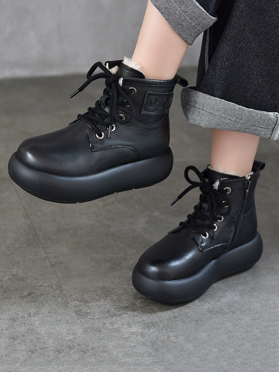 Women Winter Genuine Leather Fleece-lined Platform Boots