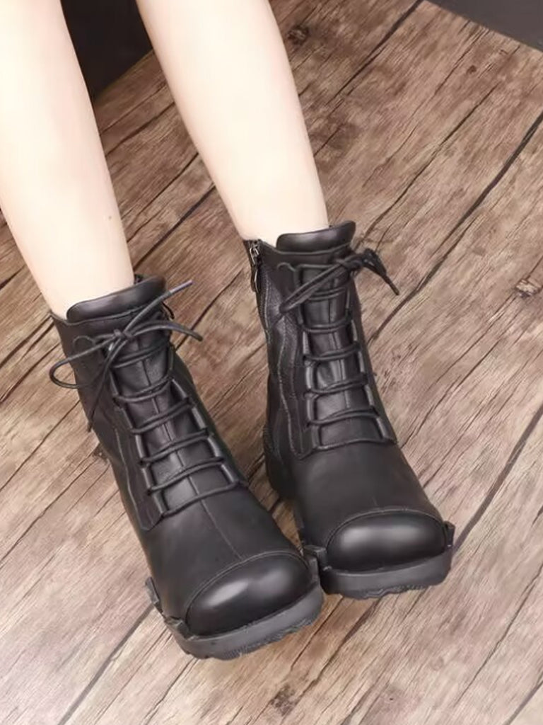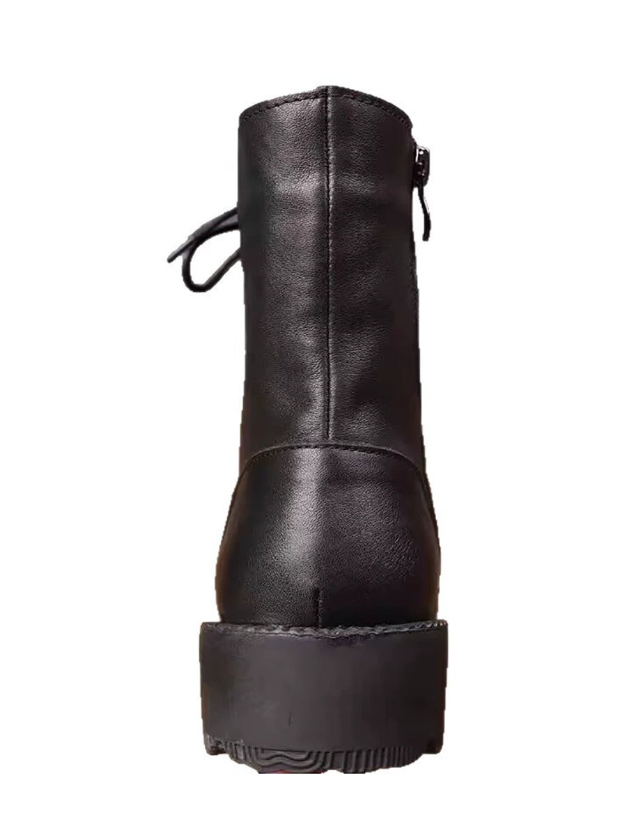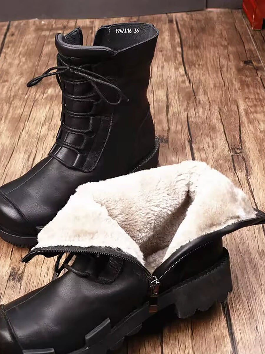 Women Winter Genuine Leather Fleece-lined Platform Boots
