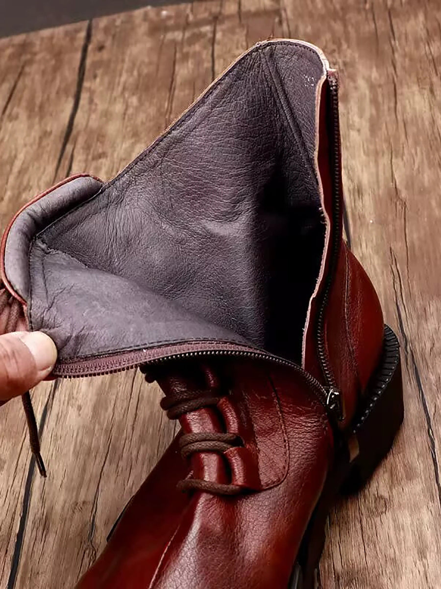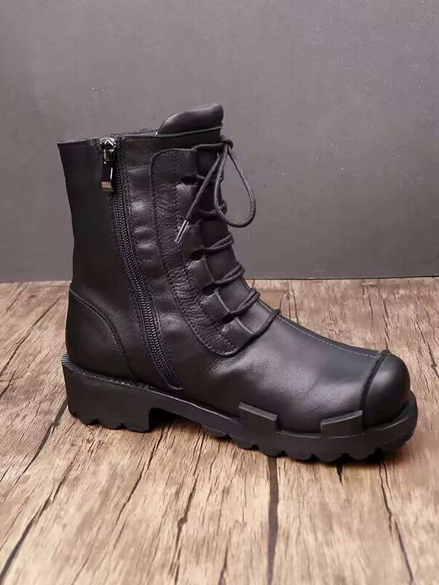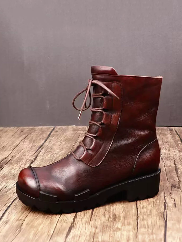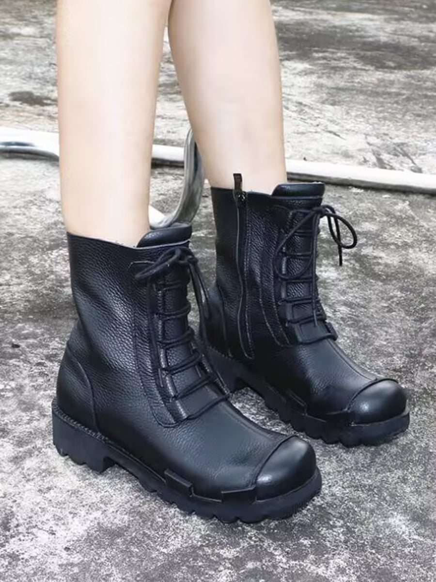 Women Winter Genuine Leather Fleece-lined Platform Boots