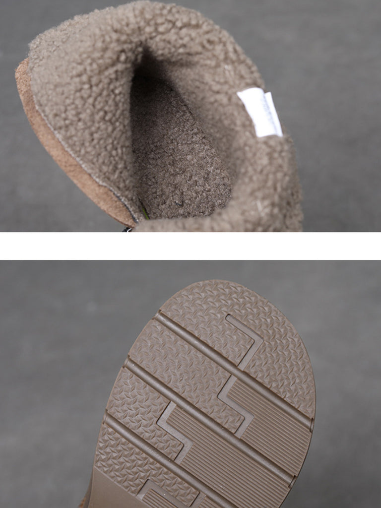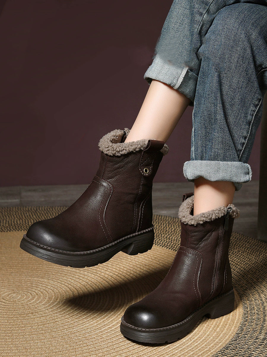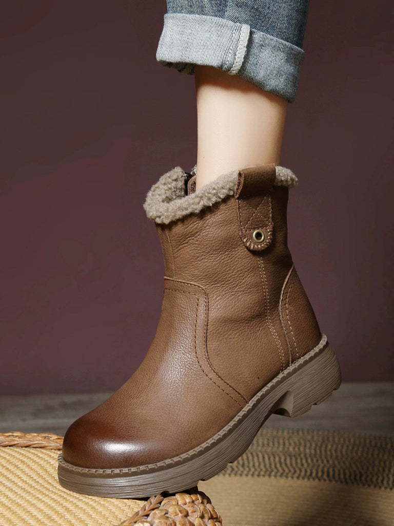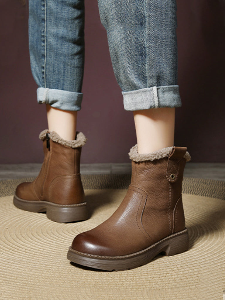 Women Winter Pure Color Genuine Leather Fleece-lined Boots