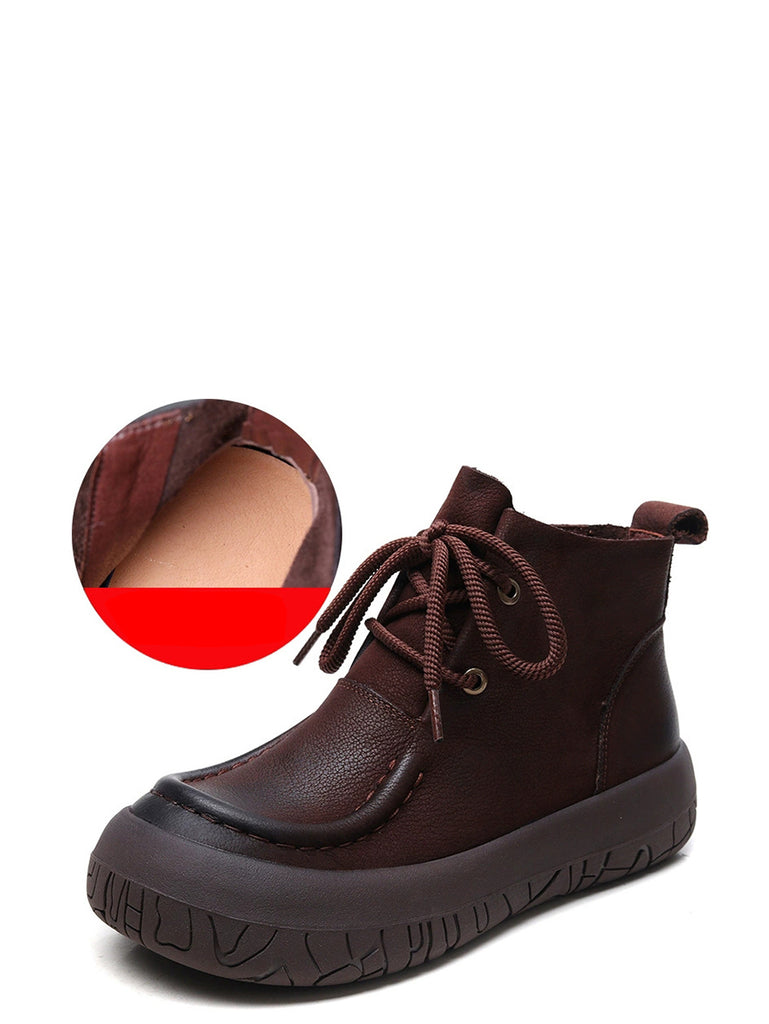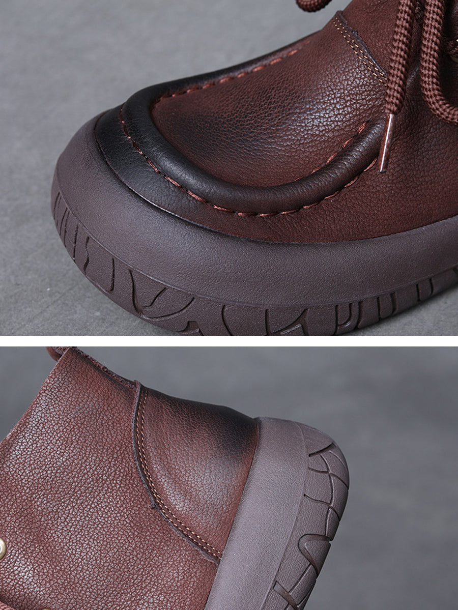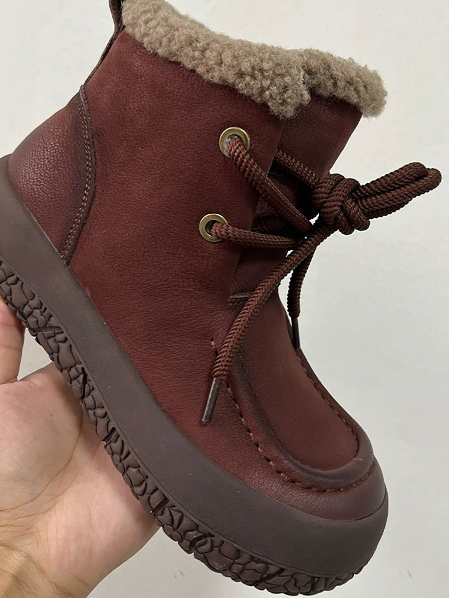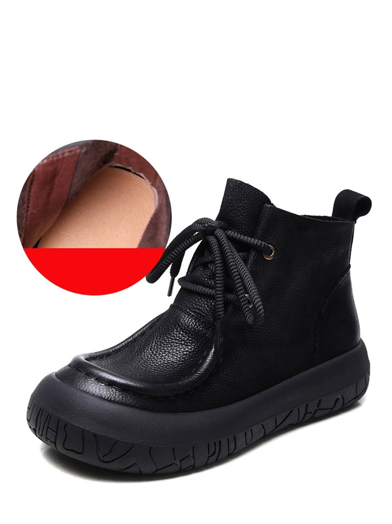 Women Winter Soft Genuine Leather Fleece-lined Flat Boots