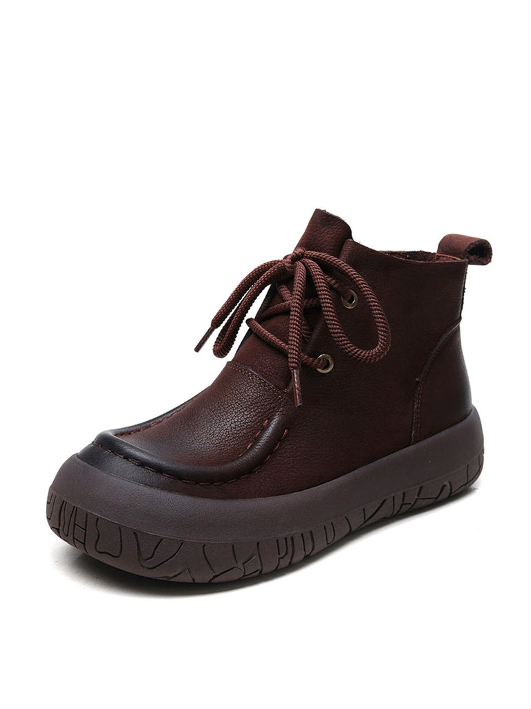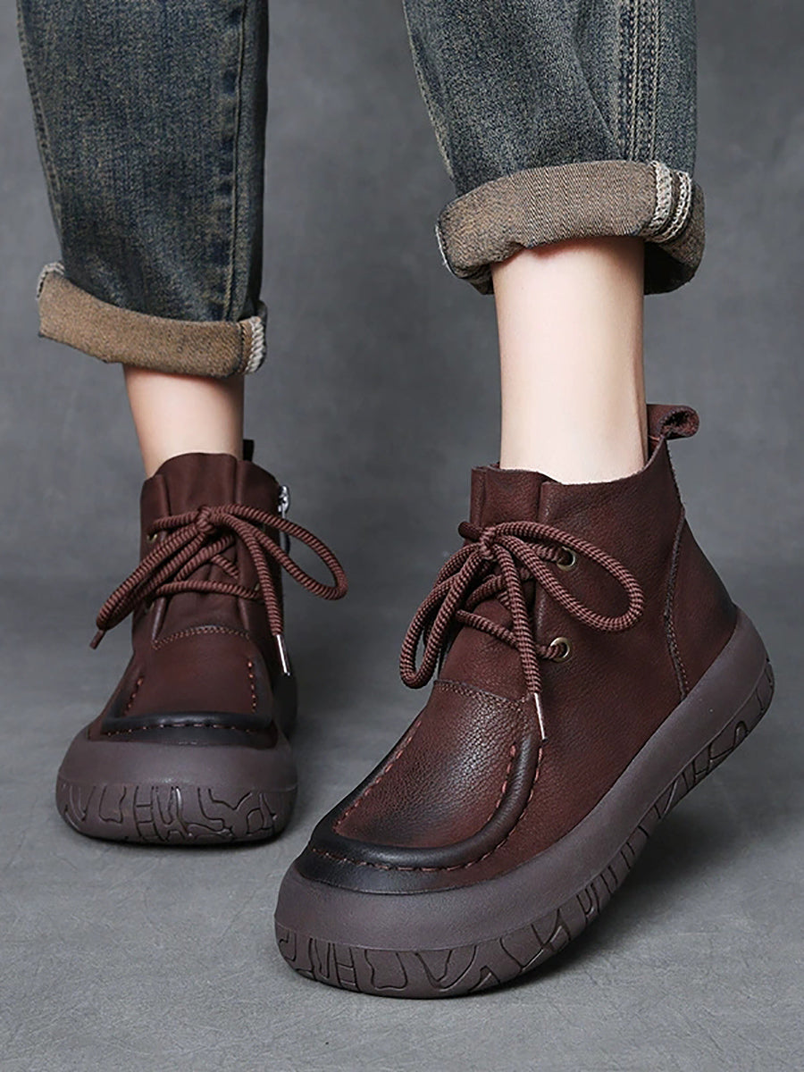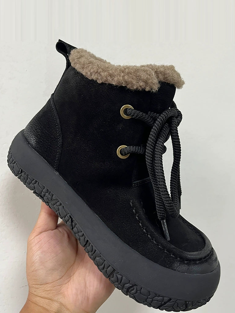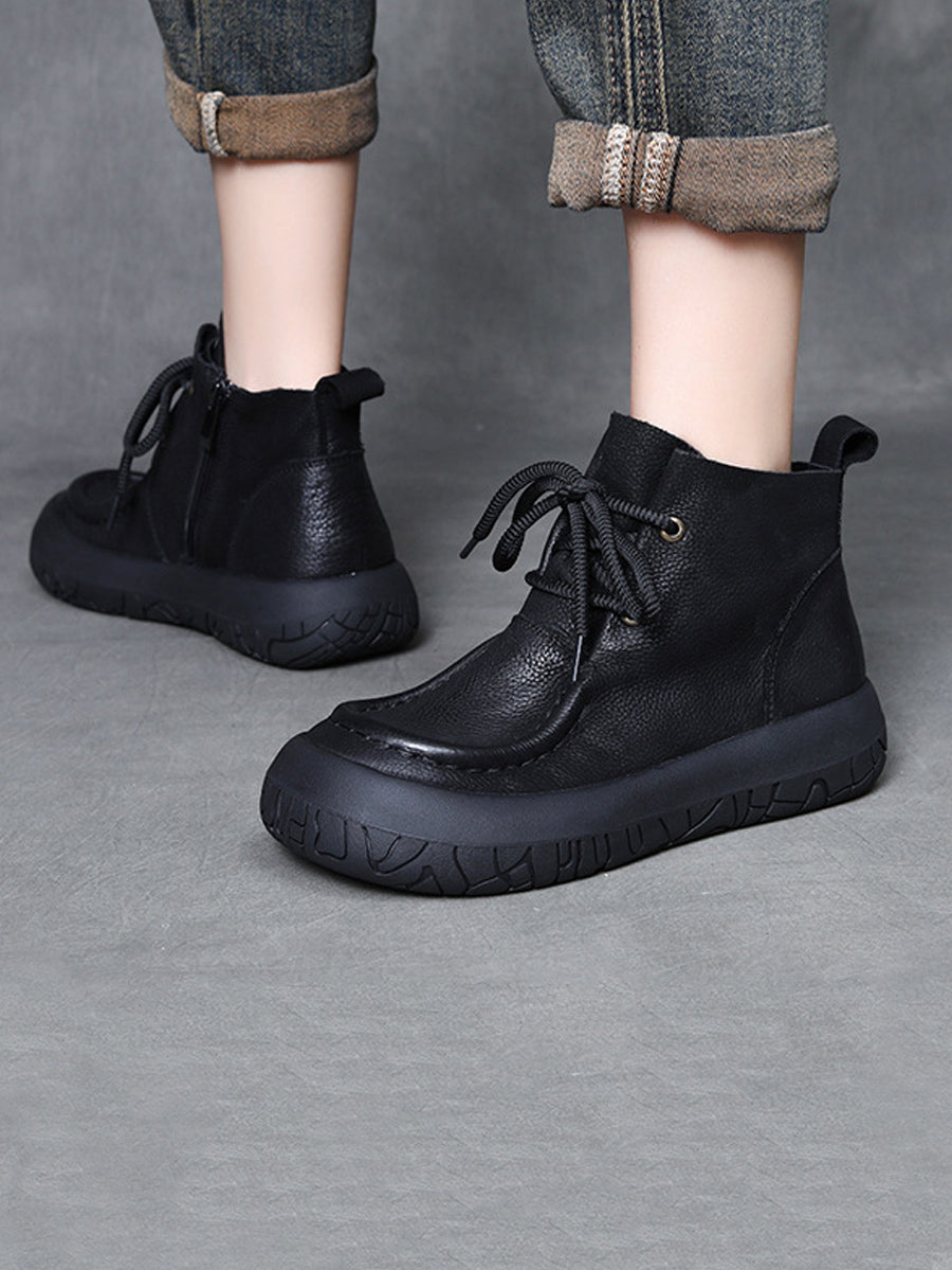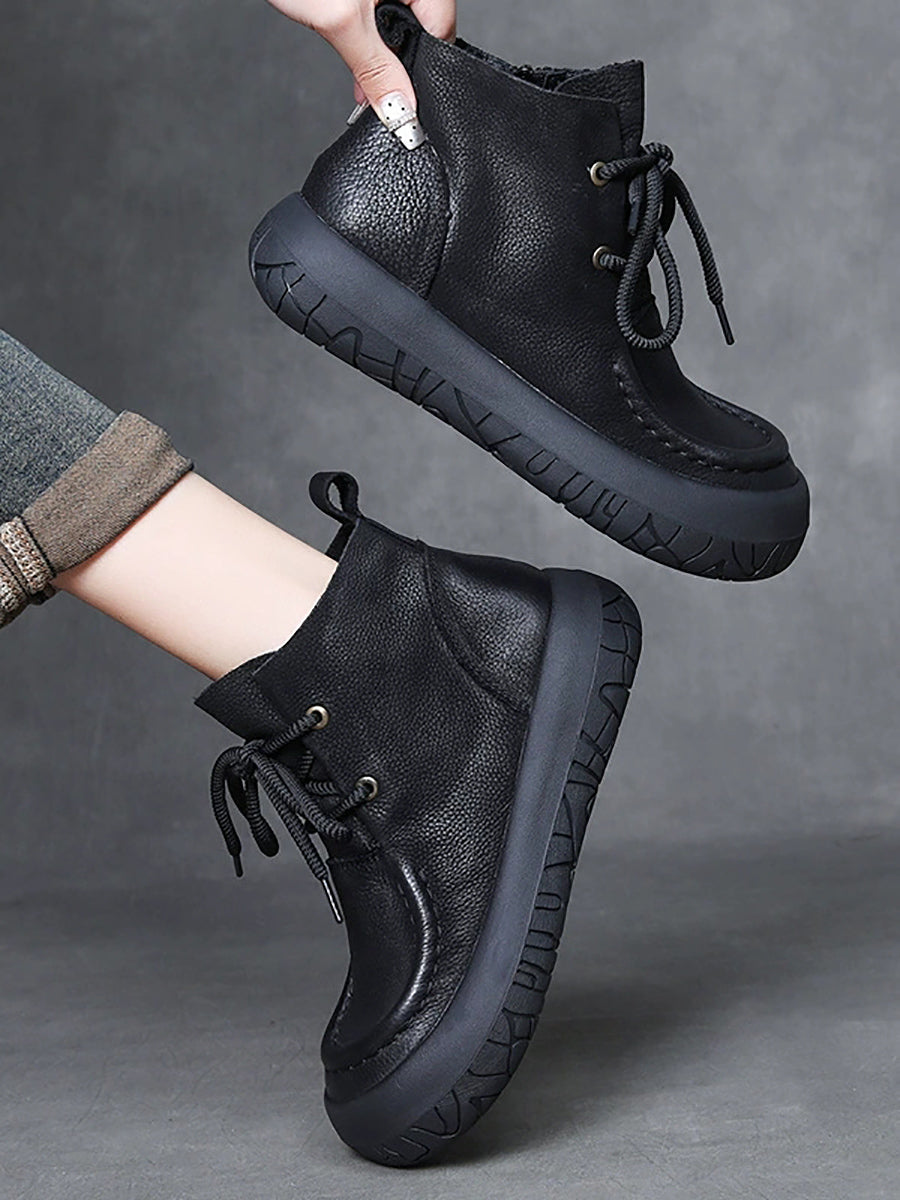 Women Winter Soft Genuine Leather Fleece-lined Flat Boots