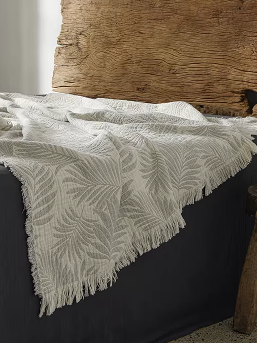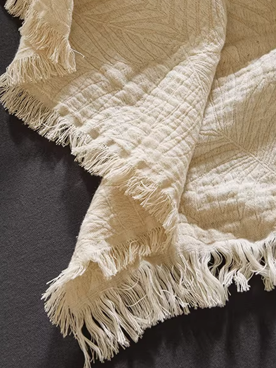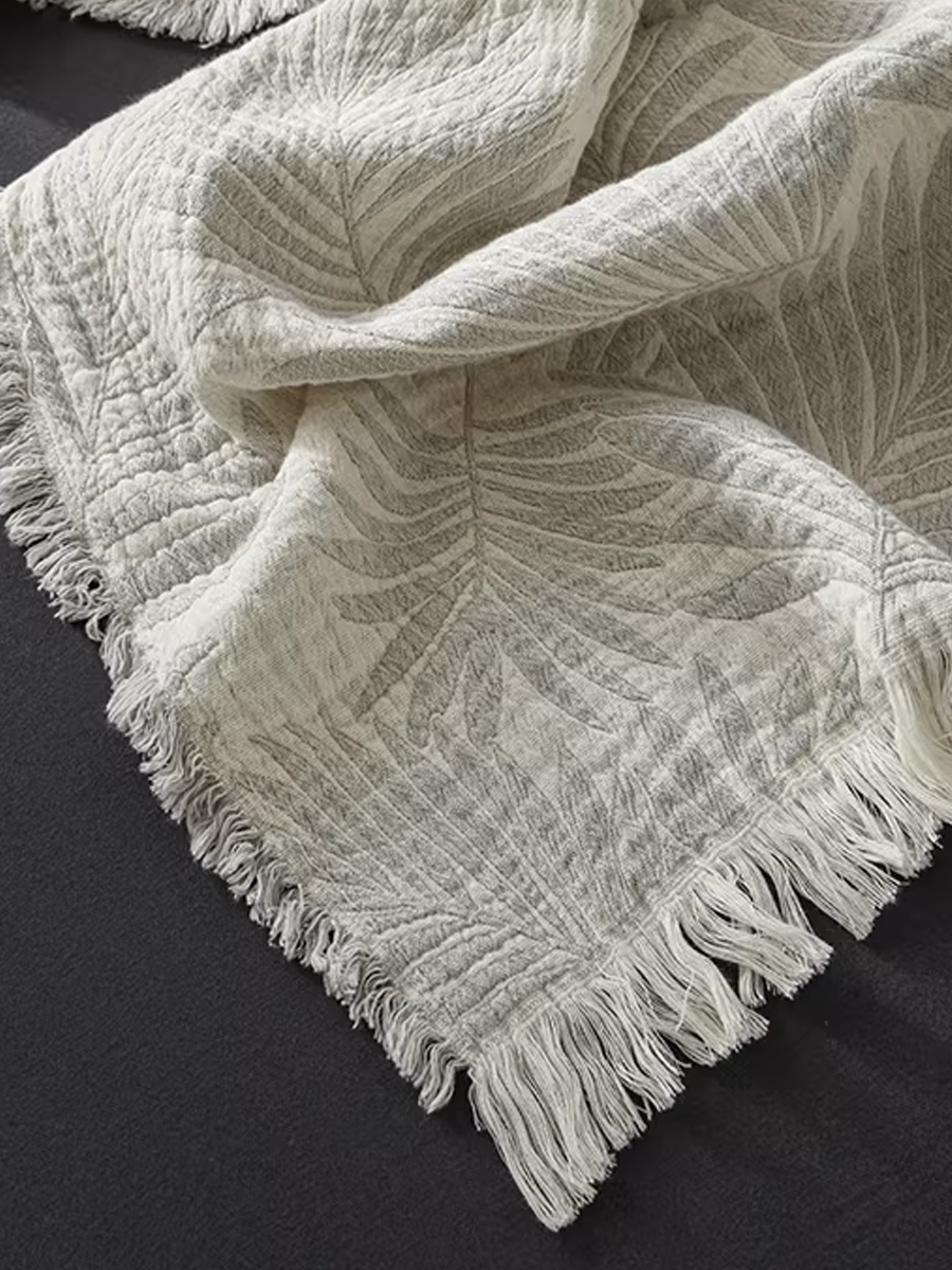 Yarn-Dyed Double-Ply Plants Jacquard Throw Blanket