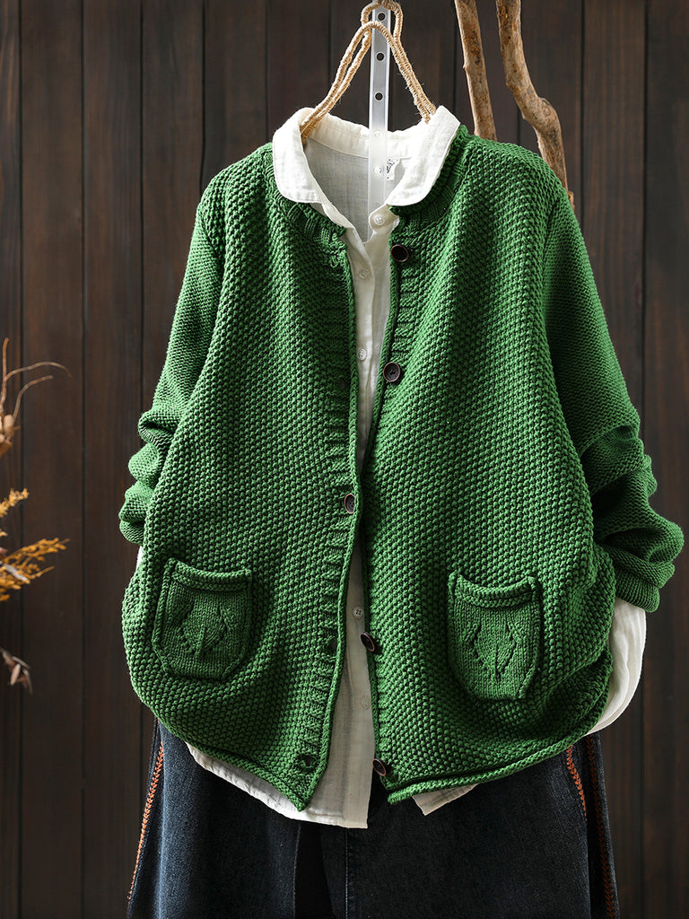 Women Autumn Artsy Pure Color Knitted O-Neck Sweater