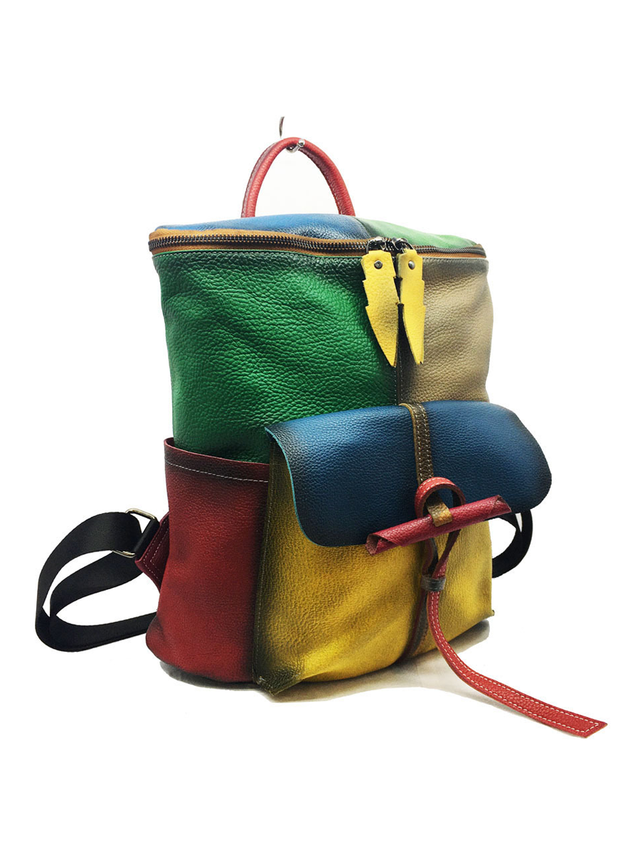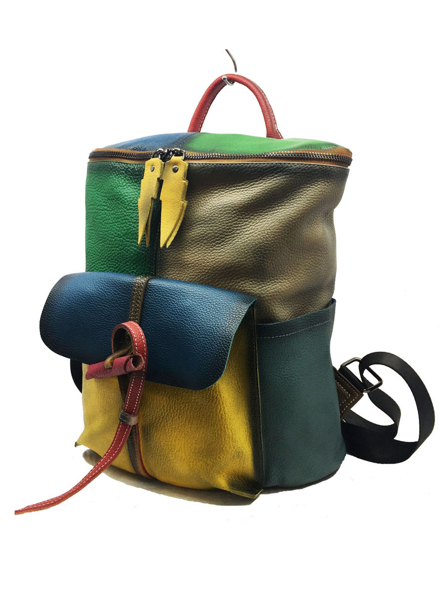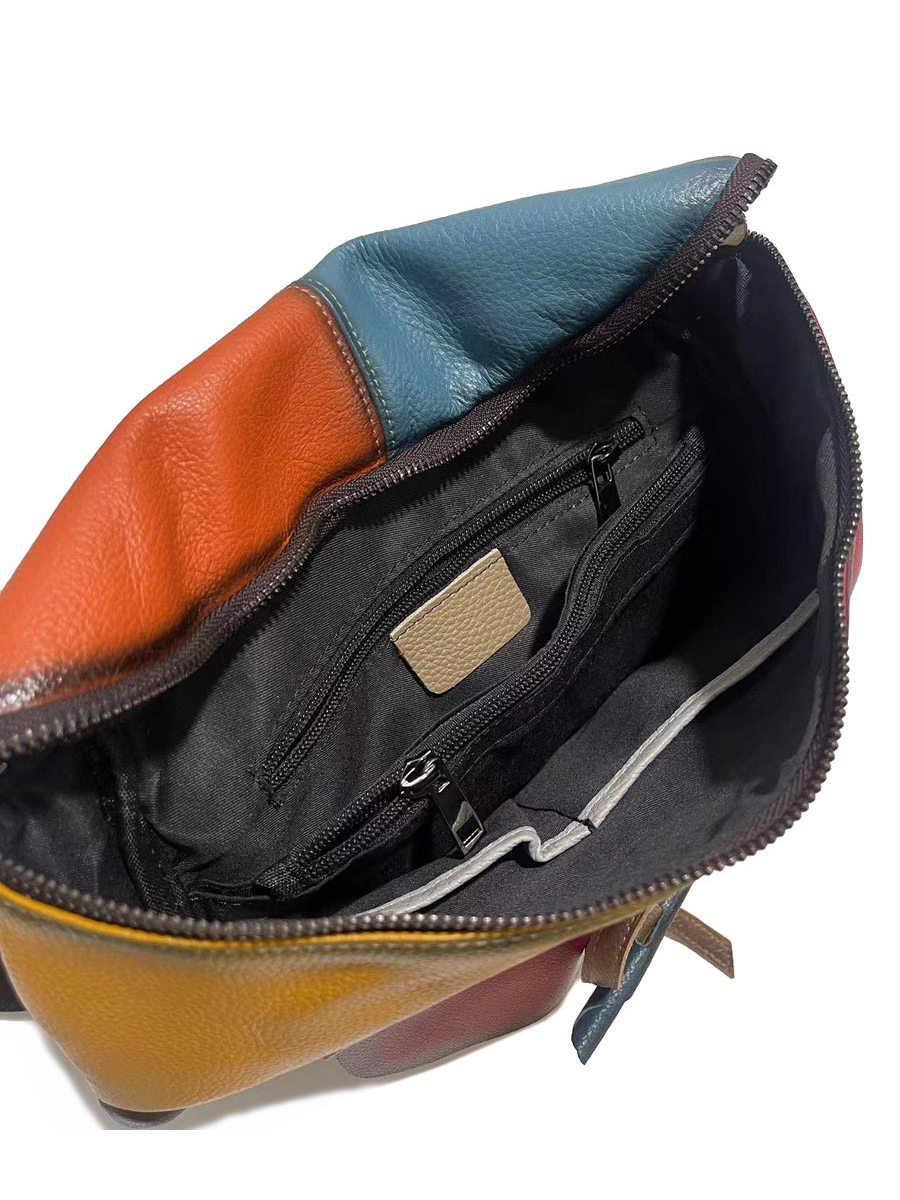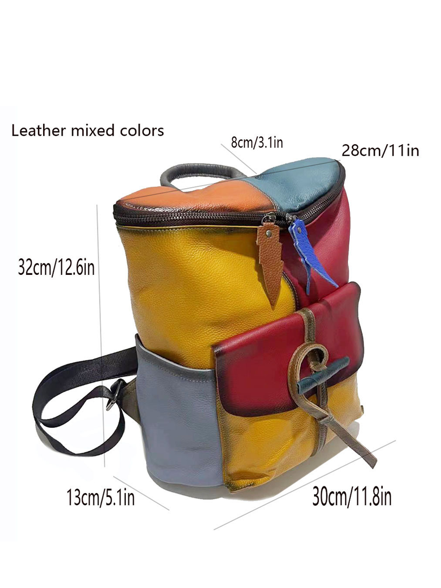 Retro Genunie Leather Colorblock Large Capacity Backpack