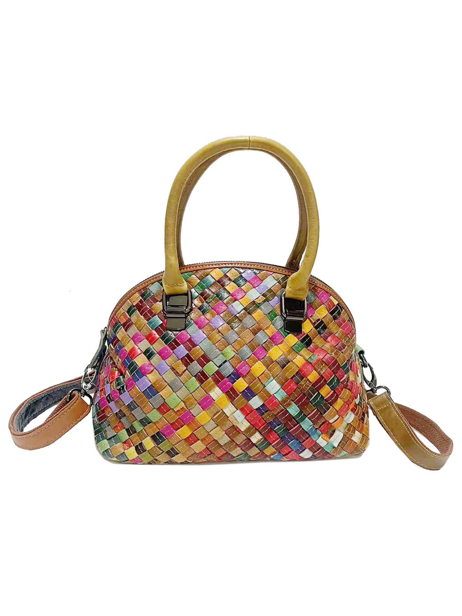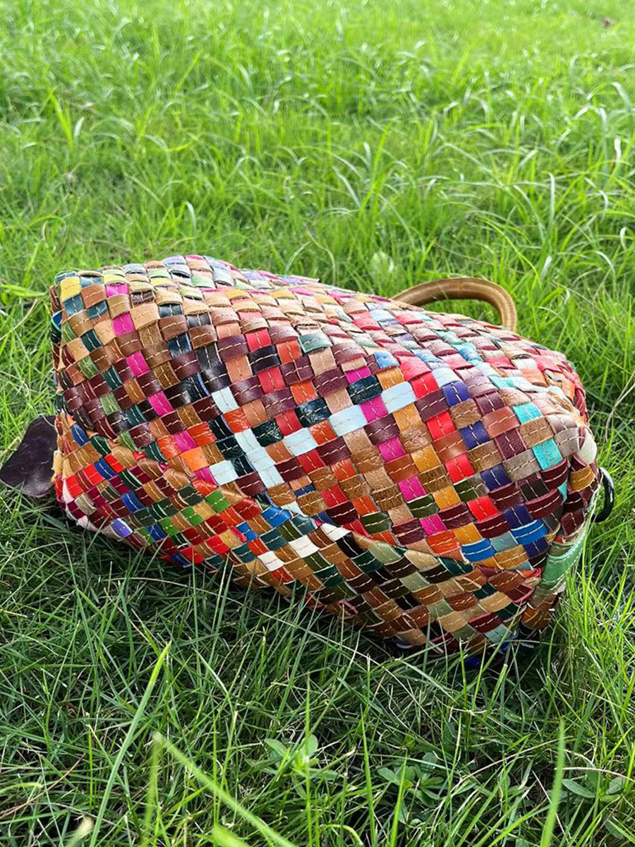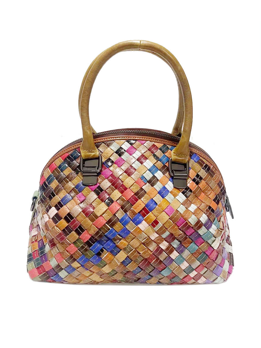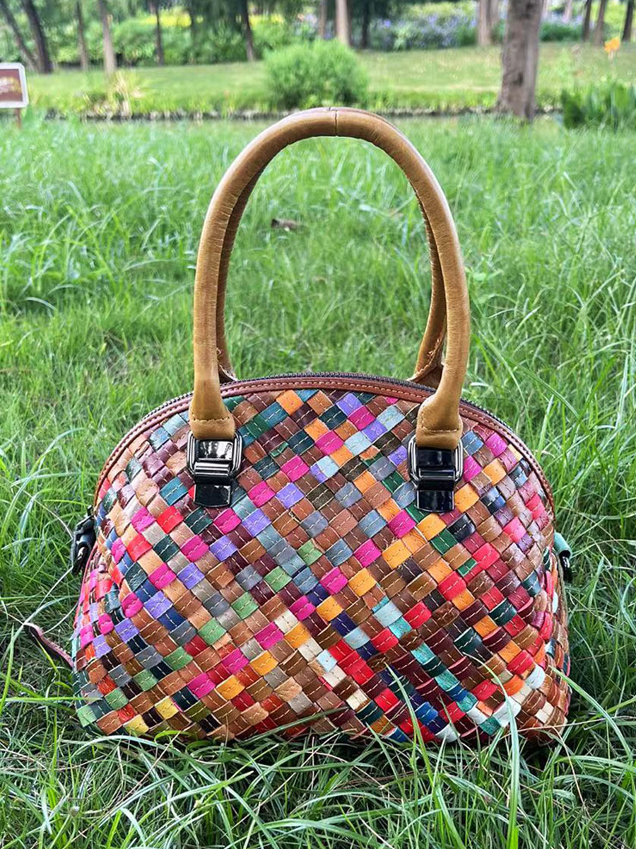 Milticolor Colorblocking Handwoven Leather Satchel Bag
