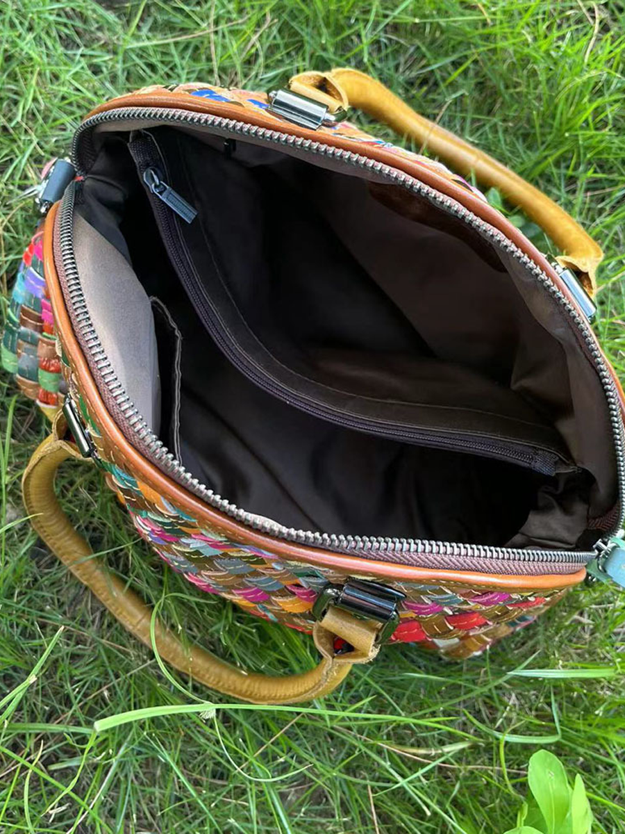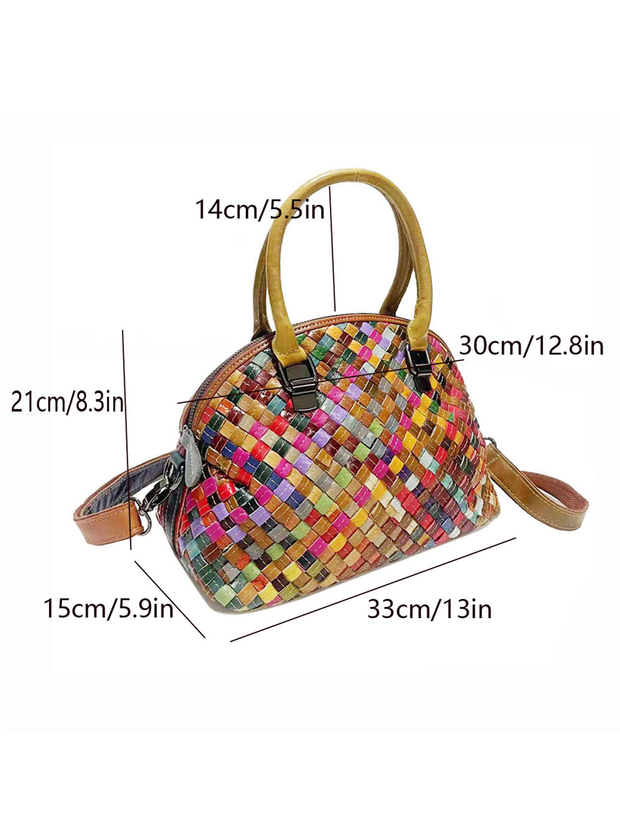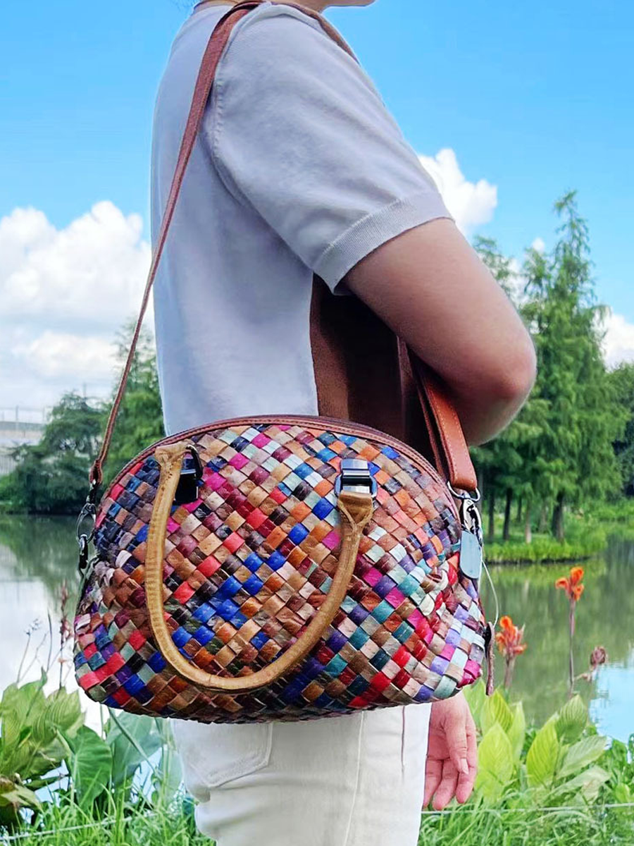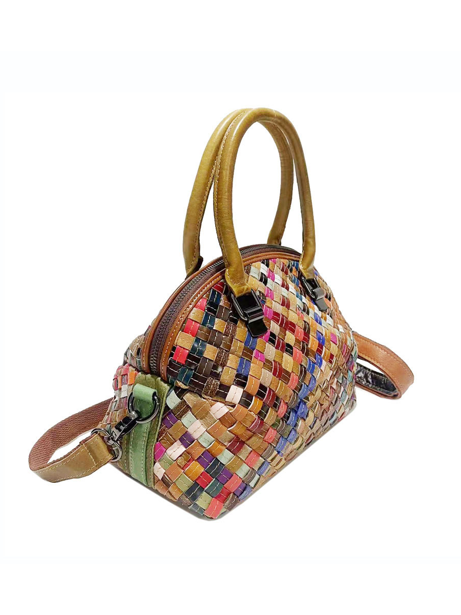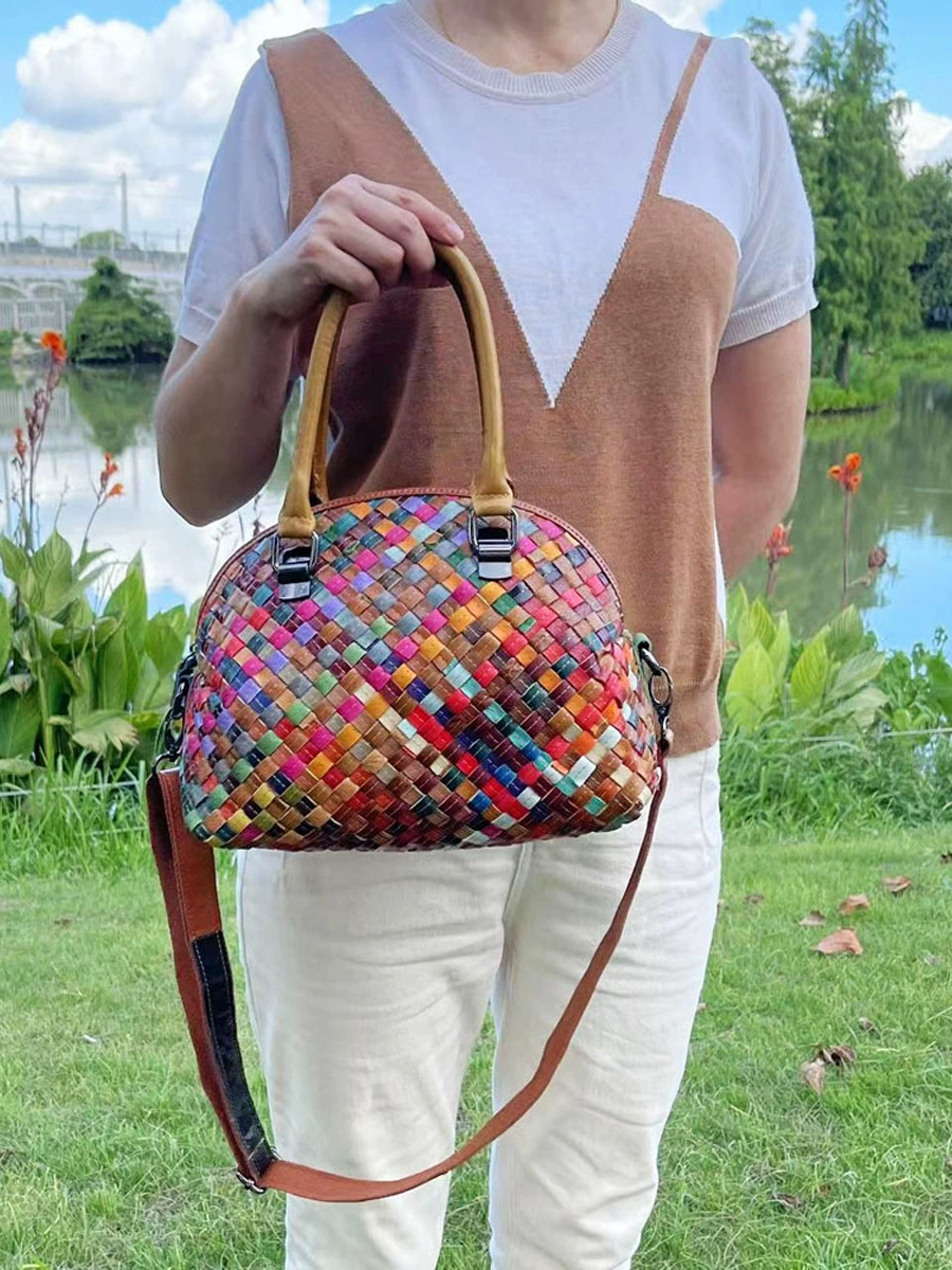 Milticolor Colorblocking Handwoven Leather Satchel Bag