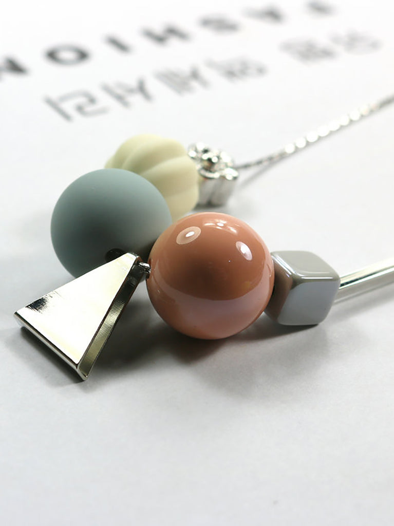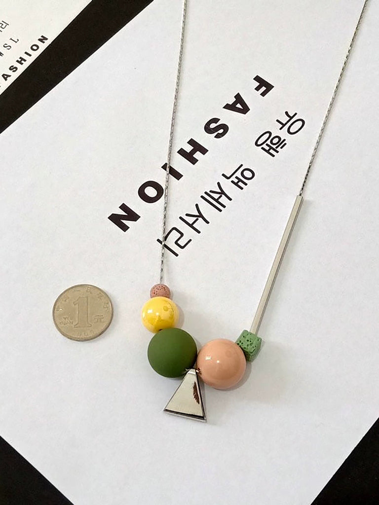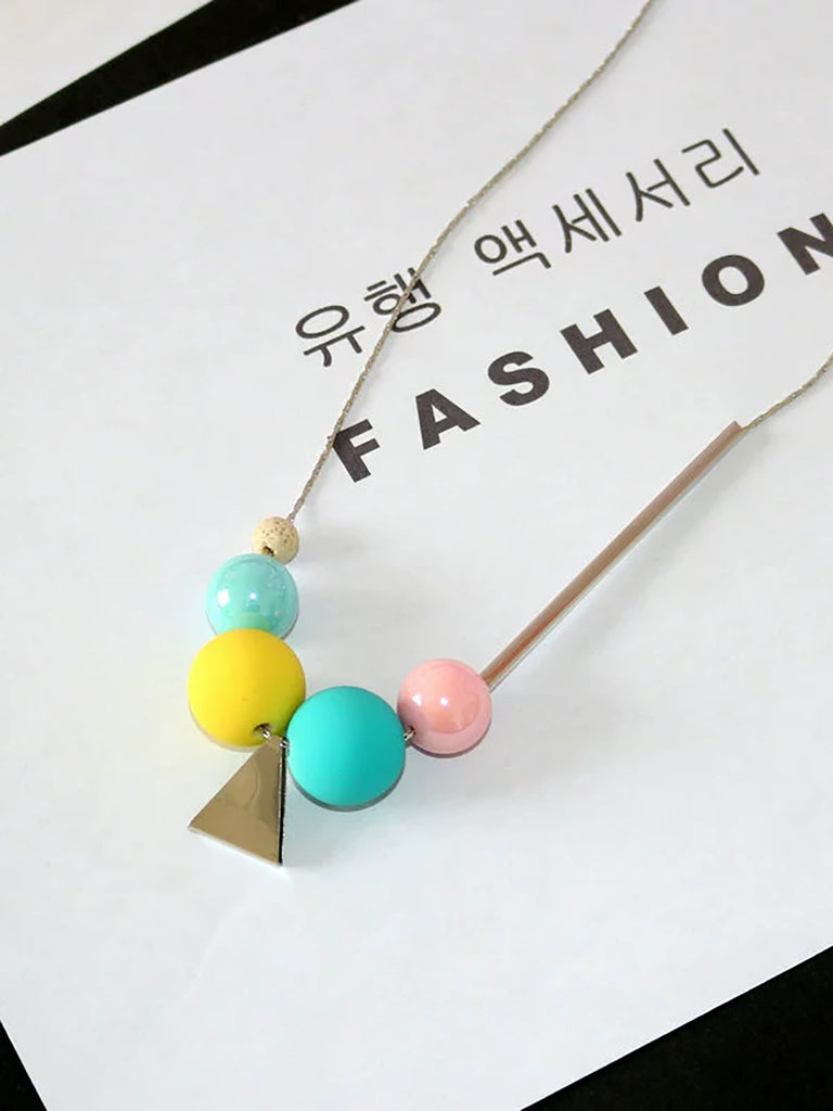 Women Fashion Geometric Ball Triangle Necklace