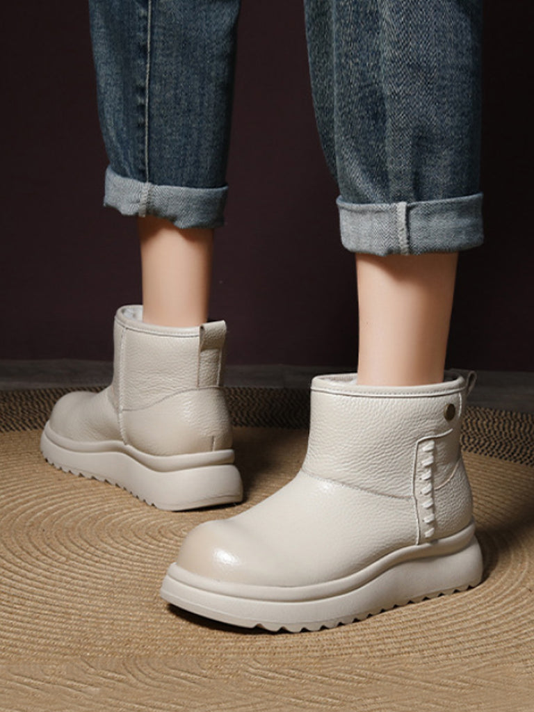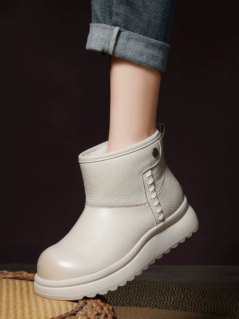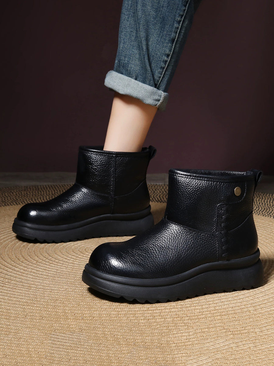 Women Winter Genuine Leather Fleece-lined Platform Boots
