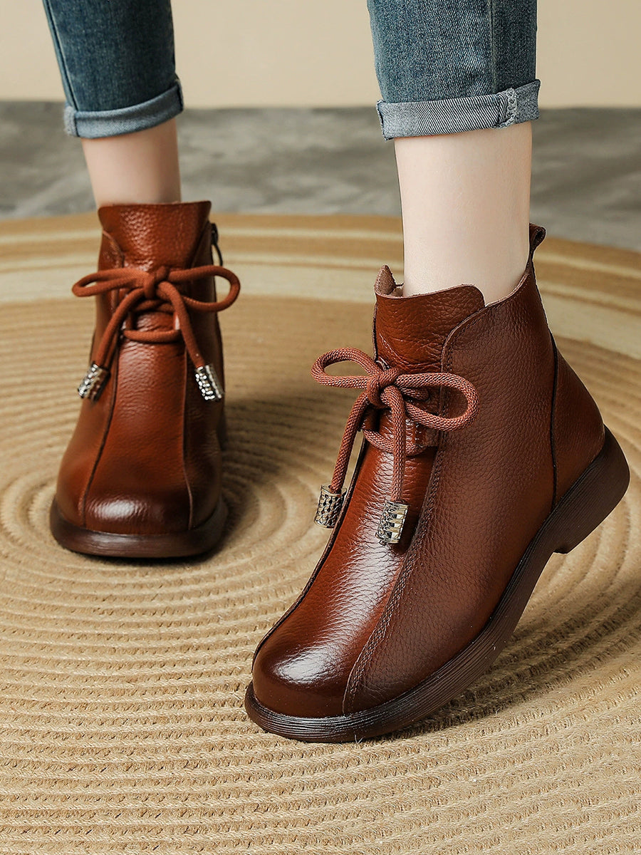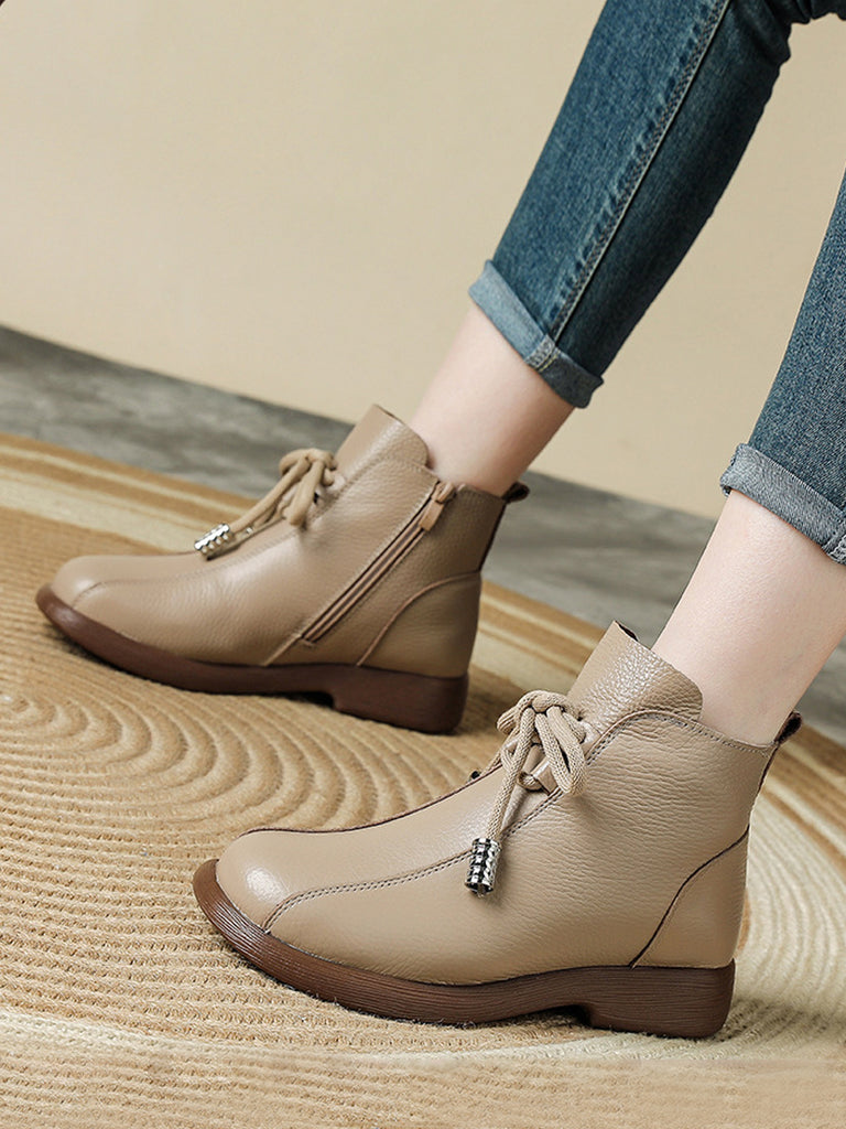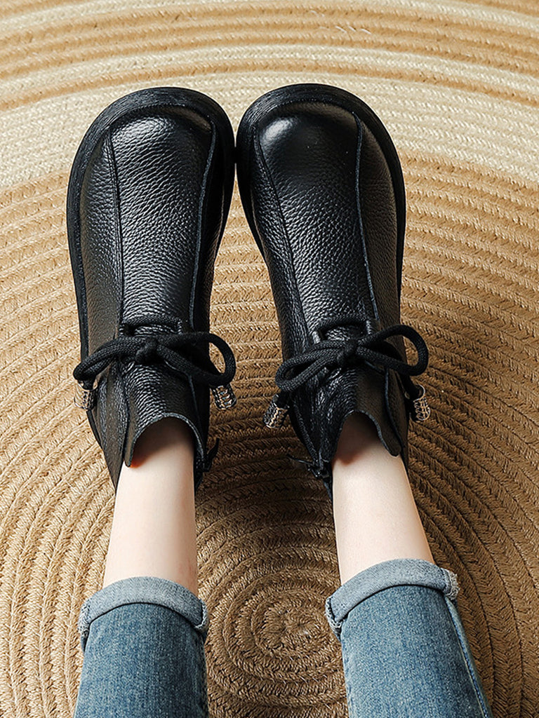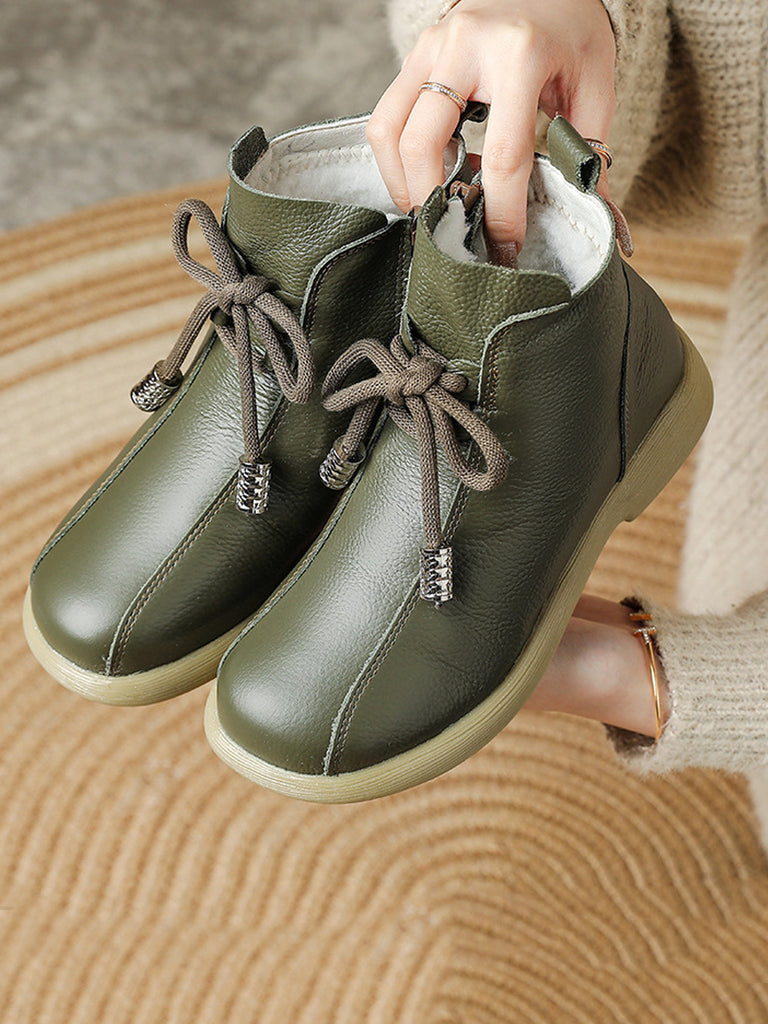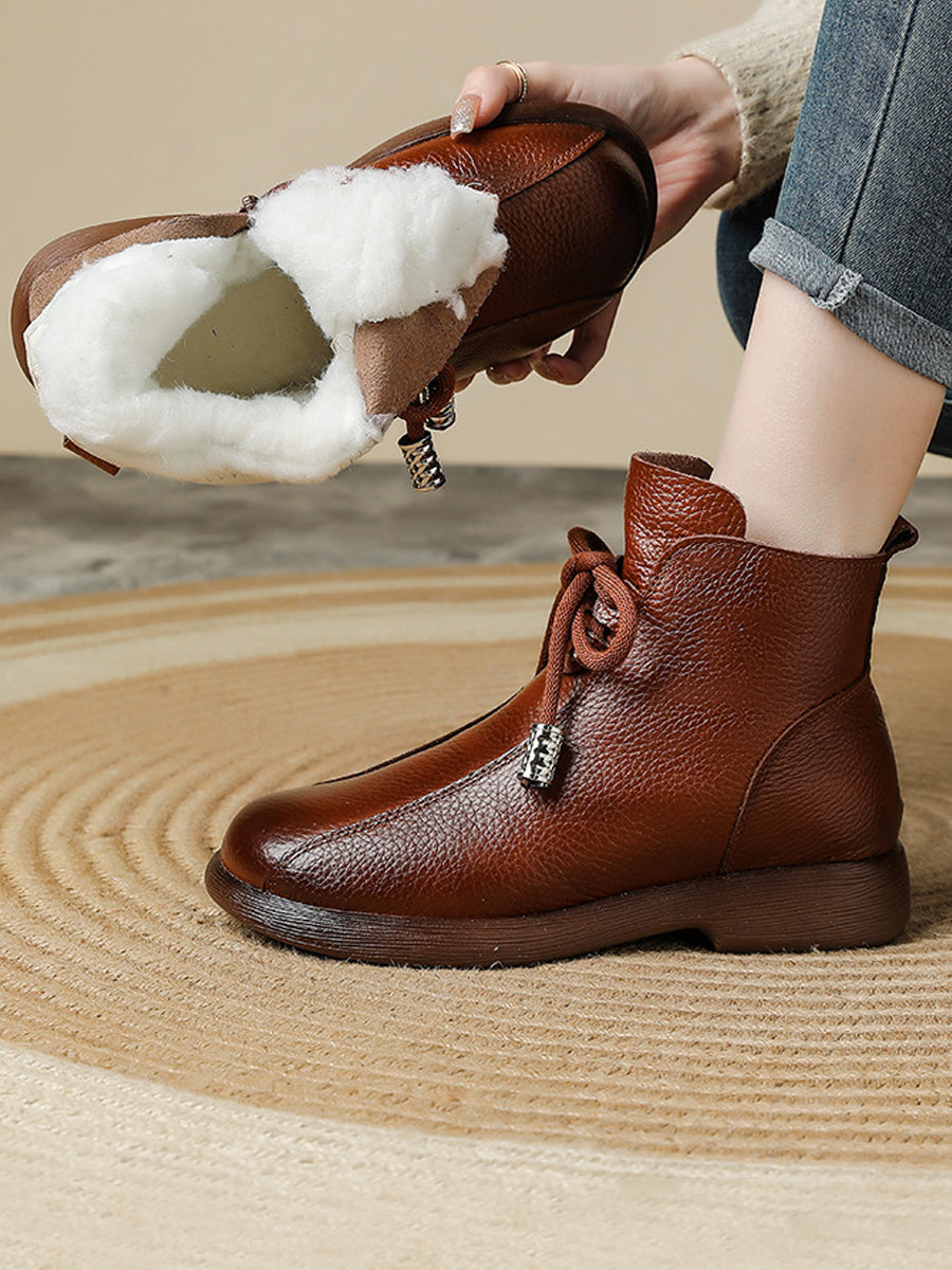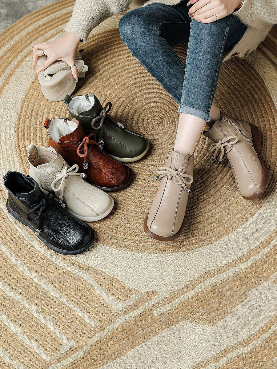 Women Winter Genuine Leather Fleece-lined Ankle Boots
