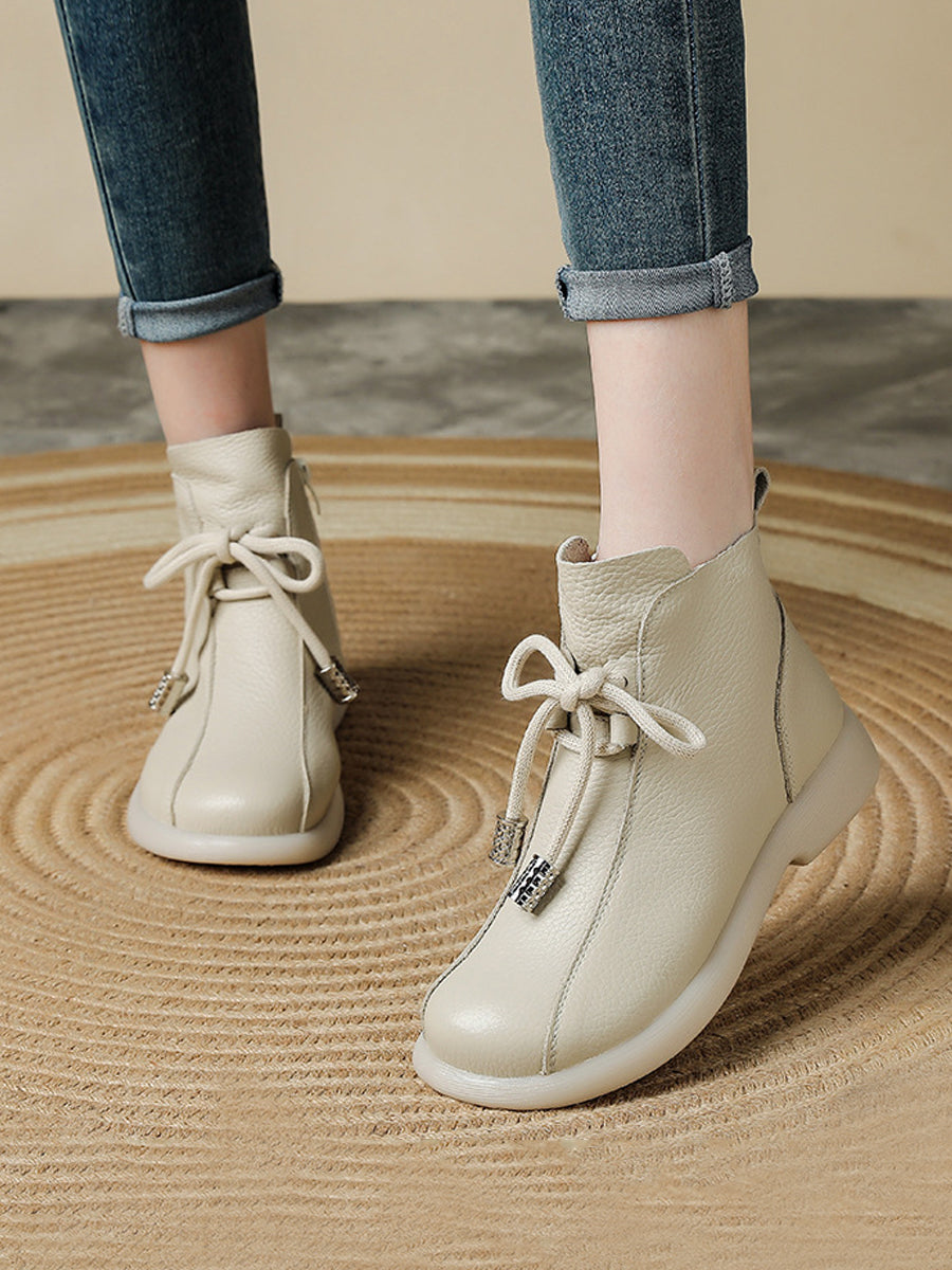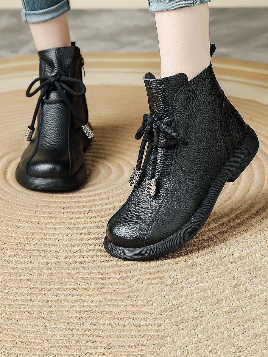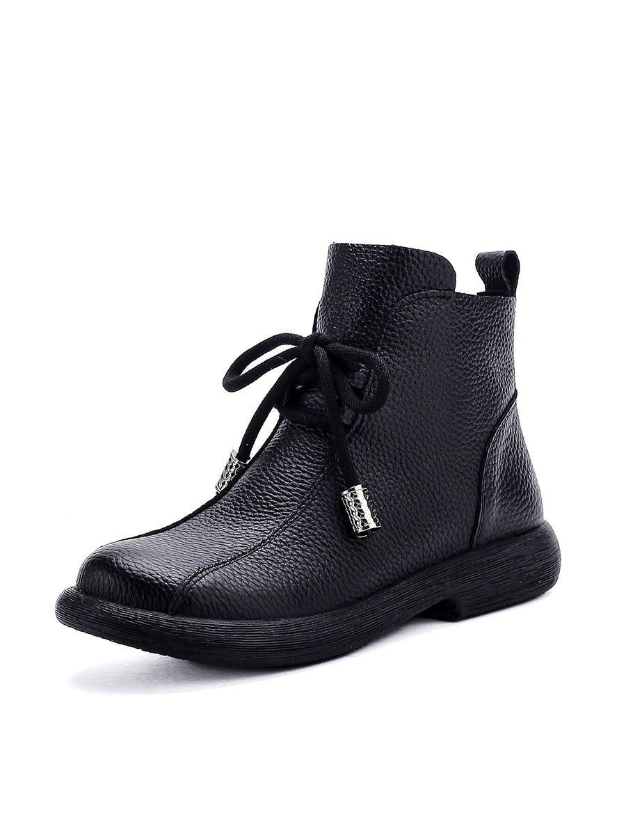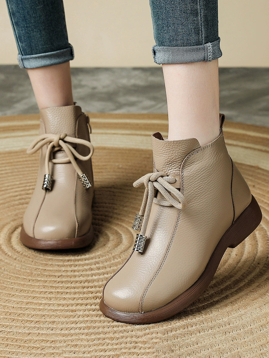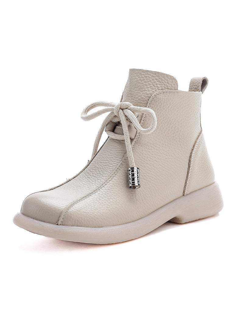 Women Winter Genuine Leather Fleece-lined Ankle Boots