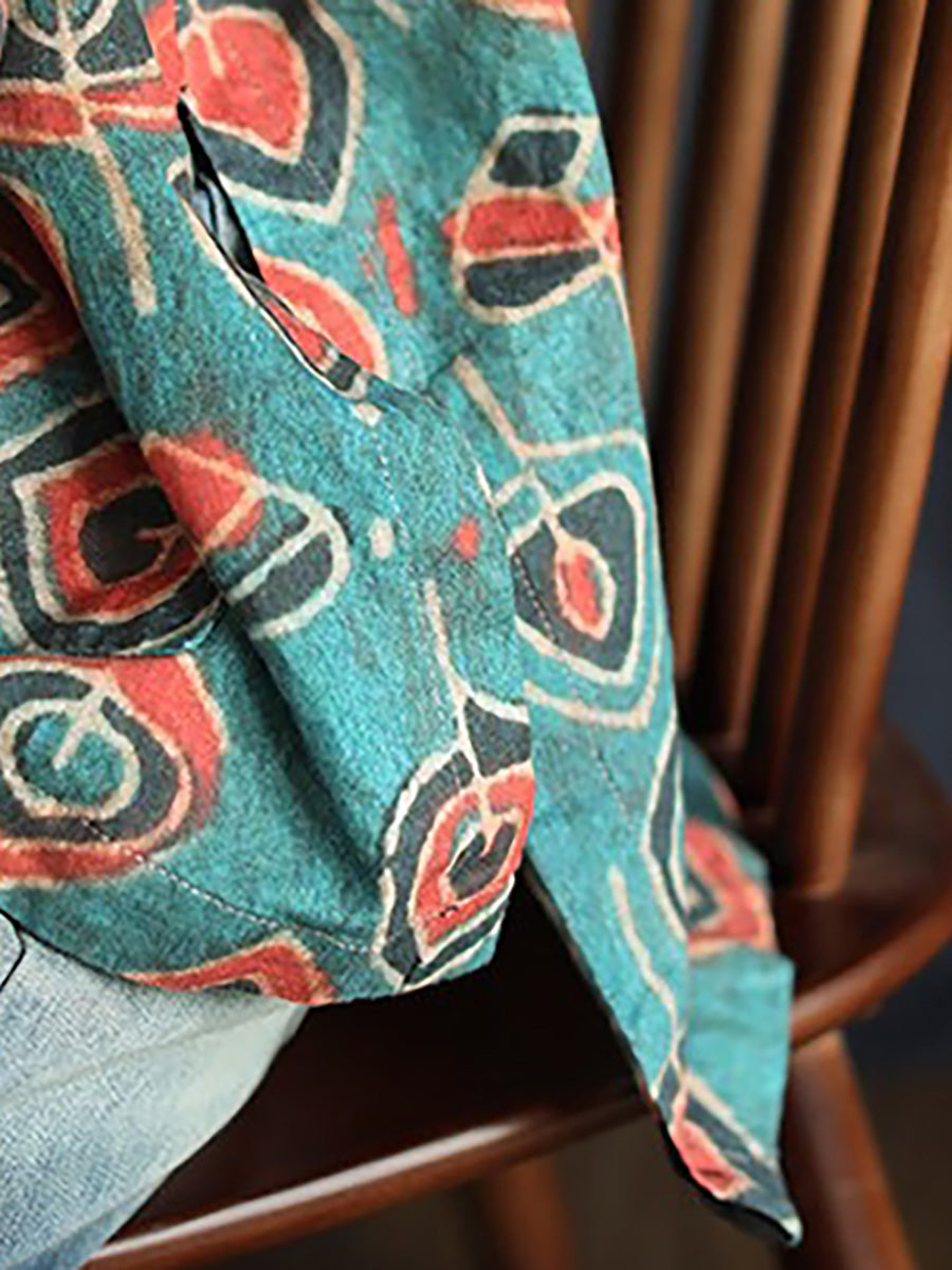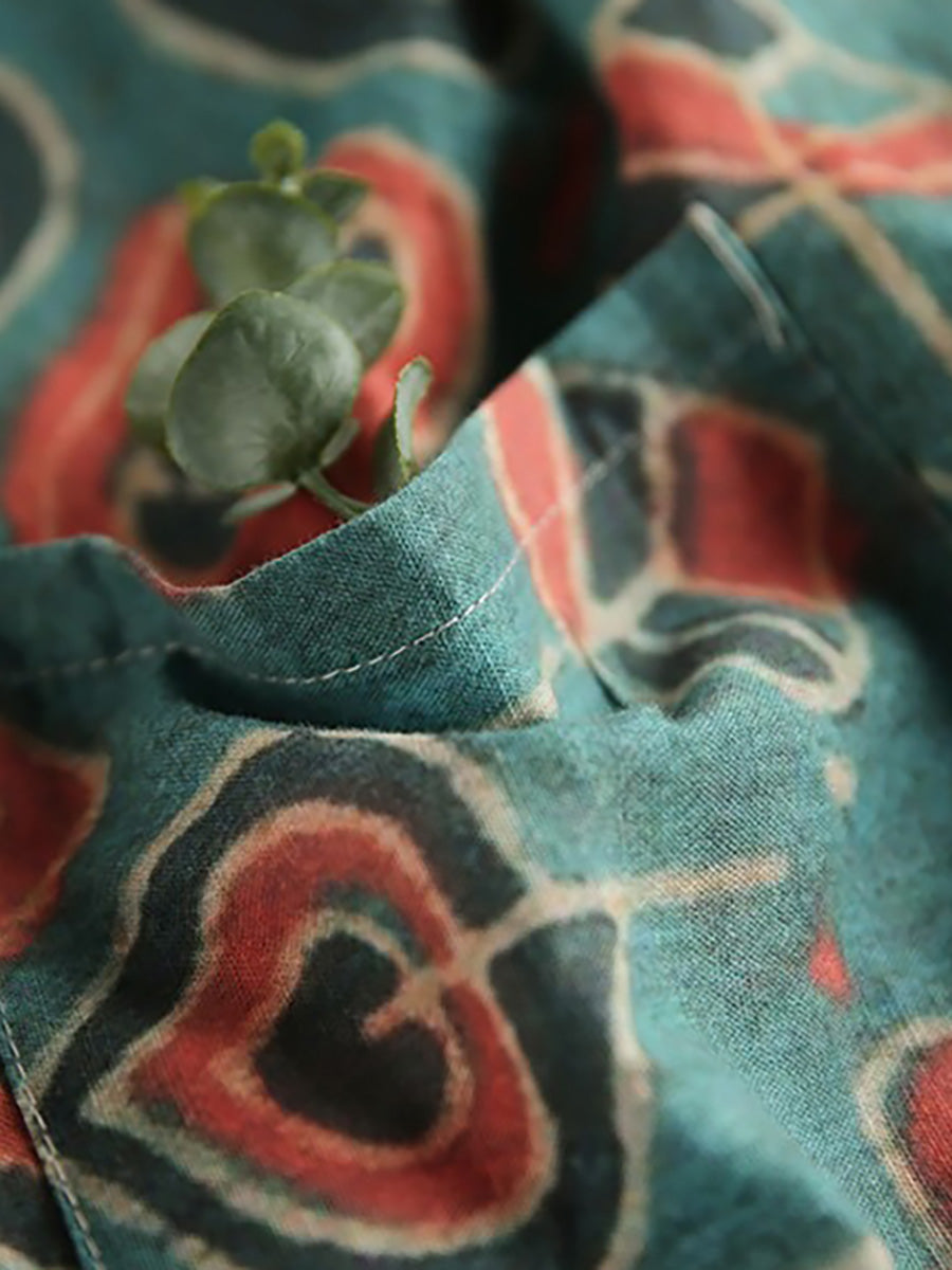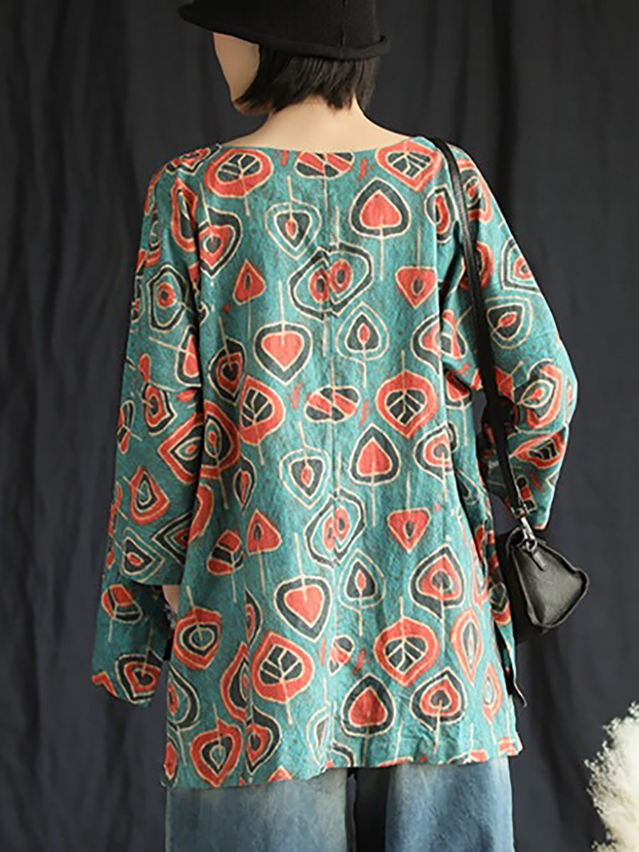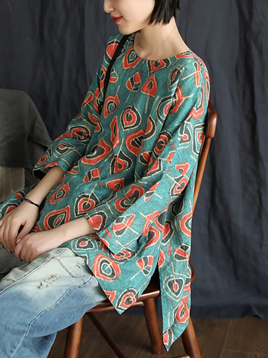 Plus Size Buykud Casual Floral 100% Linen T-Shirt