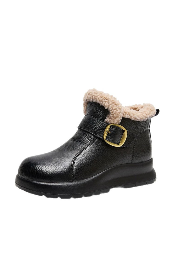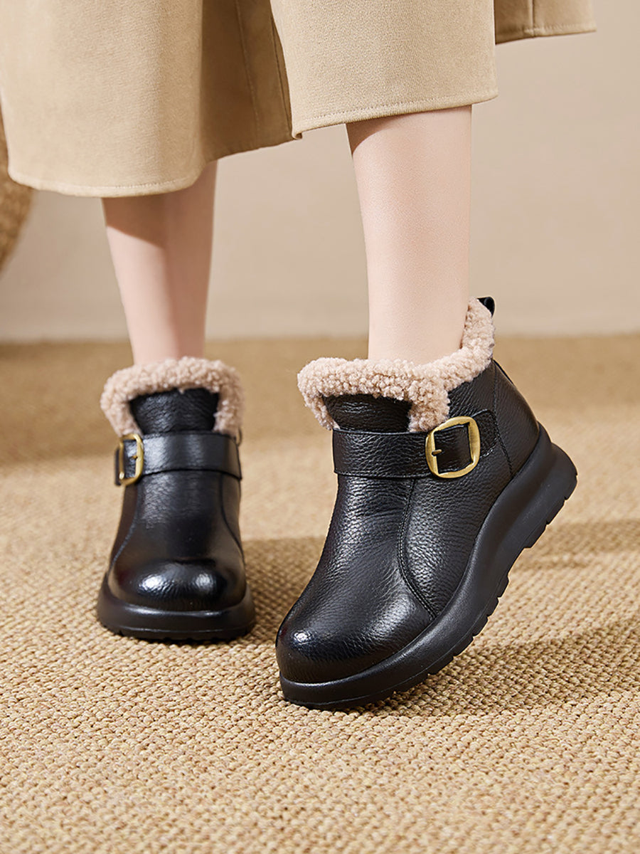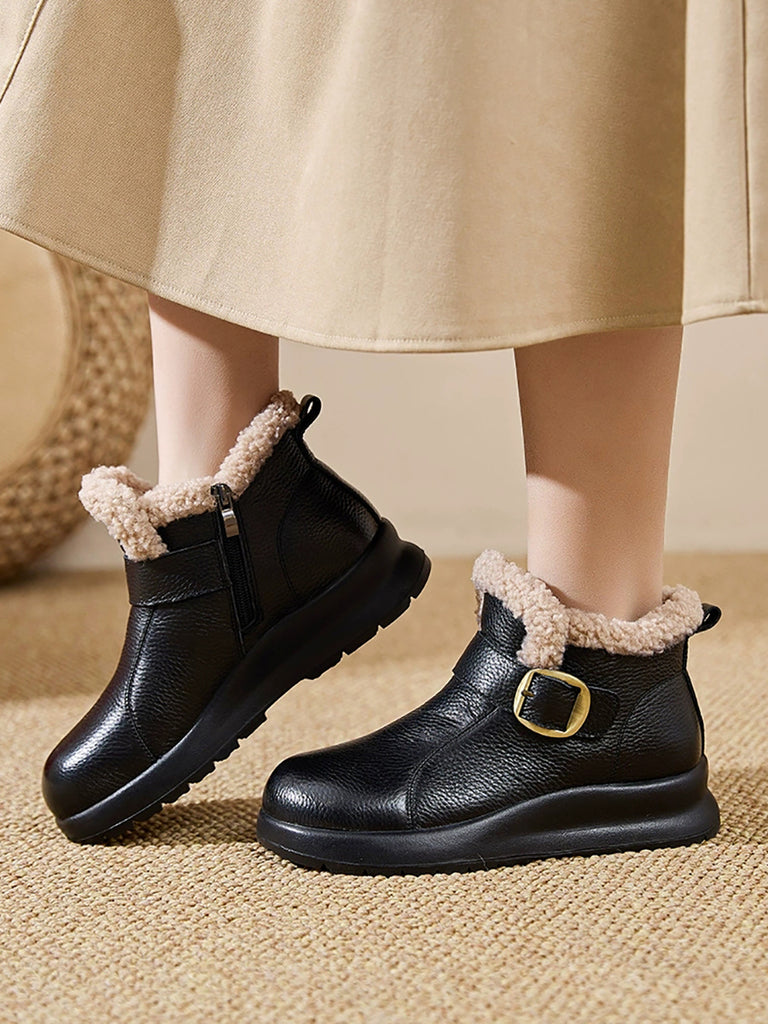 Women Winter Genuine Leather Fleece-lined Ankle Boots