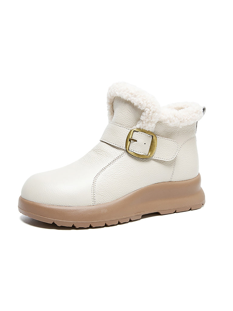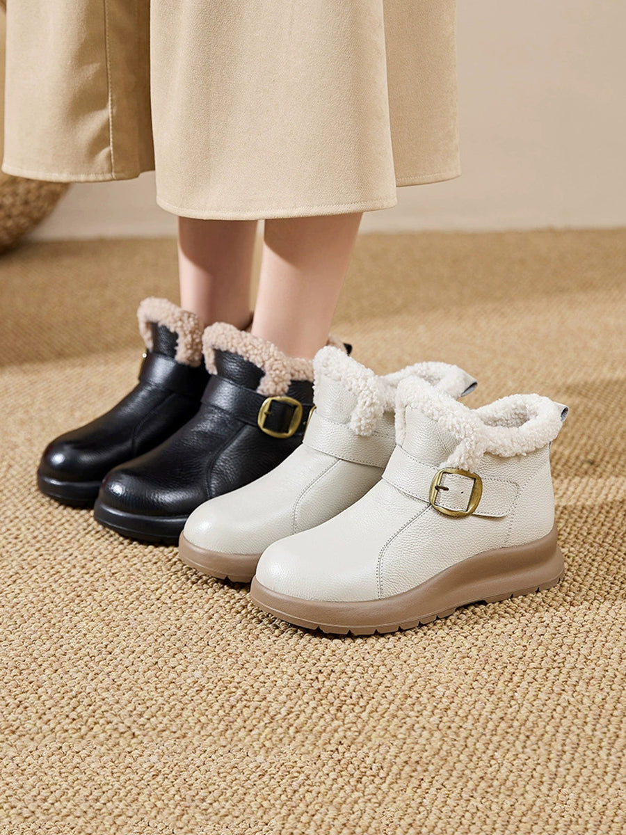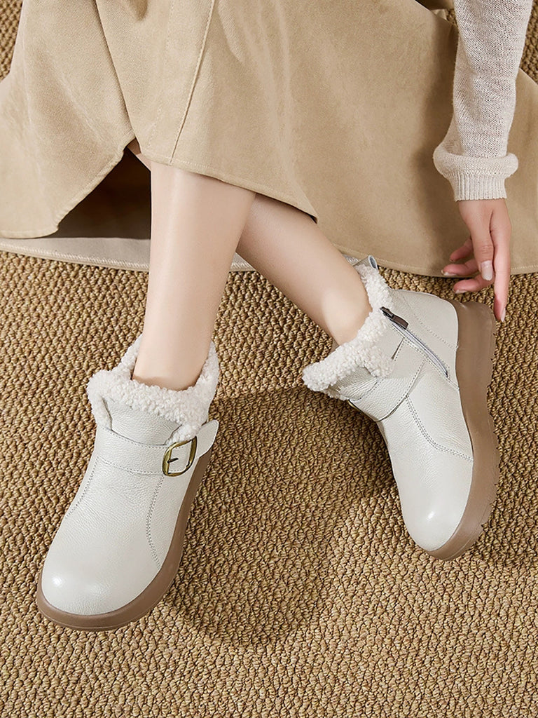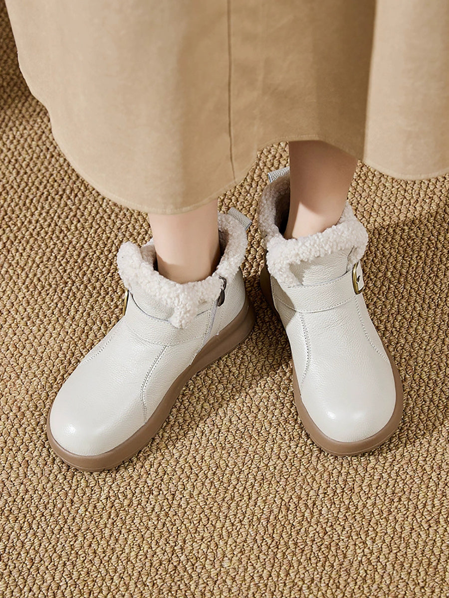 Women Winter Genuine Leather Fleece-lined Ankle Boots
