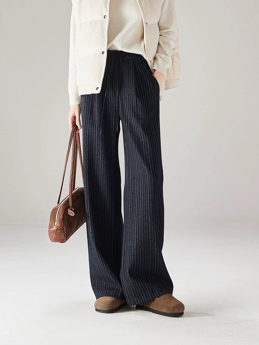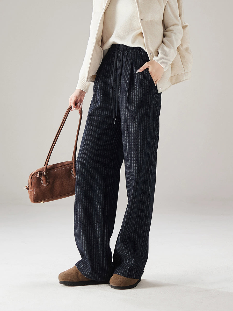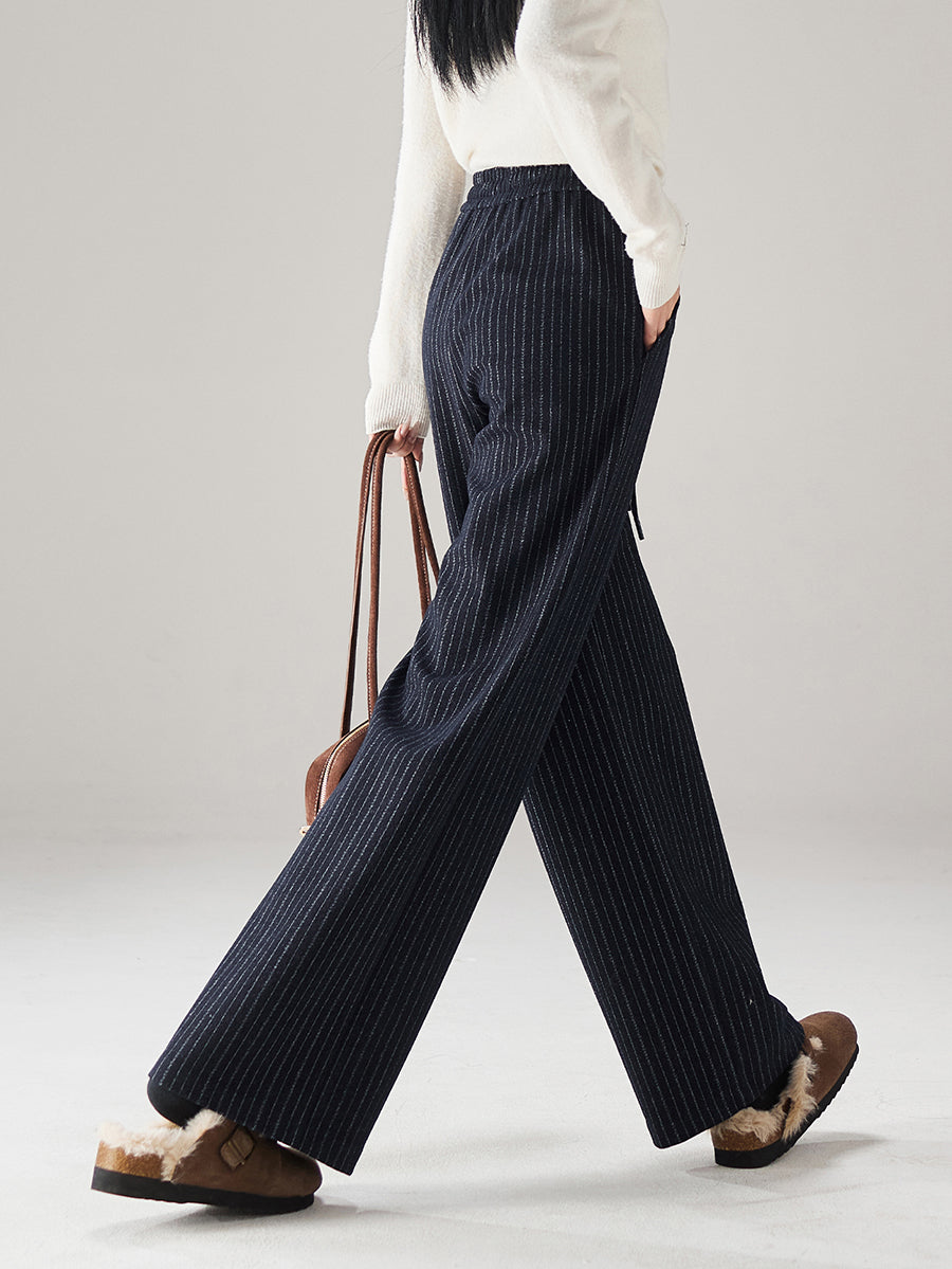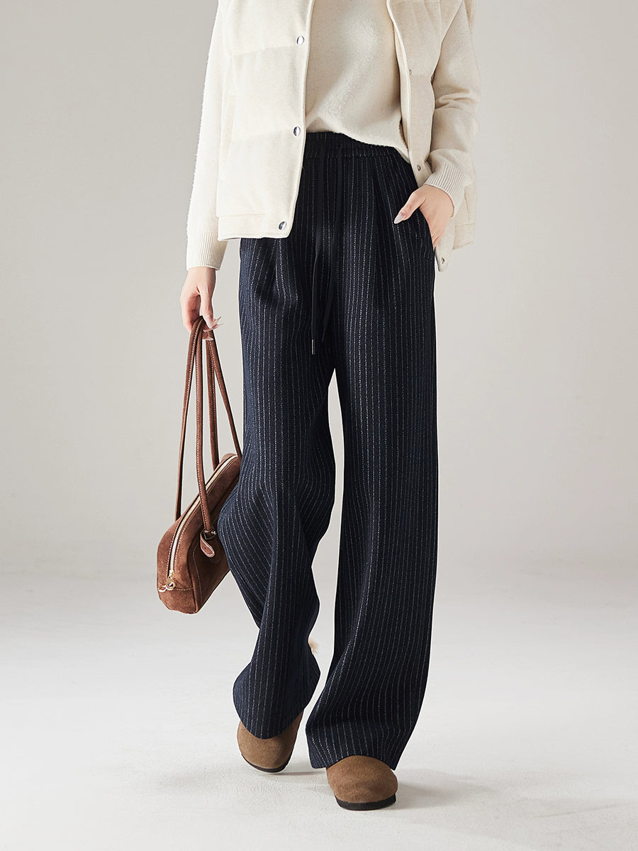 Women Winter Casual Stripe Straight Pants