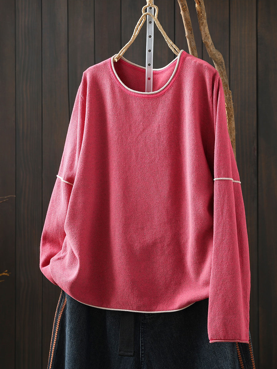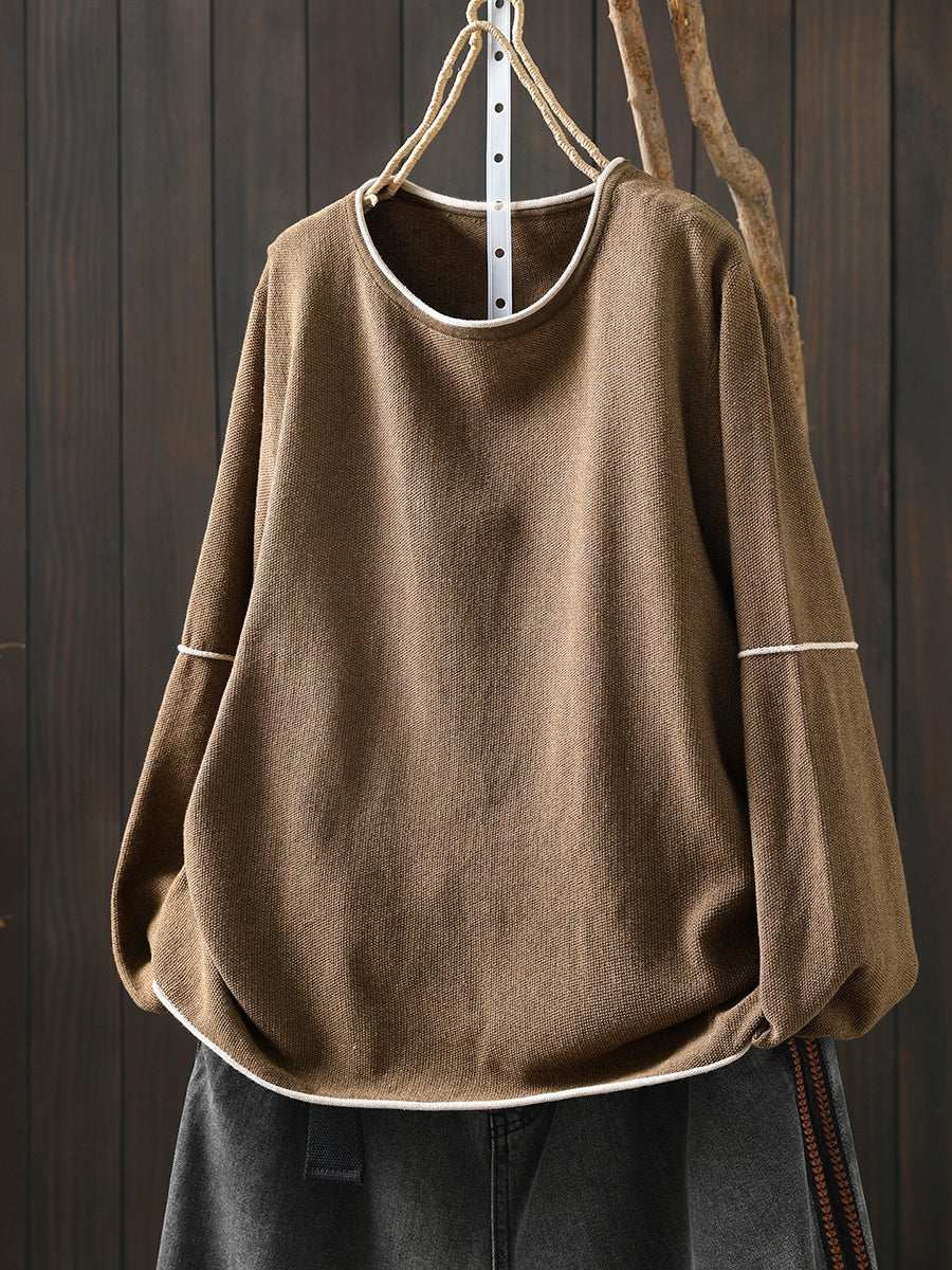 Women Spring Casual Pure Color Cotton Blouse