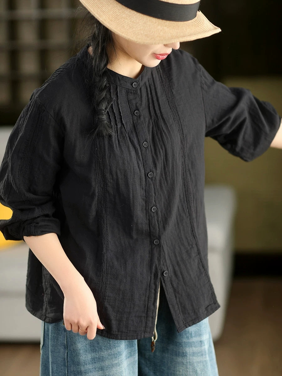 Women Spring Artsy Lace Spliced 100%Cotton Shirt